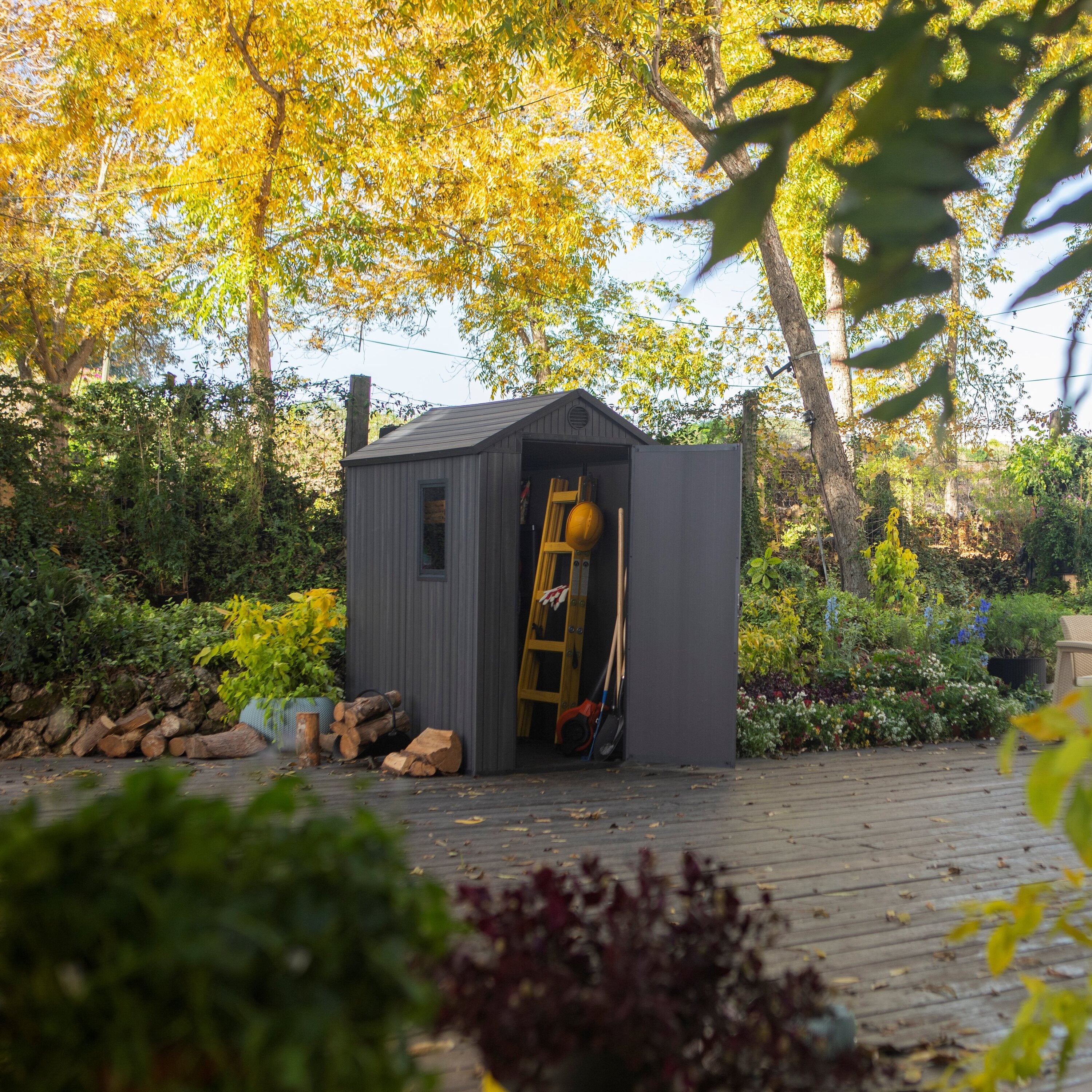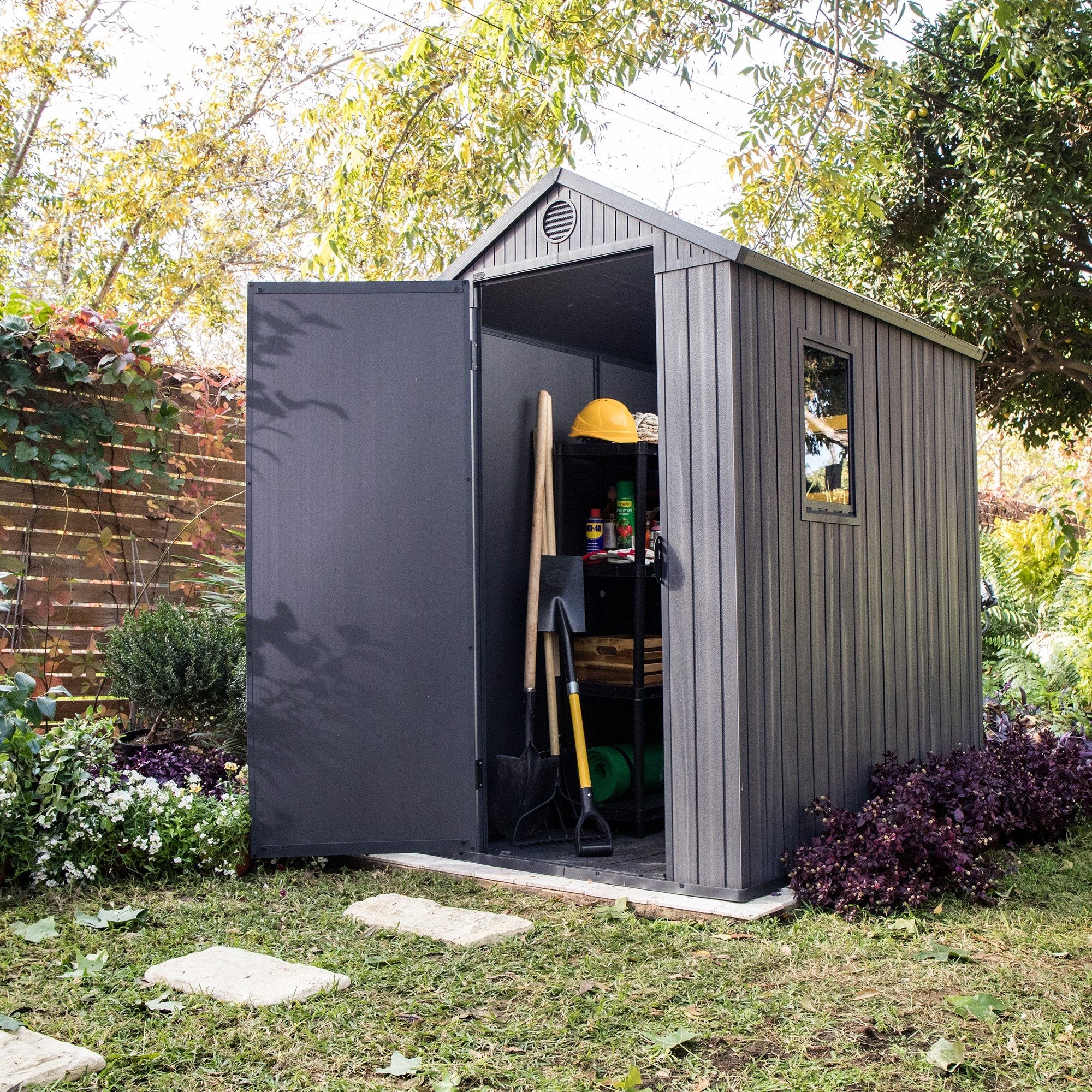- Het tuinhuis bevat een raam waar daglicht doorheen kan komen