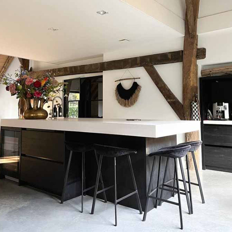 Met zijn velours zitting en stalen frame heeft onze barkruk FINN laag in de kleur zwart net dat beetje extra!