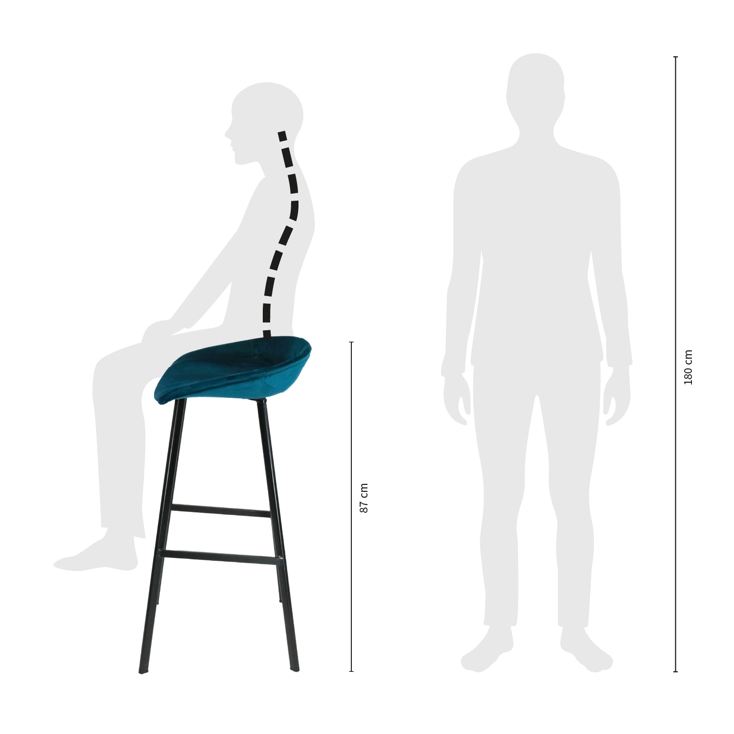 Met zijn velours zitting en stalen frame heeft onze barkruk FINN hoog in de kleur blauw net dat beetje extra!
