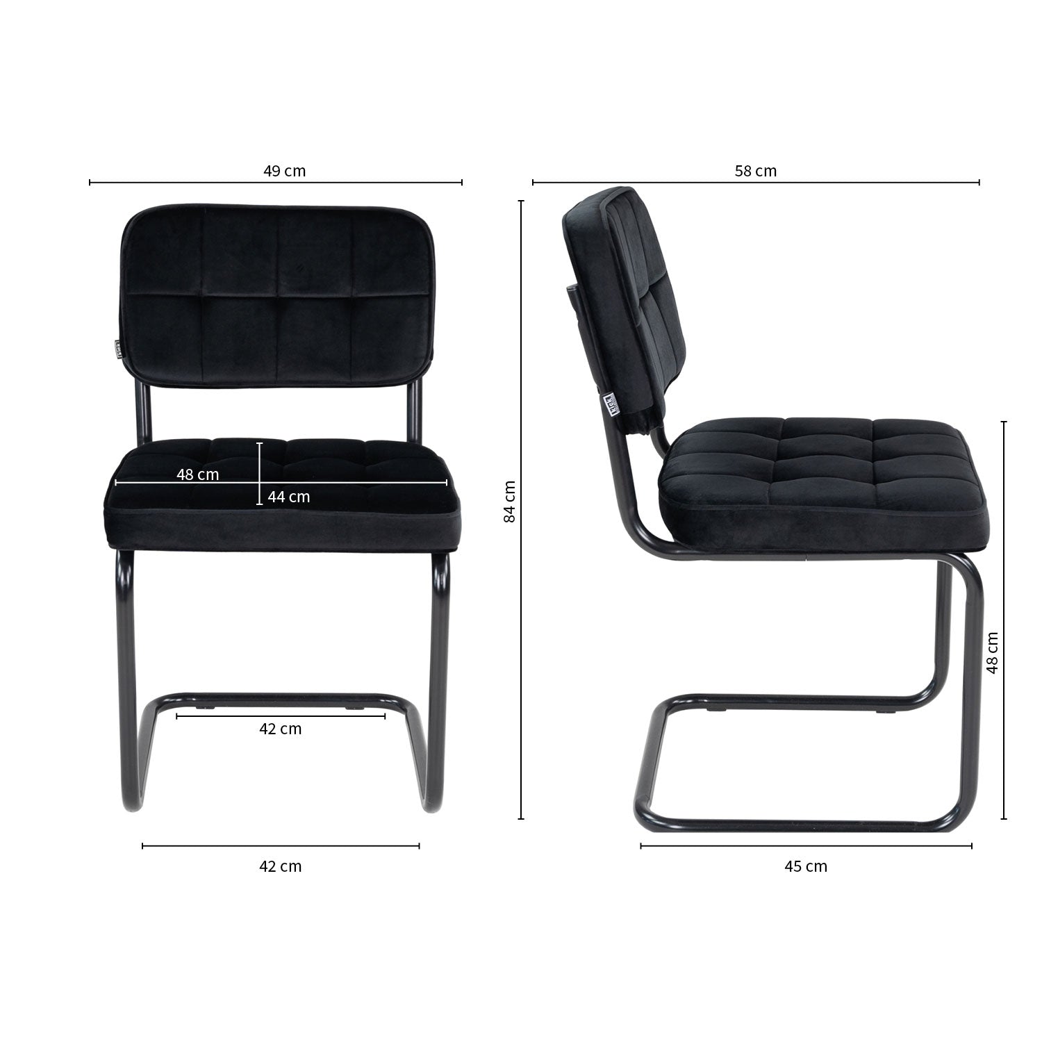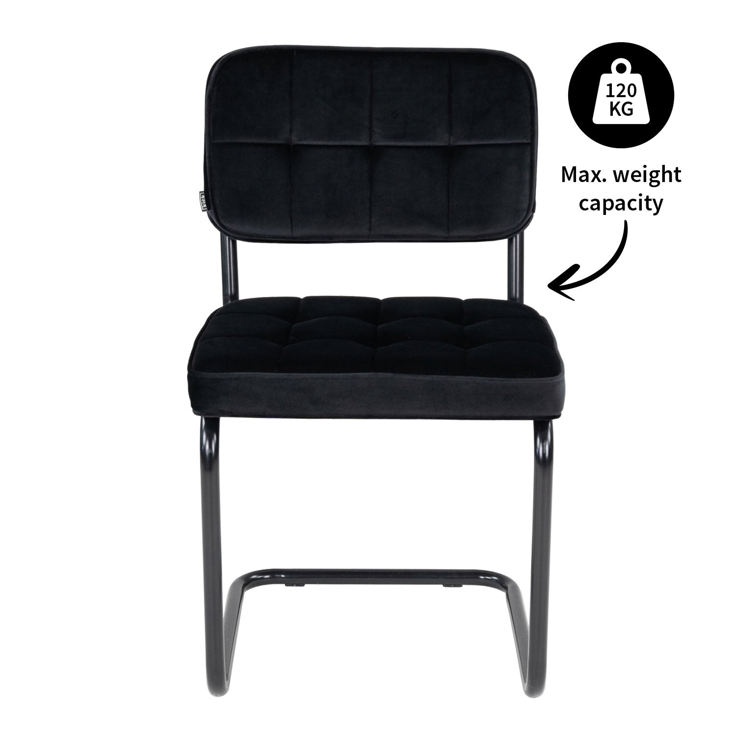 Het zwart metalen sledeframe van IVY is gecombineerd met comfortabele zittingen die zijn bekleed met een zwarte velours stof. This is it!