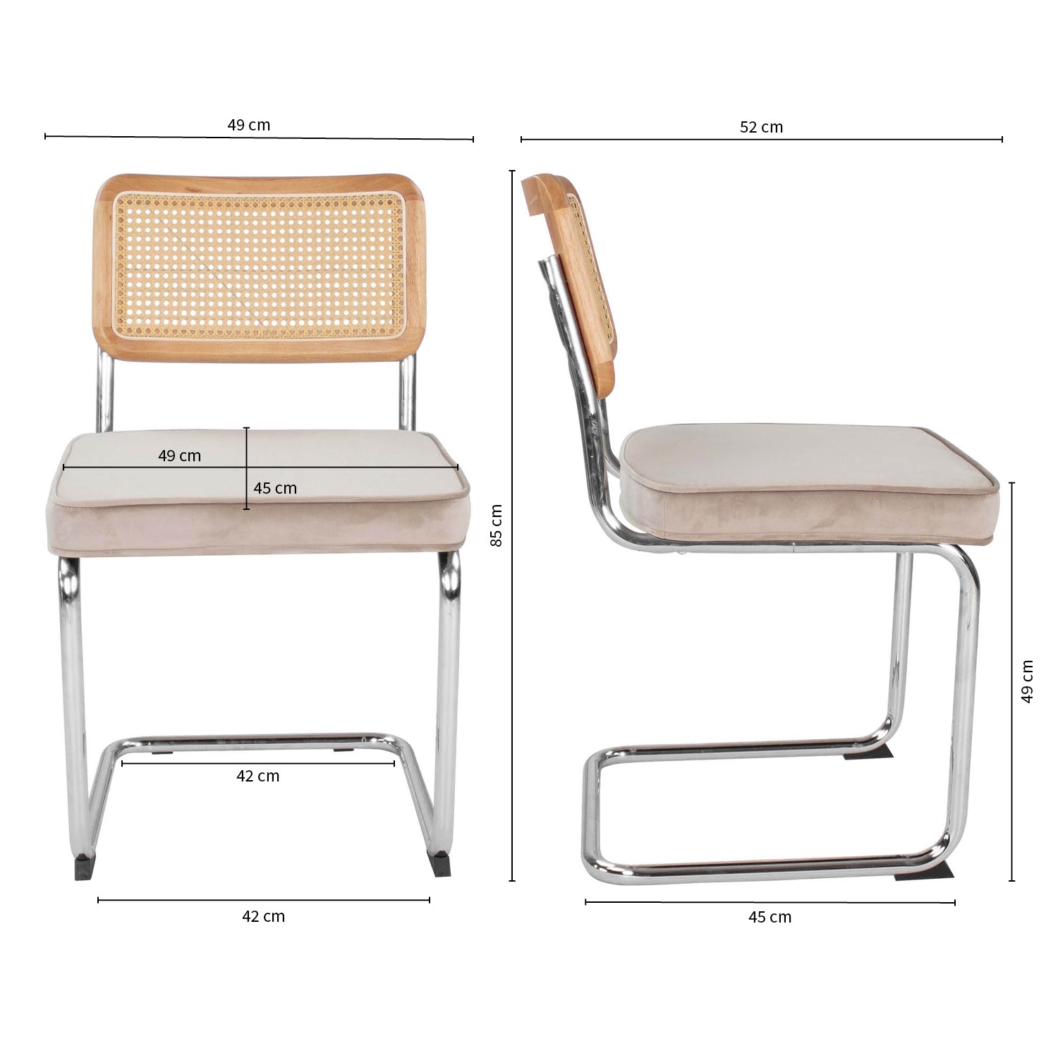 De hoogte van de zitting, gemeten vanaf de vloer. De ideale zithoogte bevindt zich tussen de 40 en 46 cm. Je zit het lekkerst met een ruimte van ongeveer 20 cm, tussen de stoelzitting en de onderkant van het tafelblad.