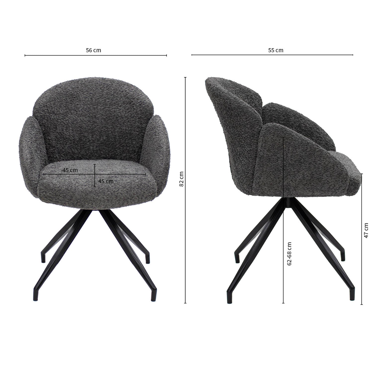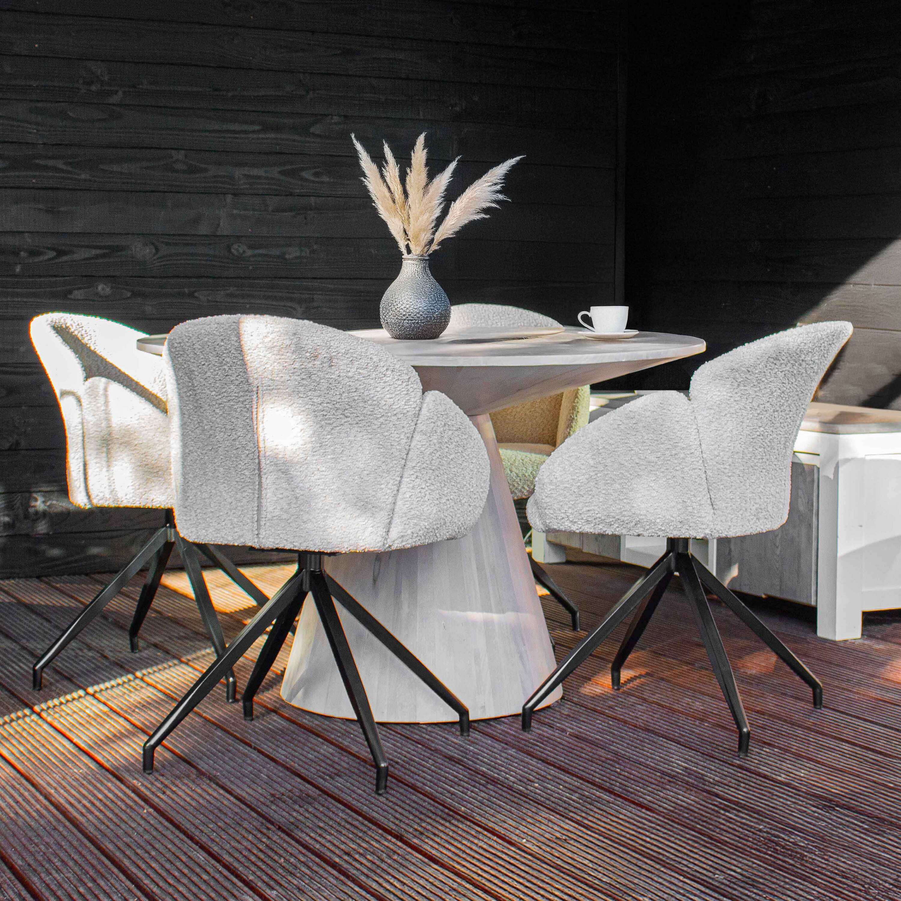 Op zoek naar een draaistoel die comfort, design en functionaliteit perfect combineert? Dan is KICK draaistoel AIKO precies wat je zoekt. Deze elegante stoel is bekleed met een zachte soft bouclé stof die zorgt voor een warme en luxe uitstraling. Het zwarte metalen onderstel is 180° draaibaar en draait automatisch terug naar de oorspronkelijke positie, superhandig én stijlvol! Wat AIKO echt uniek maakt, is de bijzondere vorm van de zitting, geïnspireerd op een openslaande bloem. Dit speelse design maakt van AIKO een echte eyecatcher, terwijl de ronde vormen zorgen voor optimaal zitcomfort. Verkrijgbaar in drie trendy kleuren, zodat je de perfecte match vindt voor jouw interieur.