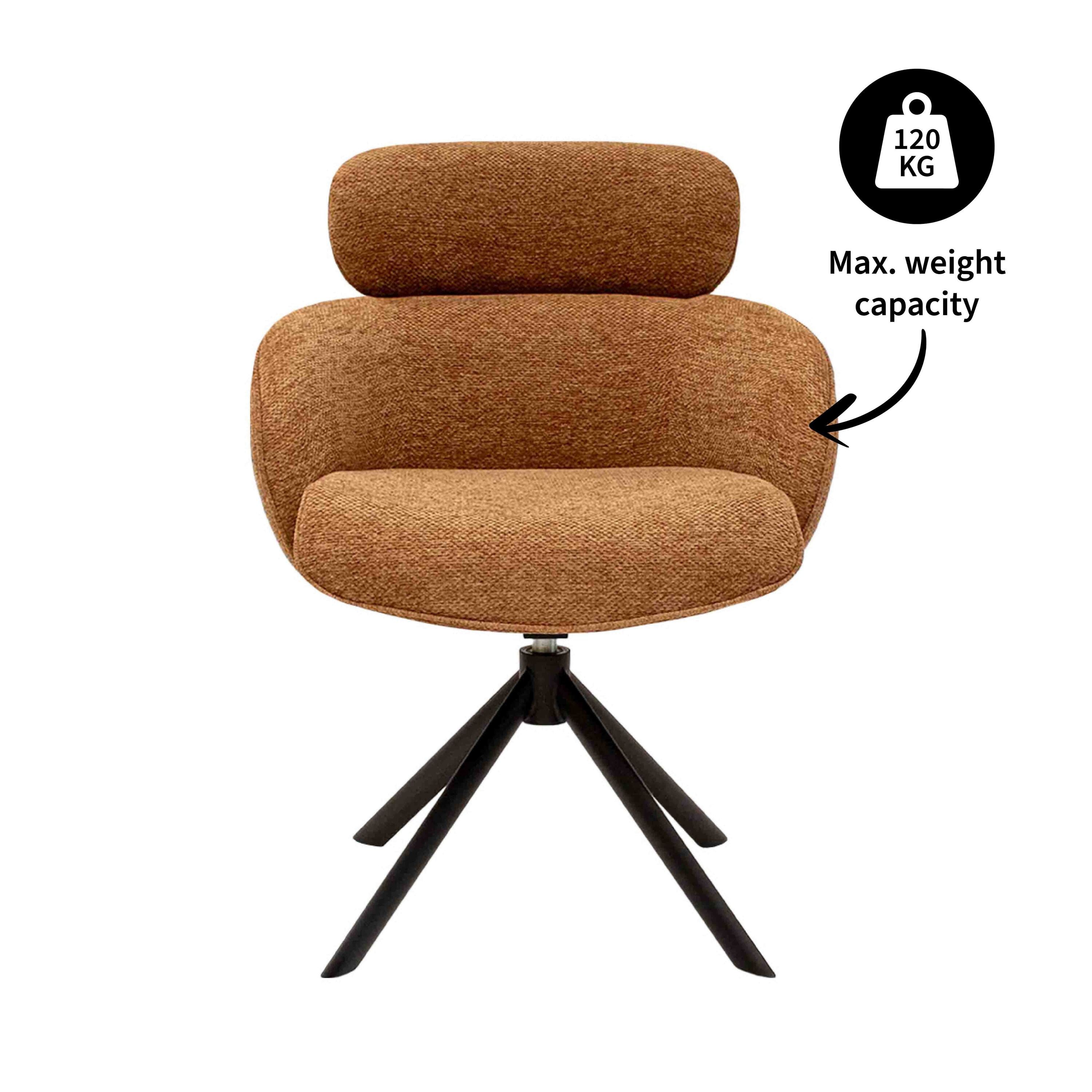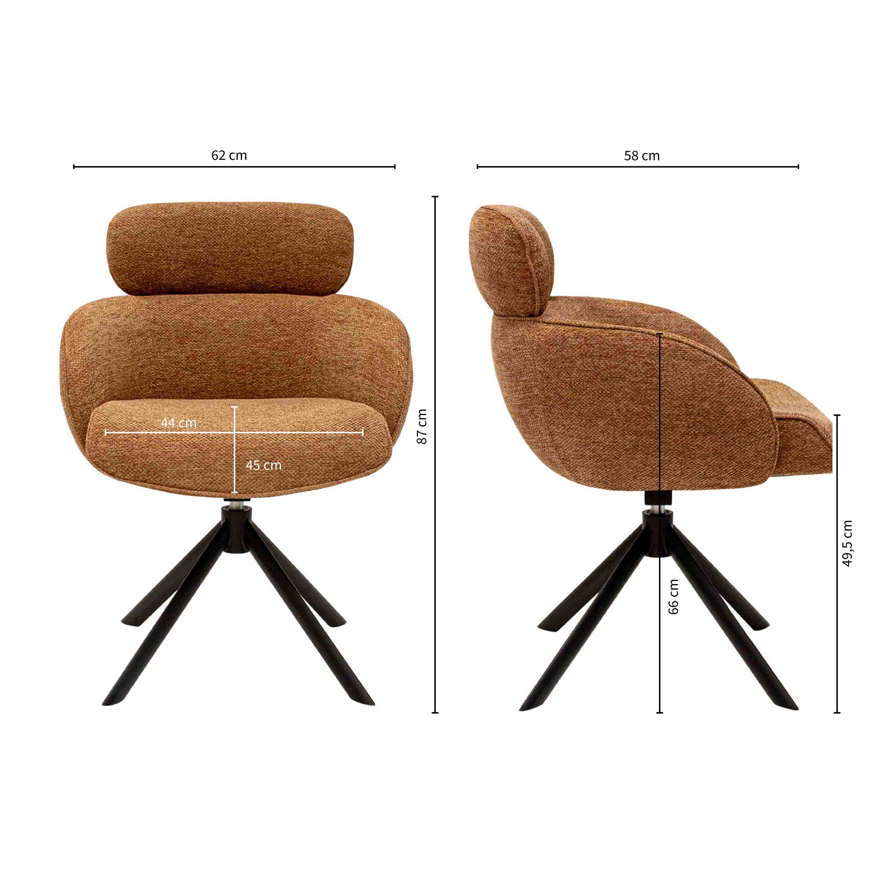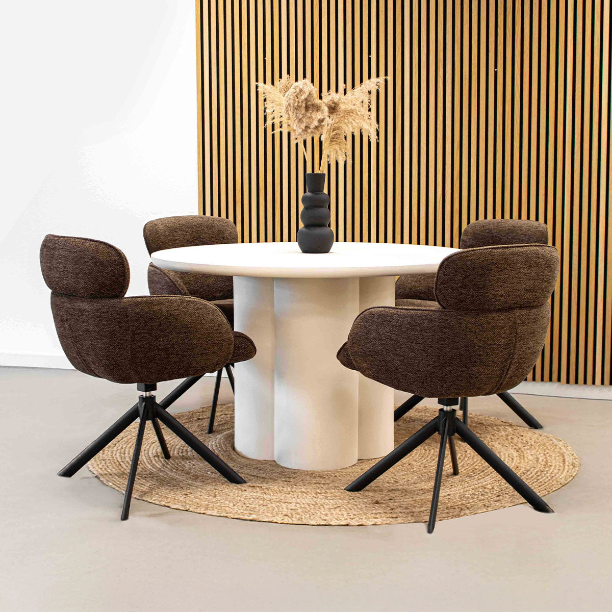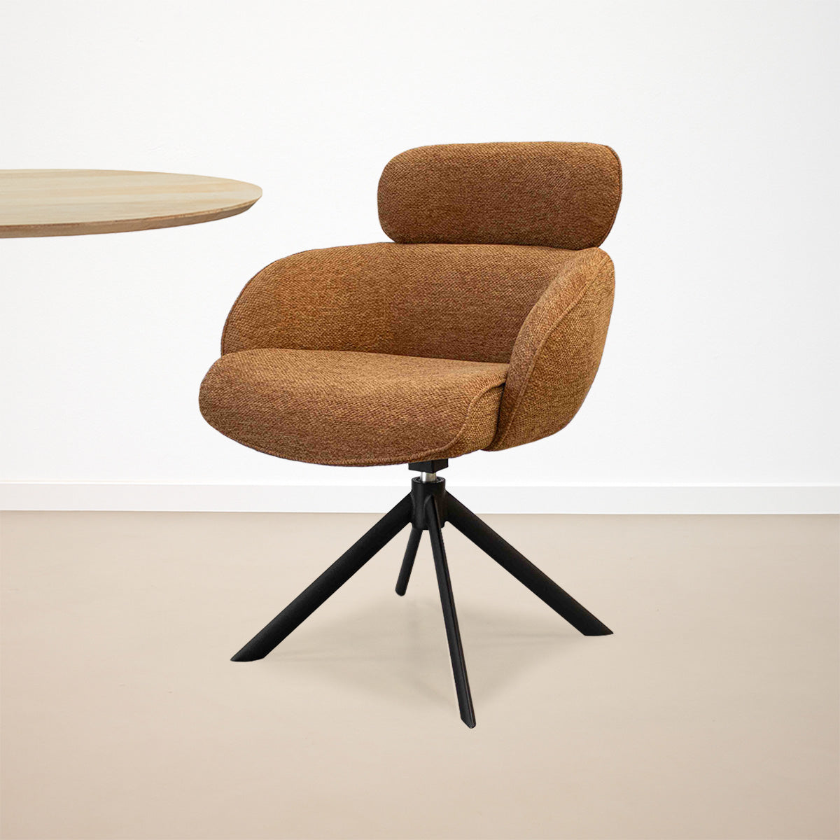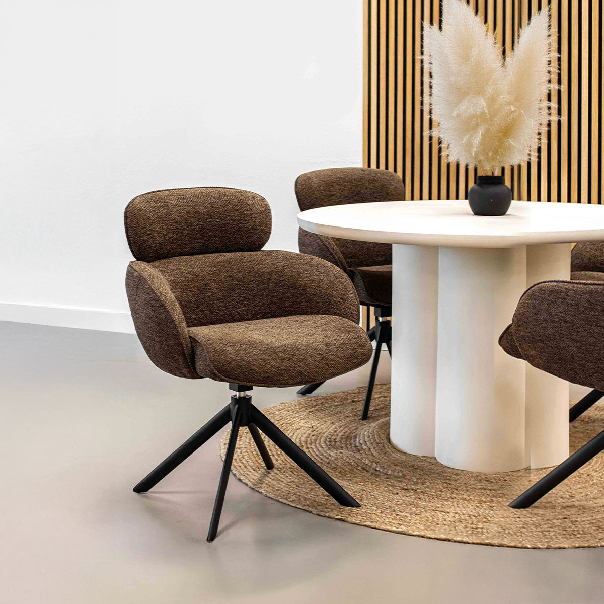 Maak kennis met draaistoel Kian, waar comfort en design hand in hand gaan! Deze draaibare eyecatcher steelt de show aan elke eettafel, thuiswerkplek of vergadertafel. Met zijn ronde, robuuste vormen en zachte textuurstof is Kian niet alleen een lust voor het oog, maar ook heerlijk comfortabel om in te zitten.