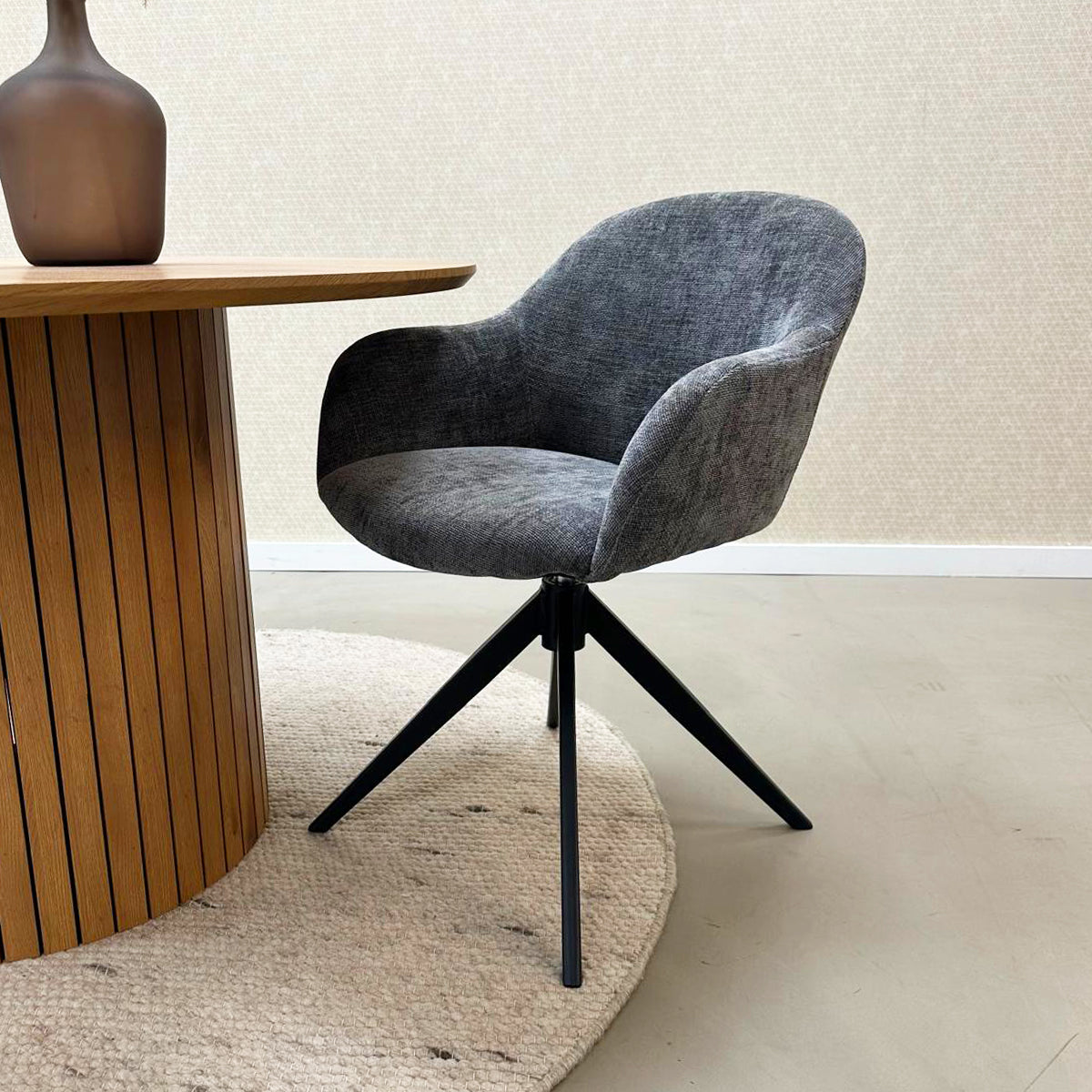 Op zoek naar een draaistoel die comfort en design moeiteloos combineert? Dan is KICK draaistoel MATT jouw nieuwe favoriet. Met zijn warme uitstraling, zachte textuurstof en moderne look is MATT een echte eyecatcher aan de eettafel of waar je ‘m ook neerzet. De ronde vormen en comfortabele zitting zorgen voor ultiem zitgemak, of je nu dineert, werkt of gewoon relaxt.