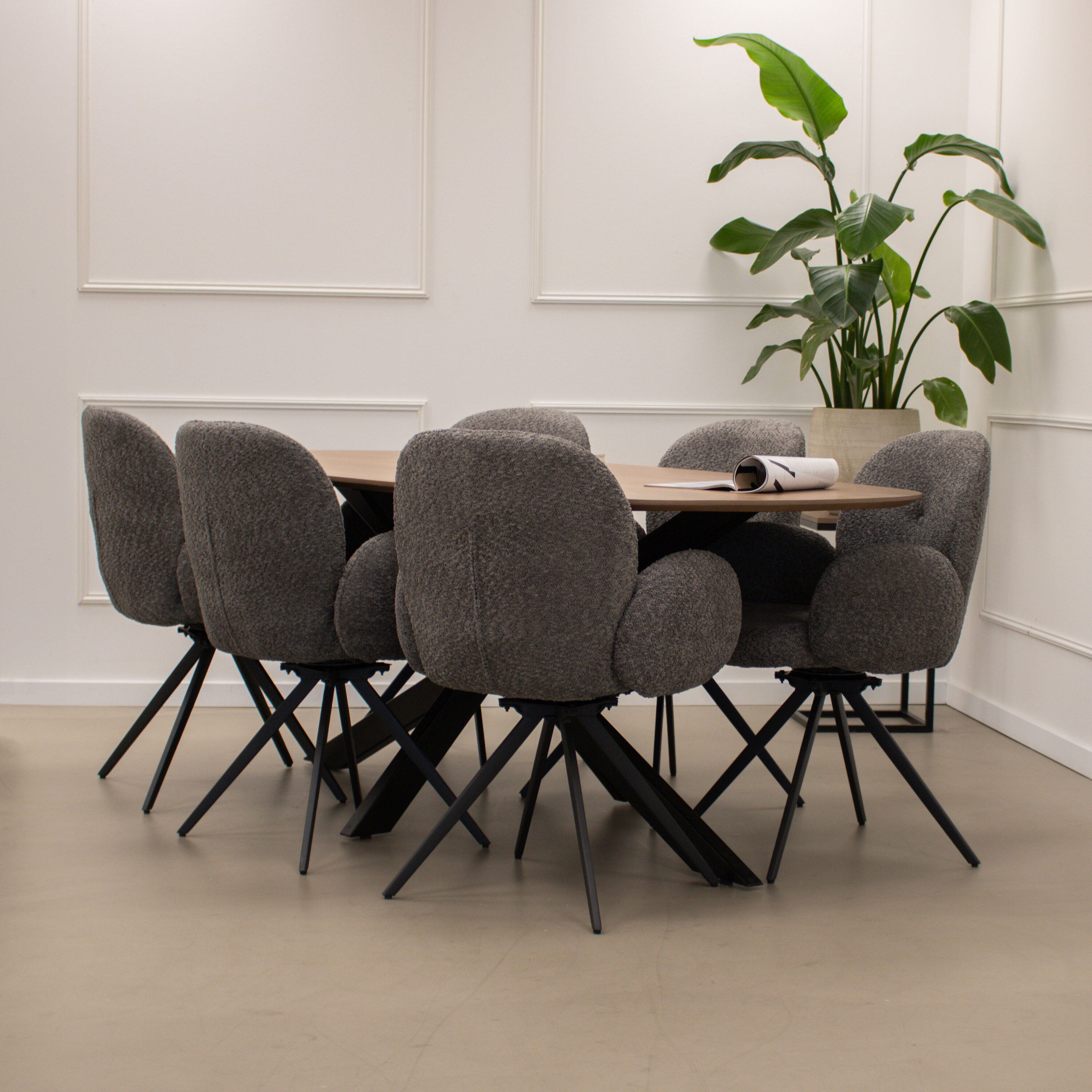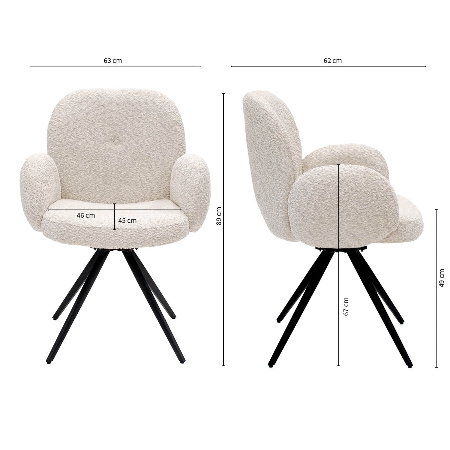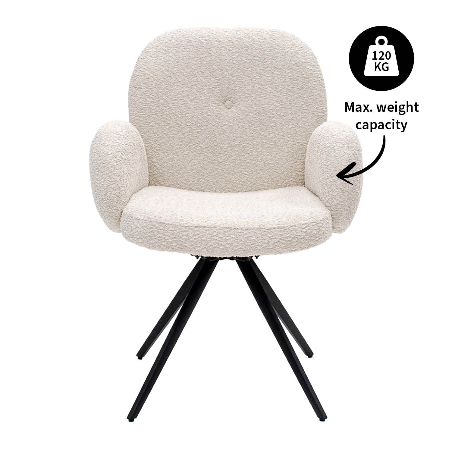 Ontmoet draaistoel Raf! Deze eetkamerstoel straalt comfort en klasse uit. Wat Raf uniek maakt? De afgeronde armleuningen, het speelse knoopje in de rugleuning en het stevige, 180 graden draaibare frame.