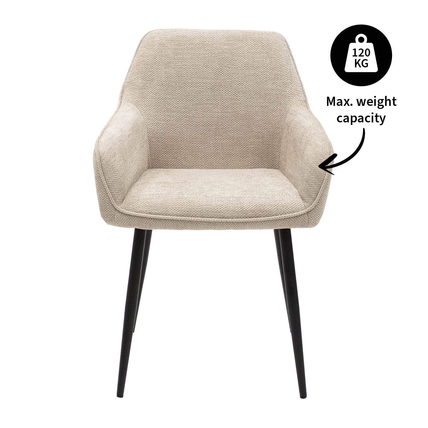 Meet Ivar! Eetkamerstoel Ivar is een comfortabele stoel bekleed met een zachte texture stof. De combinatie van het strakke design en de fijne texture stof geeft Ivar een tijdloos karakter. Het industriële zwart metalen frame zorgt niet alleen voor een moderne uitstraling maar maakt ook dat de stoel stevig op de grond staat.