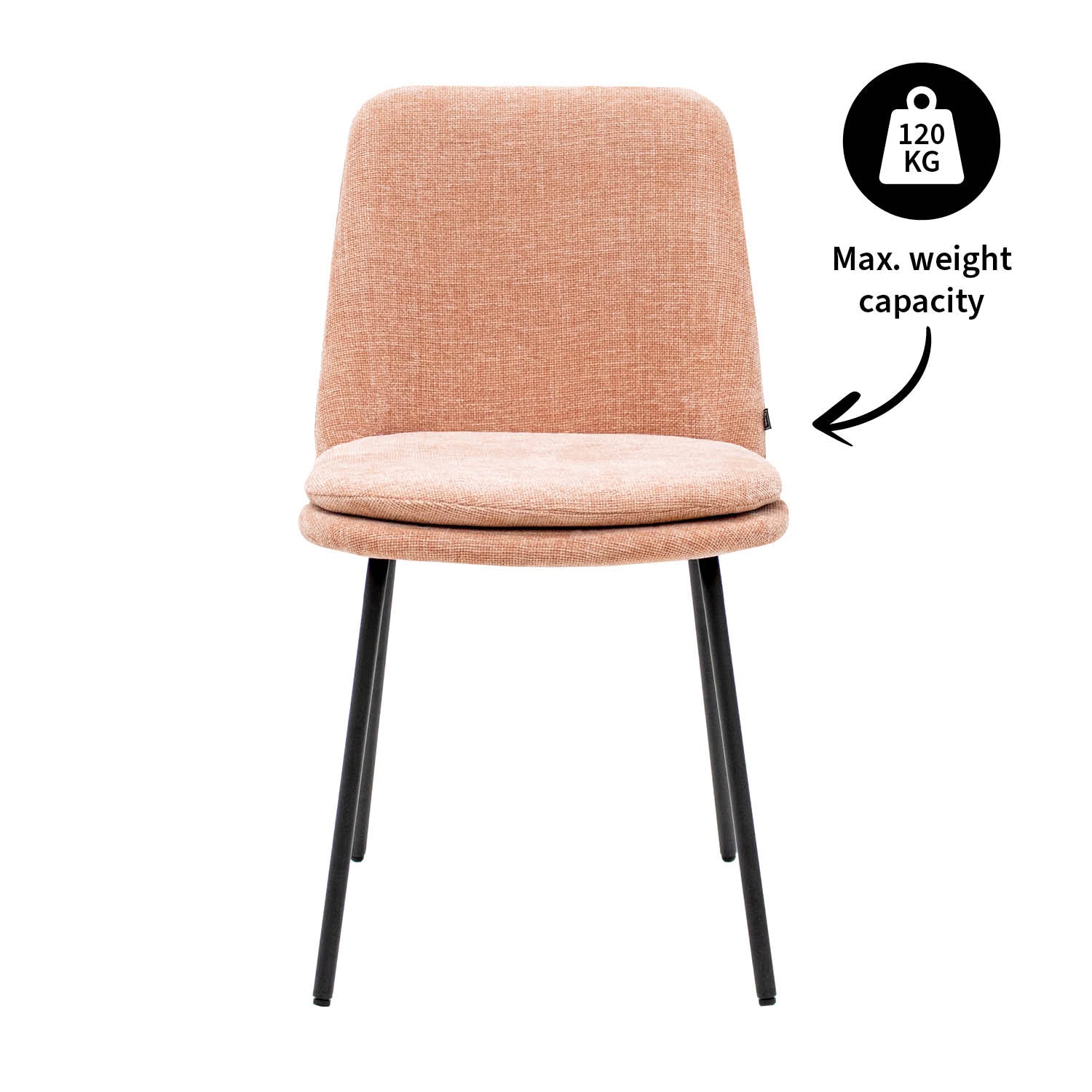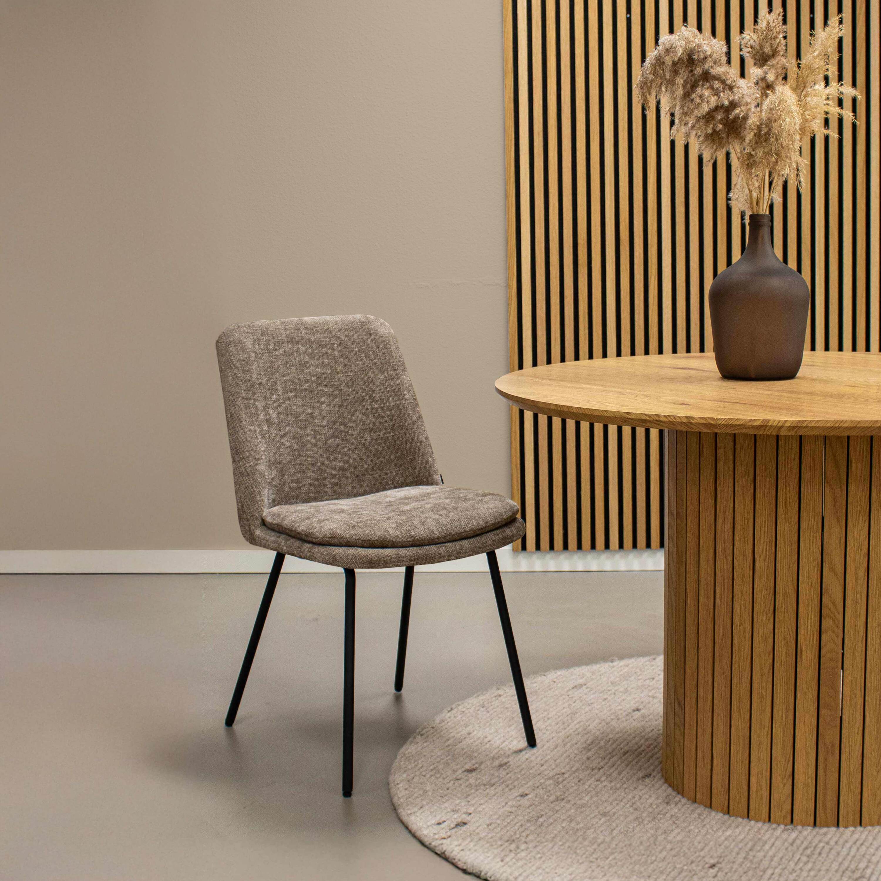 Ontmoet eetkamerstoel Jet! Deze toffe stoel is de perfecte combinatie tussen stoer en stijlvol. De stoel is gehuld is een fijne texture stof en heeft een uitnodigende uitstraling.