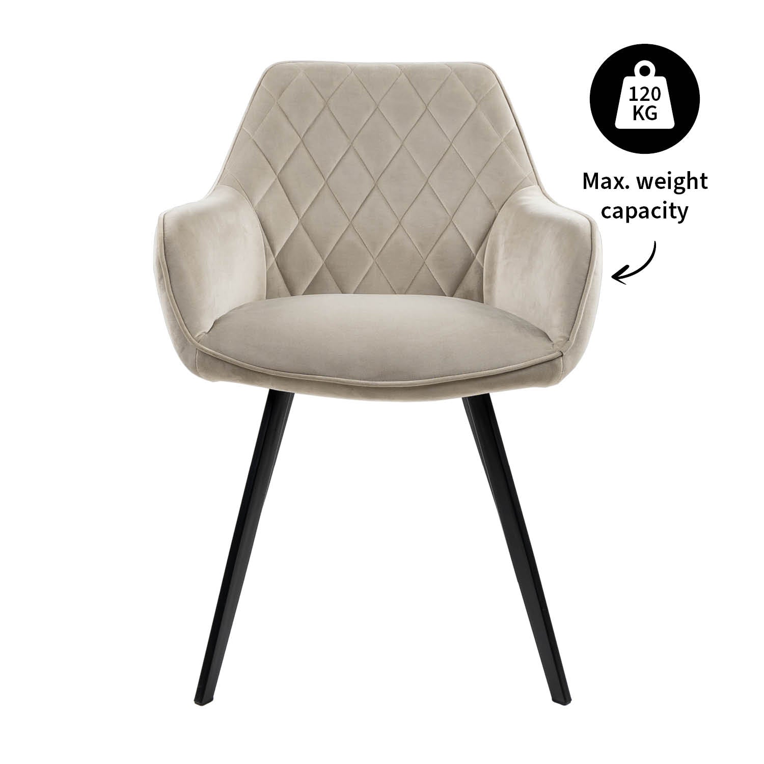 De eetkamerstoel Karl in de kleur champagne heeft een veerkrachtige zit en rug en biedt een zacht en tevens geweldig zitcomfort. Verkrijgbaar in 7 prachtige kleuren dus je hoeft alleen nog maar te kiezen.