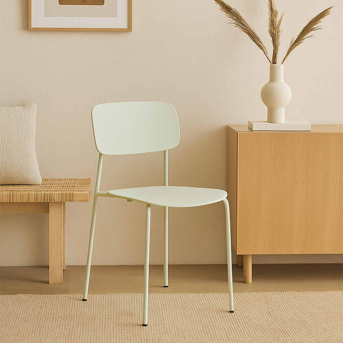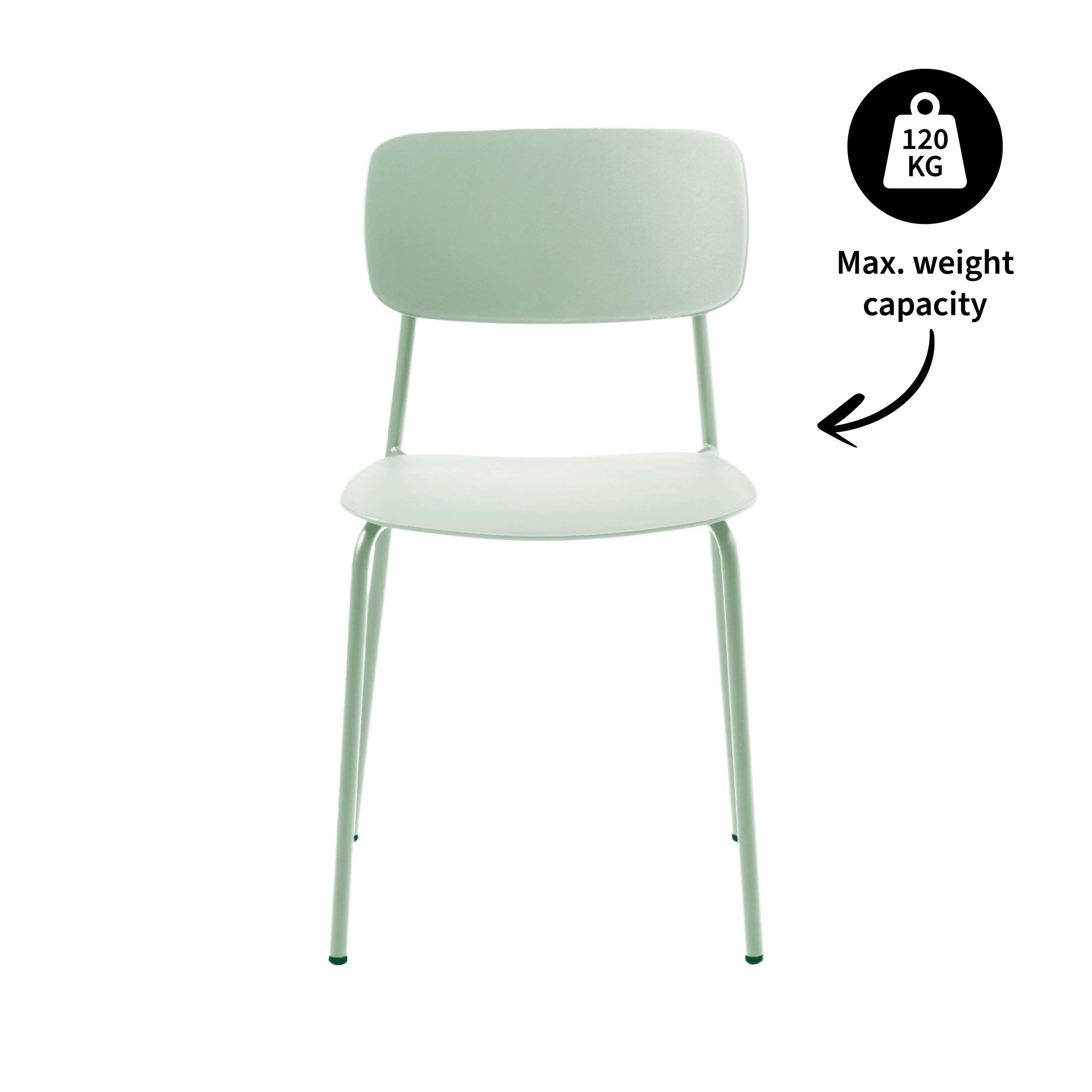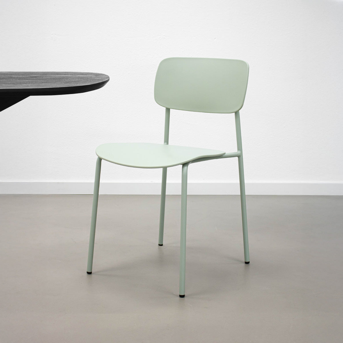 KICK eetkamerstoel LIO: elegant, minimalistisch, tijdloos en helemaal van nu! Op zoek naar een stoel die jouw interieur direct een frisse boost geeft? Maak kennis met eetkamerstoel LIO, een moderne schoolstoel met een knipoog naar vroeger. LIO is uitgevoerd in stevig kunststof, heeft een slank metalen frame en is verkrijgbaar in diverse toffe kleuren. Perfect voor aan de eettafel, op kantoor of als eyecatcher in je interieur. Dankzij het slanke frame en de opening tussen de rugleuning en de zitting, heeft LIO een luchtige uitstraling. Daarnaast neemt deze smalle eetkamerstoel weinig ruimte in en is het daardoor de ideale keuze voor in een kleine eethoek. LIO is zonder armleuningen ontworpen, waardoor er meer stoelen aan de eettafel passen.