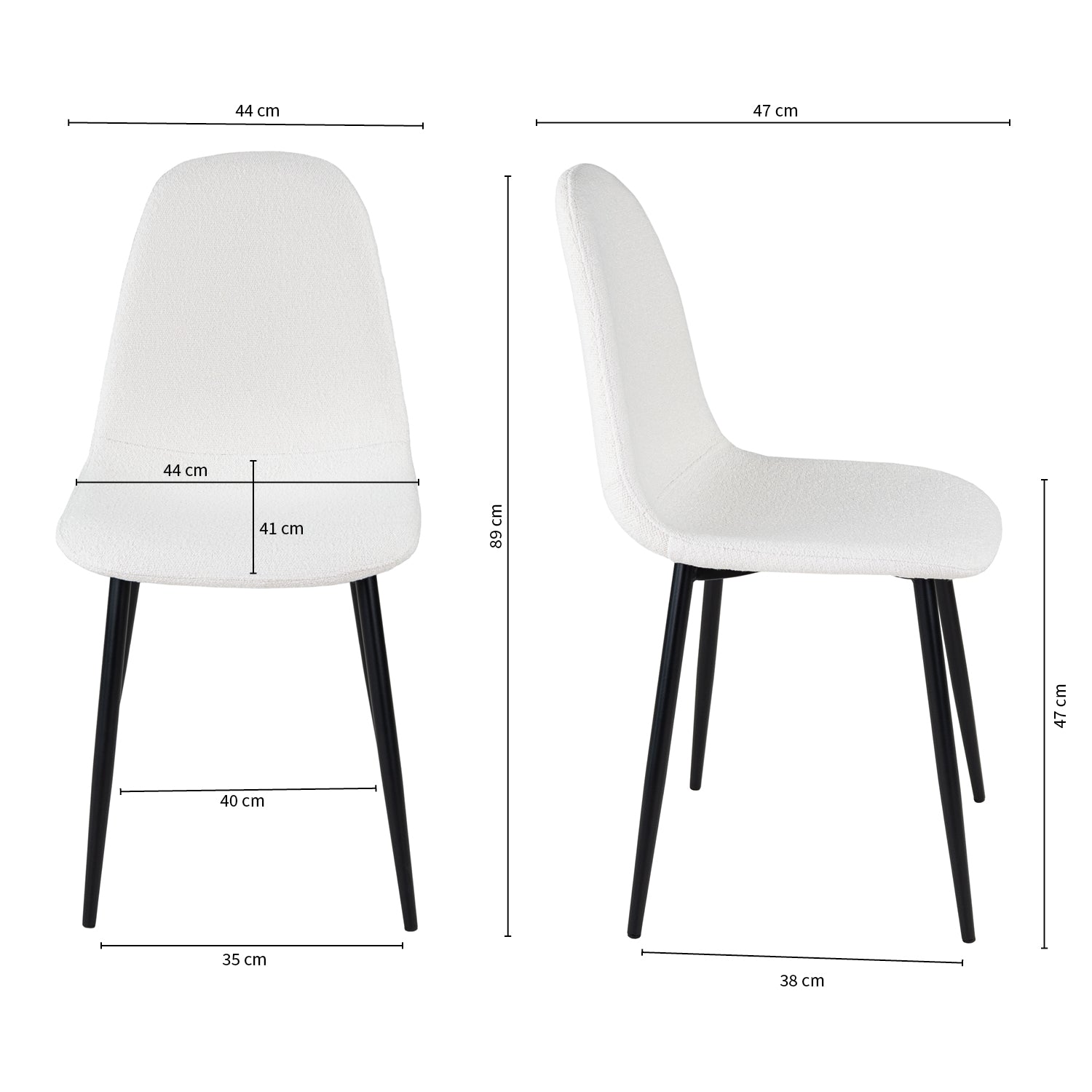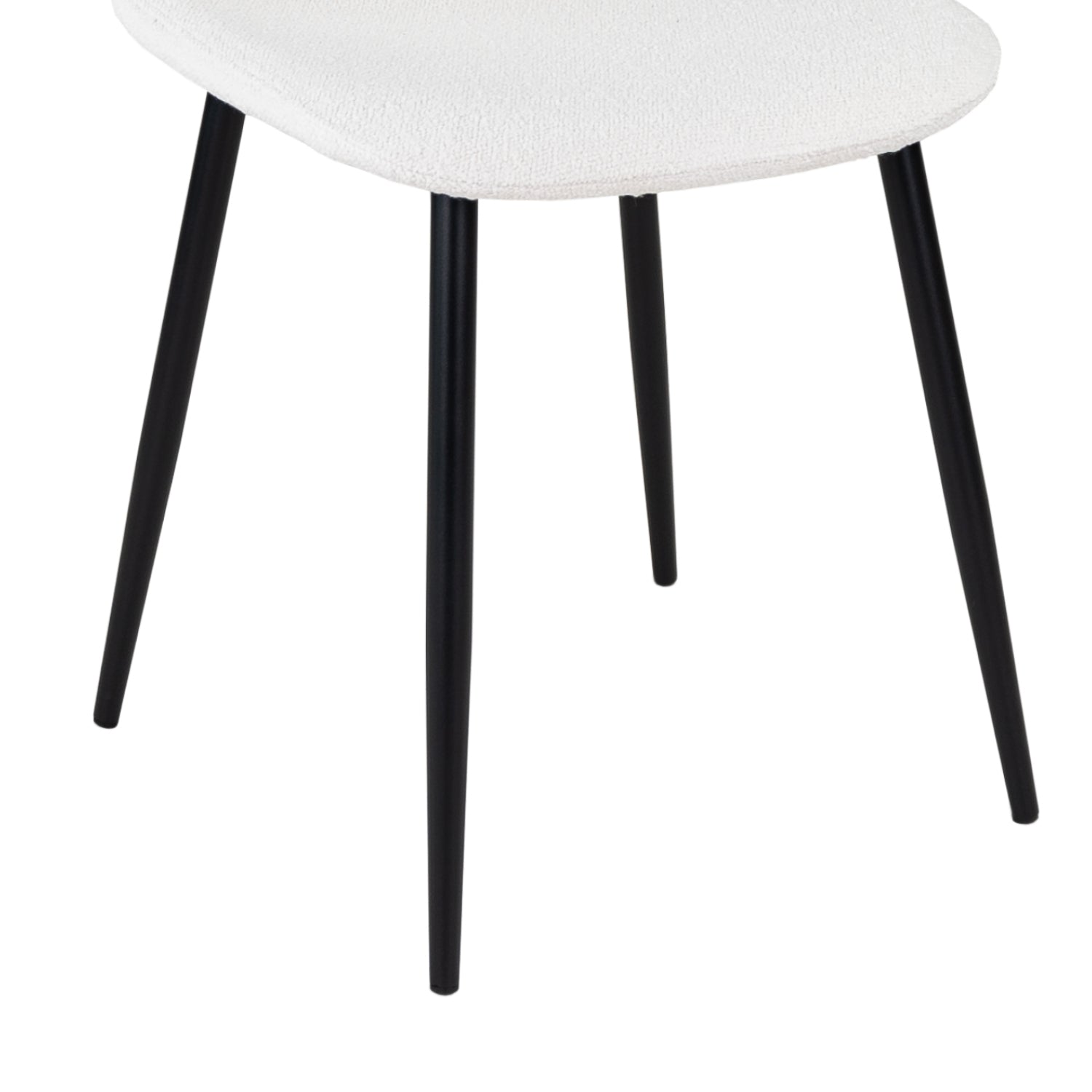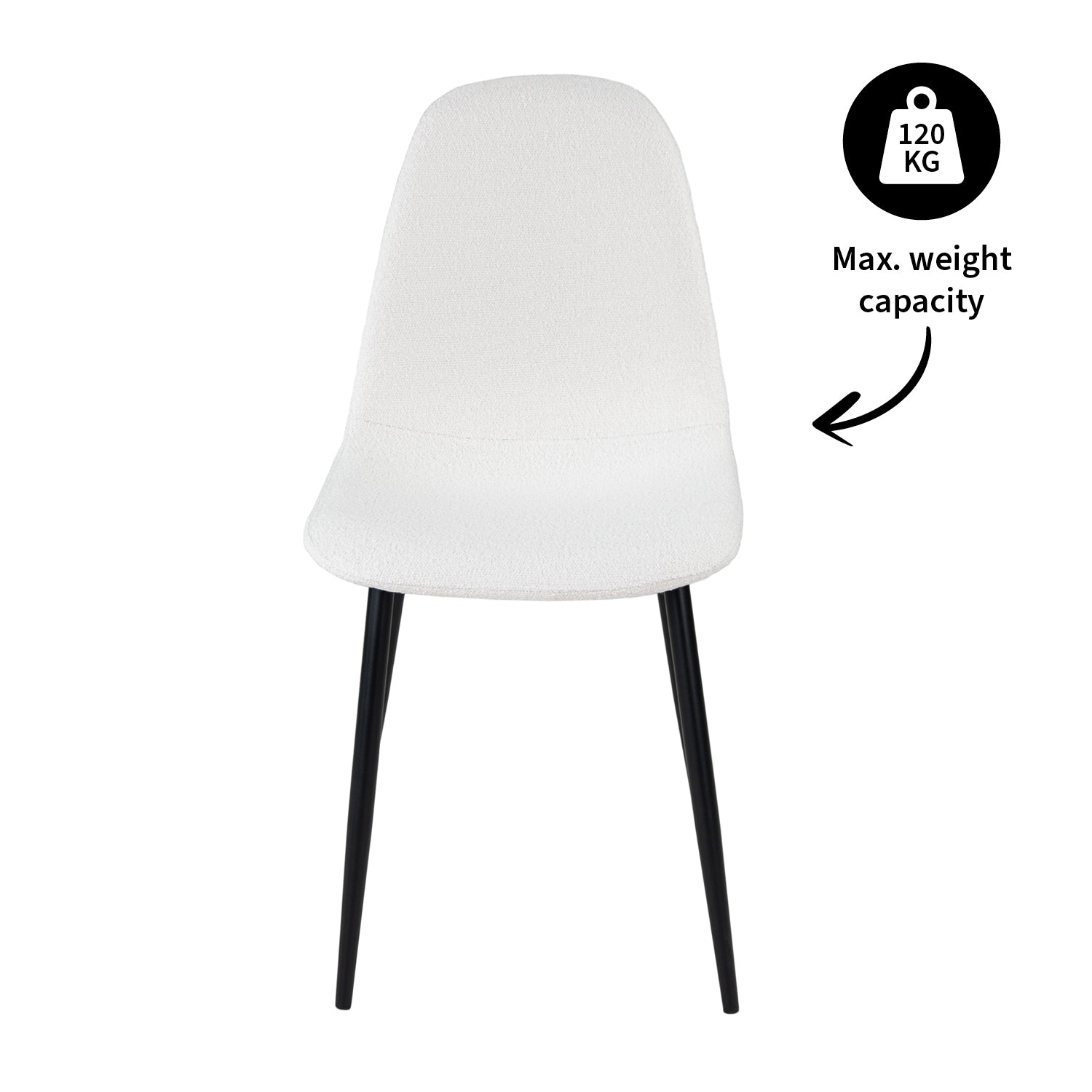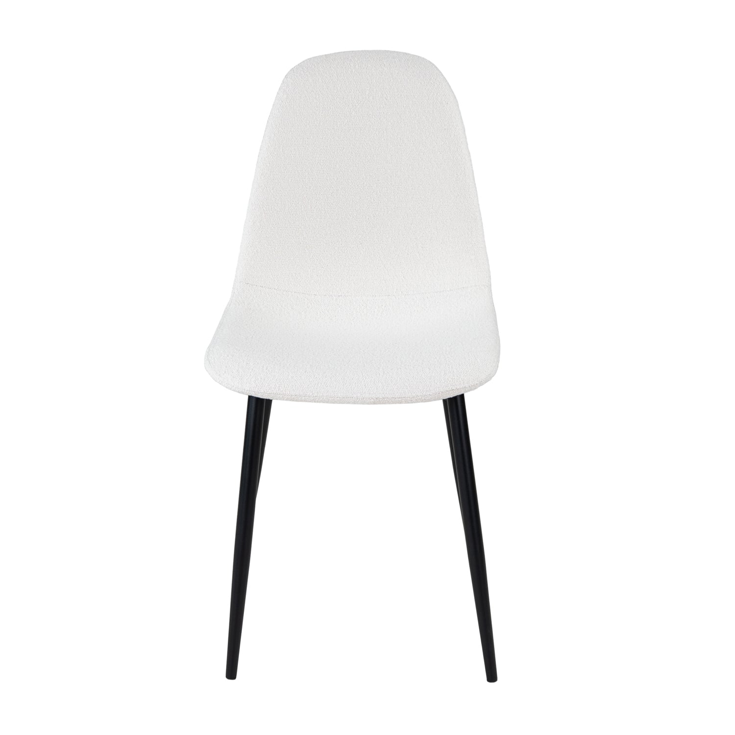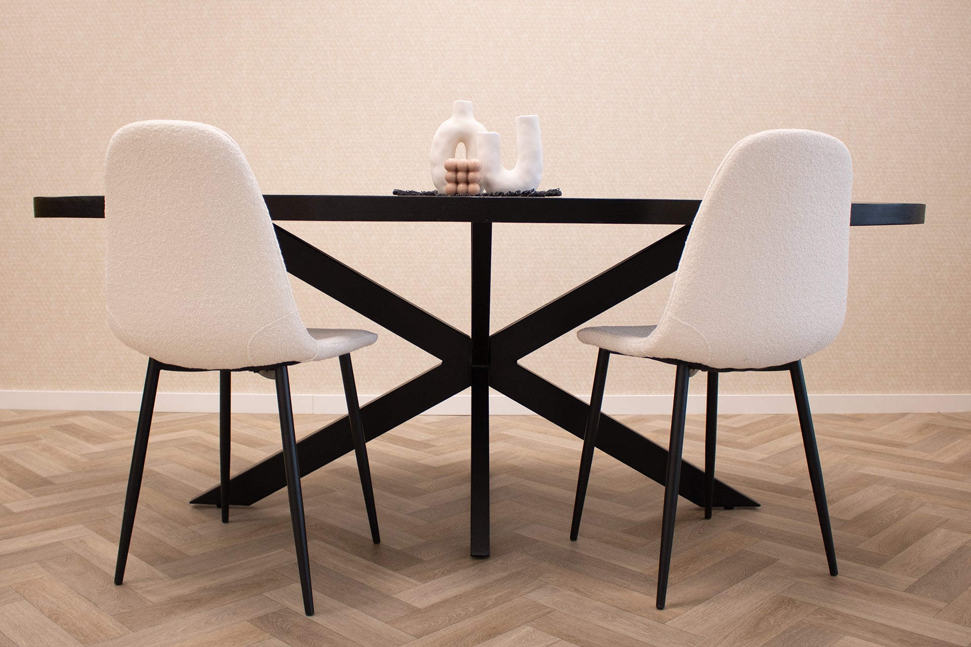 Kick Eetkamerstoel Mees - Wit THIS IS MEES! Een comfortabele eetkamerstoel die in vele interieurstijlen past. Eetkamerstoel MEES heeft een stevig zwart stalen onderstel en is bekleed met een fijne bouclé stof.