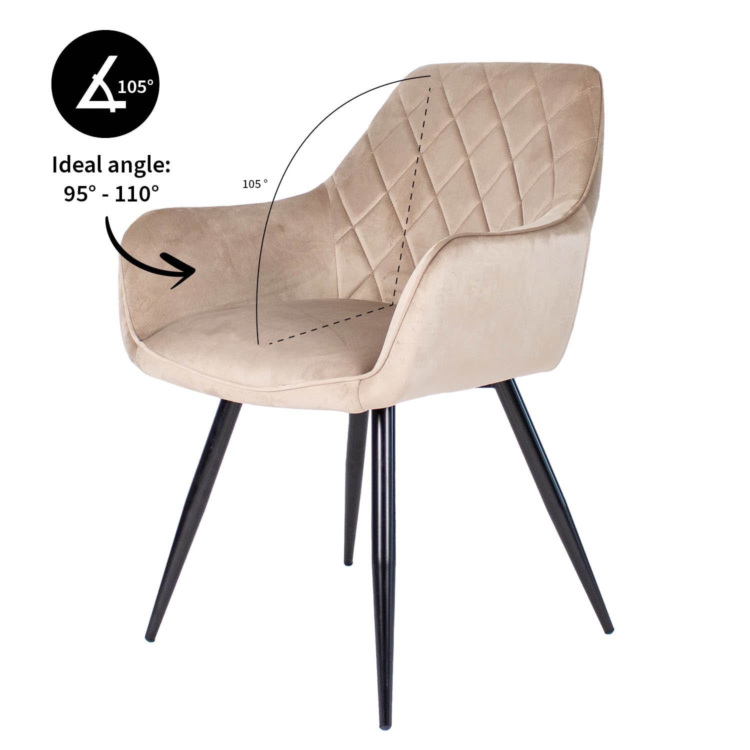 De hoogte van de zitting, gemeten vanaf de vloer. De ideale zithoogte bevindt zich tussen de 40 en 46 cm. Je zit het lekkerst met een ruimte van ongeveer 20 cm, tussen de stoelzitting en de onderkant van het tafelblad.