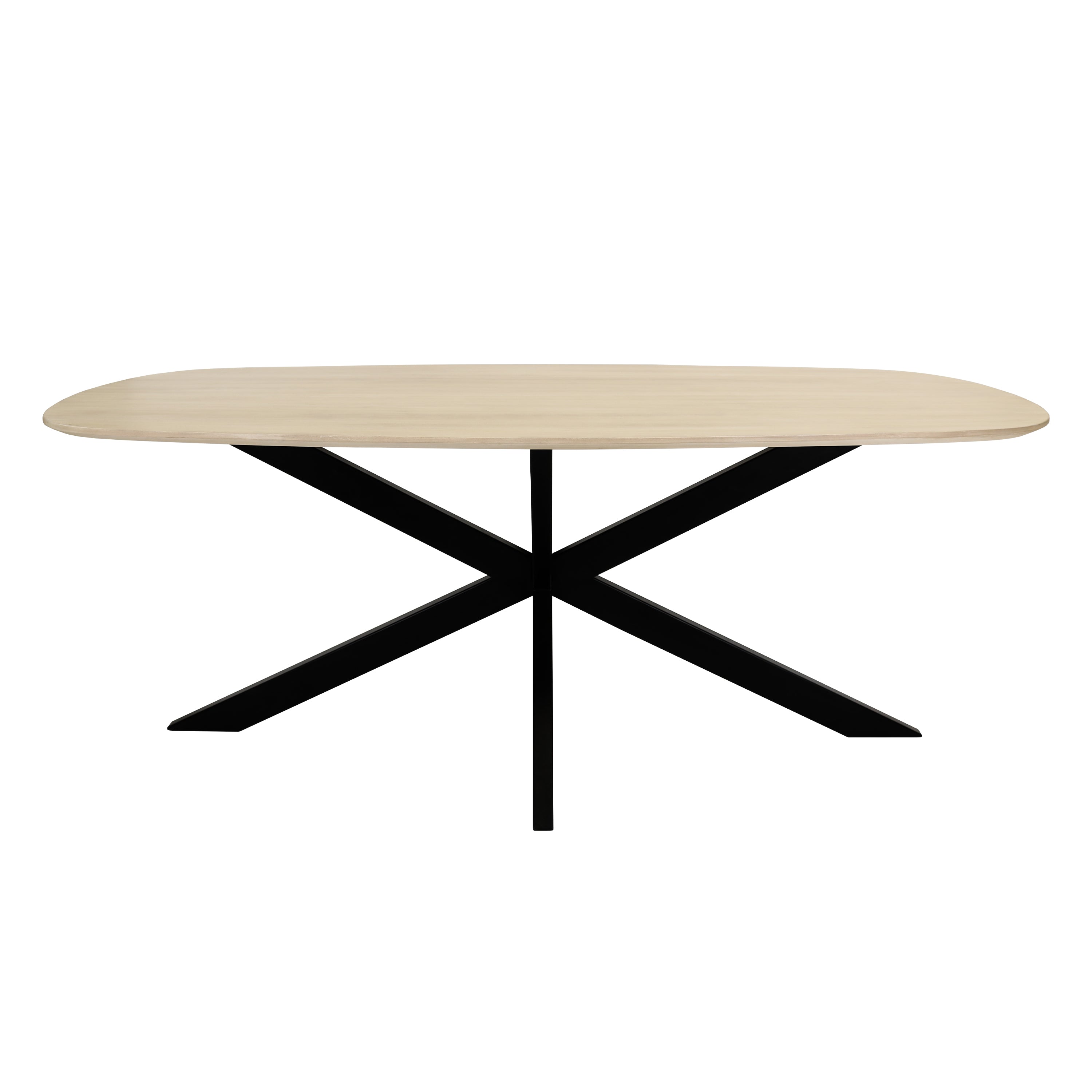DANA combineert sfeer, functionaliteit en stijl in één. Deze eettafel komt in verschillende interieurstijlen perfect tot zijn recht. Het Deens ovale tafelblad is gemaakt van acaciahout en rust op een stevig, zwart metalen X-frame.