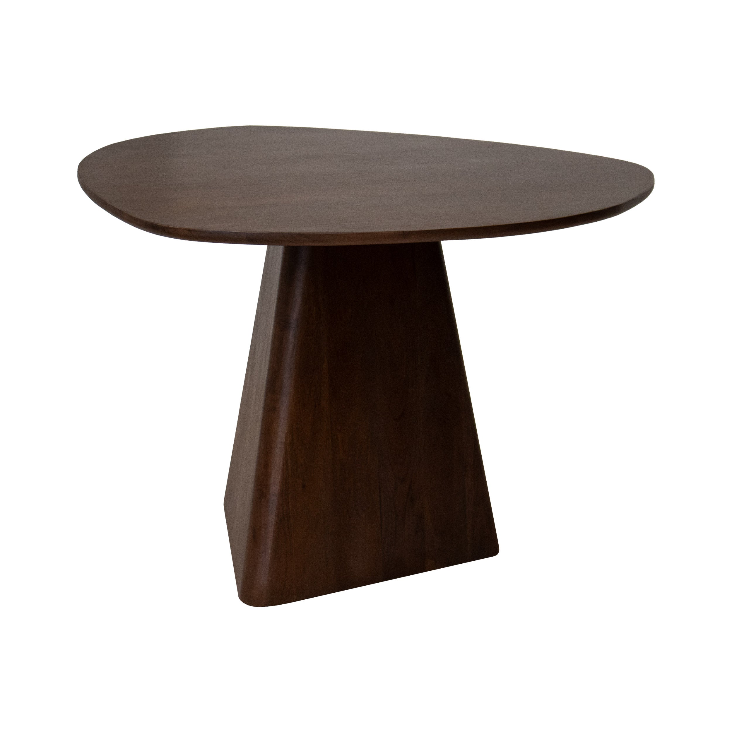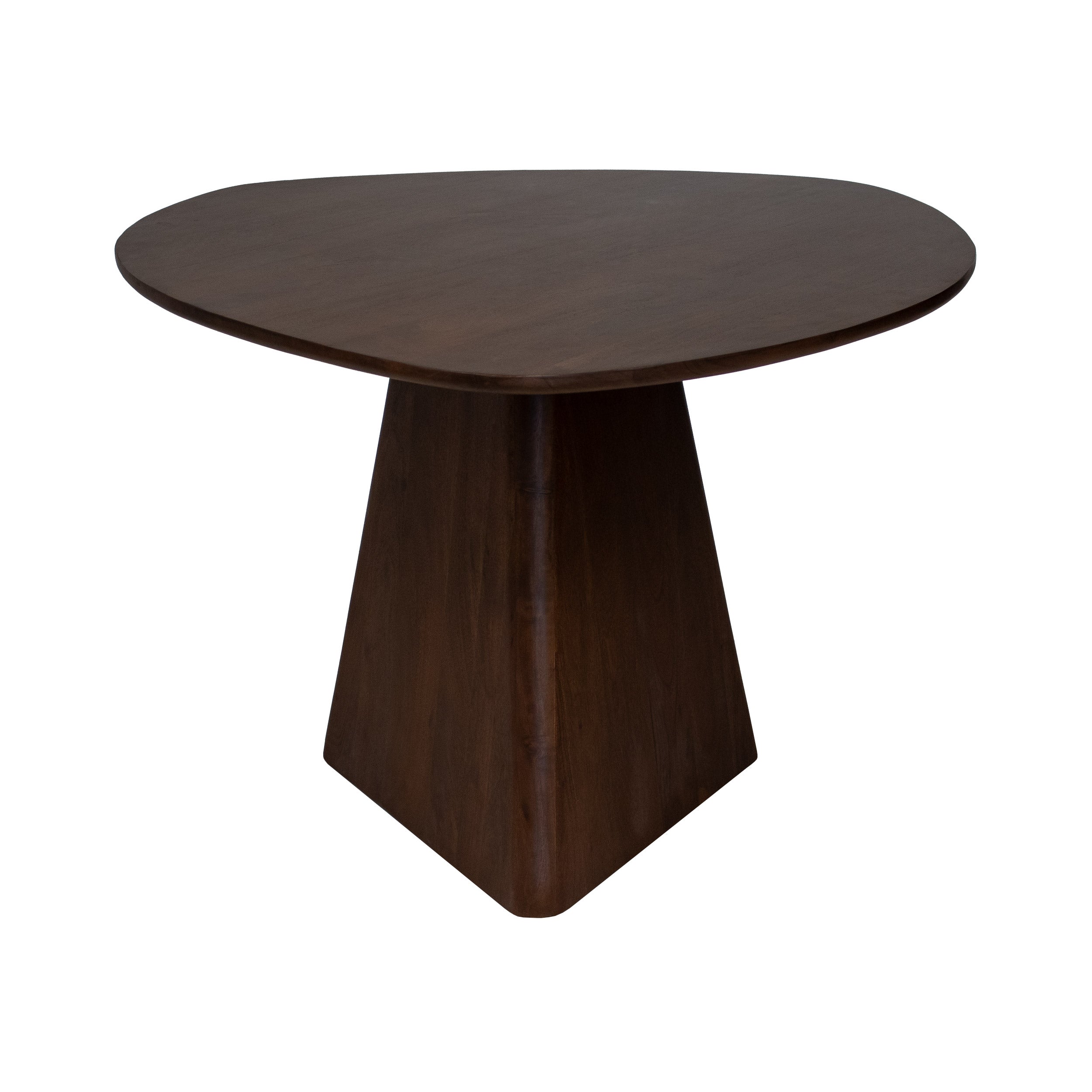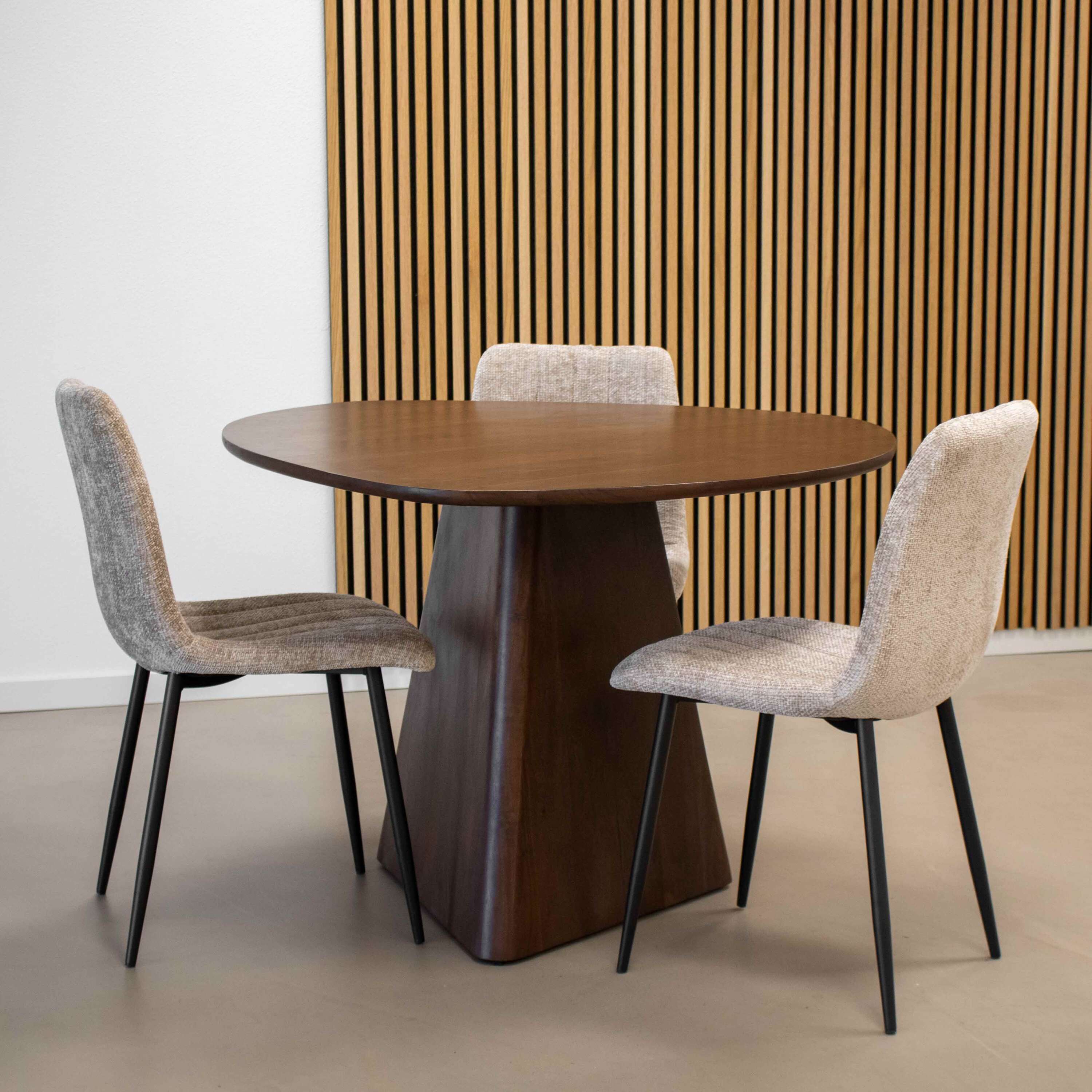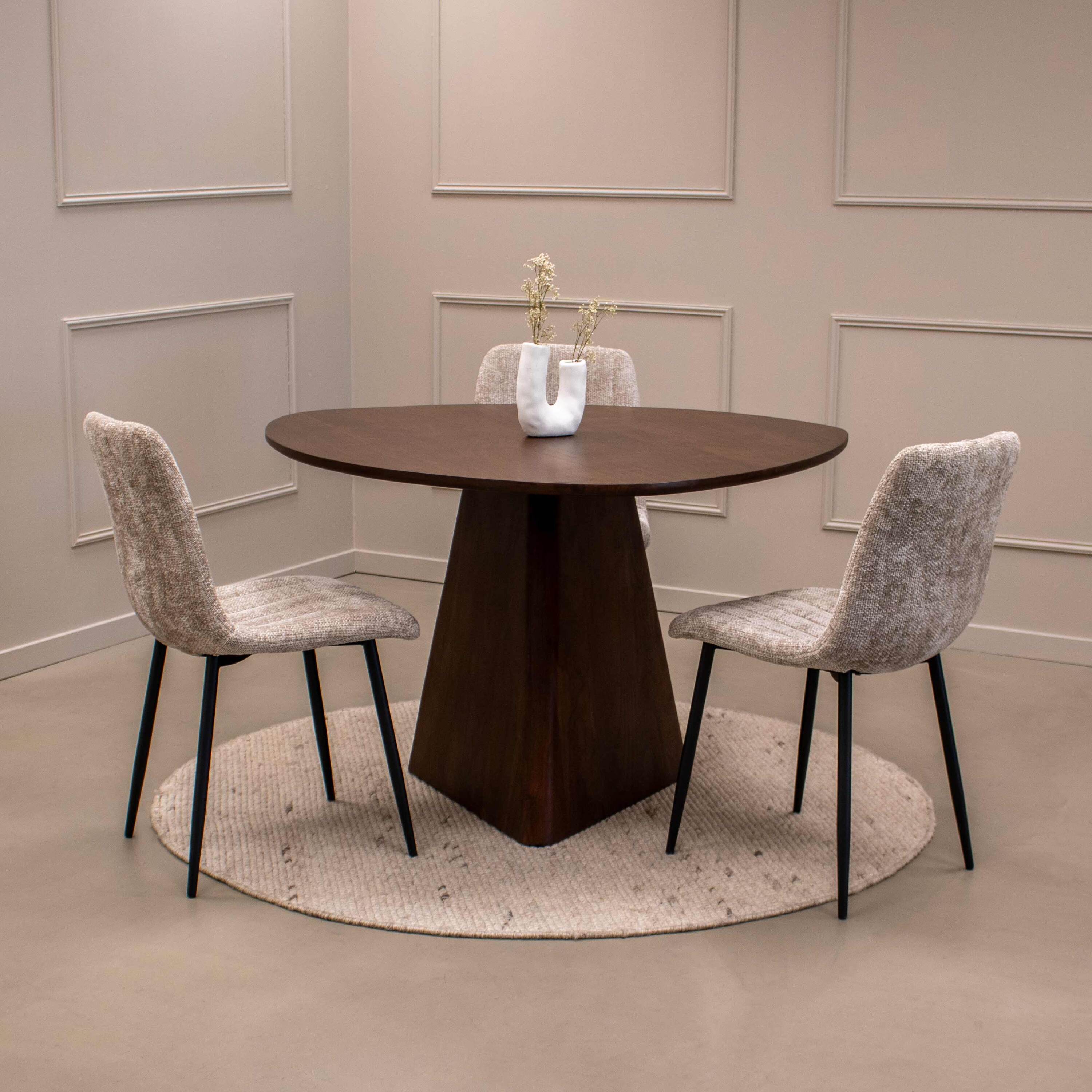 Meet Tore! Eettafel Tore is uniek in zijn soort, een echte eyecatcher voor in jouw eetkamer! De tafel heeft een driehoek vorm met afgeronde hoeken, hierdoor krijg je een speels en organisch effect. Zowel het blad als de poot zijn ontworpen in deze unieke vorm.