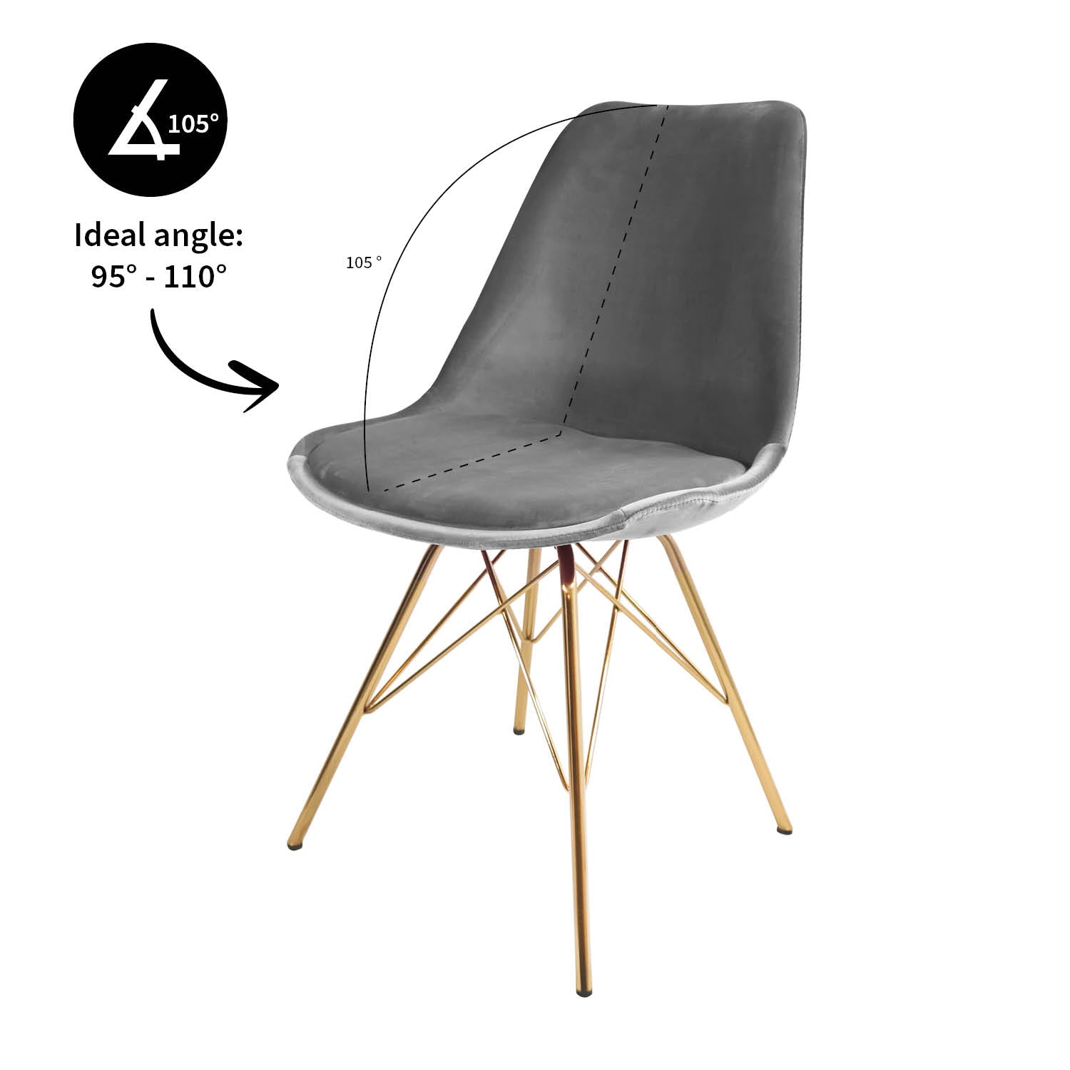 De hoogte van de zitting, gemeten vanaf de vloer. De ideale zithoogte bevindt zich tussen de 40 en 46 cm. Je zit het lekkerst met een ruimte van ongeveer 20 cm, tussen de stoelzitting en de onderkant van het tafelblad.