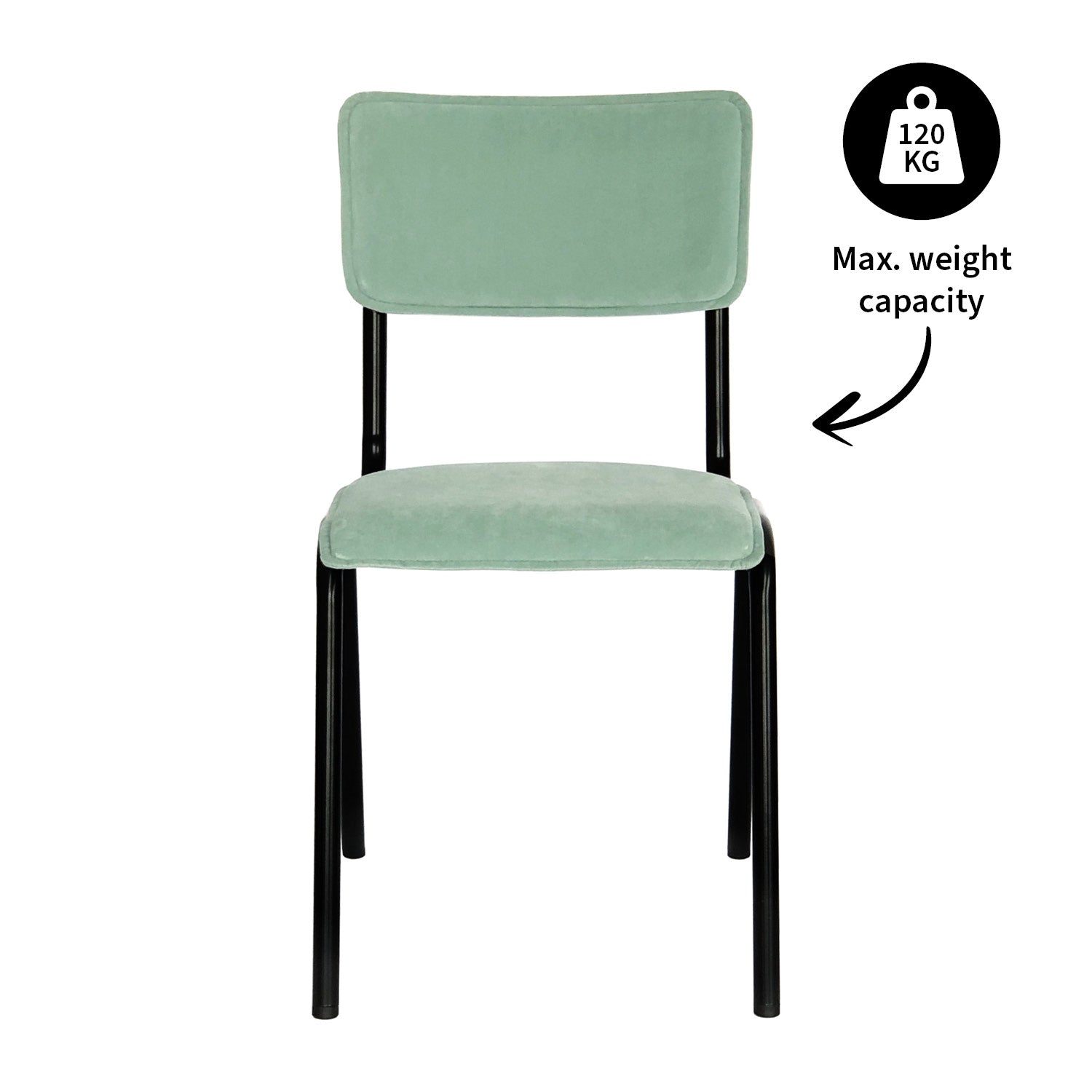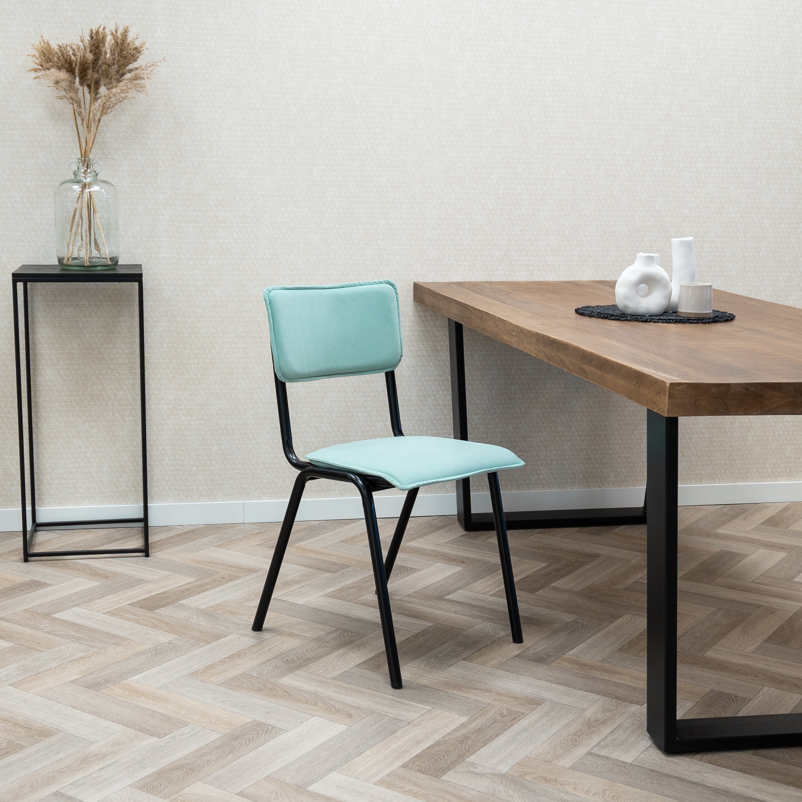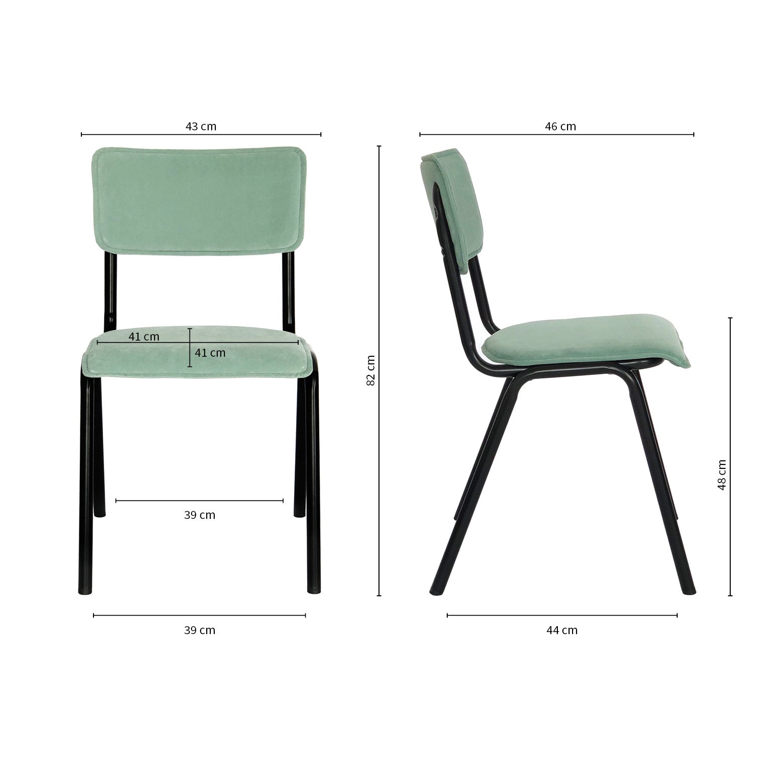 De hoogte van de zitting, gemeten vanaf de vloer. De ideale zithoogte bevindt zich tussen de 40 en 46 cm. Je zit het lekkerst met een ruimte van ongeveer 20 cm, tussen de stoelzitting en de onderkant van het tafelblad.