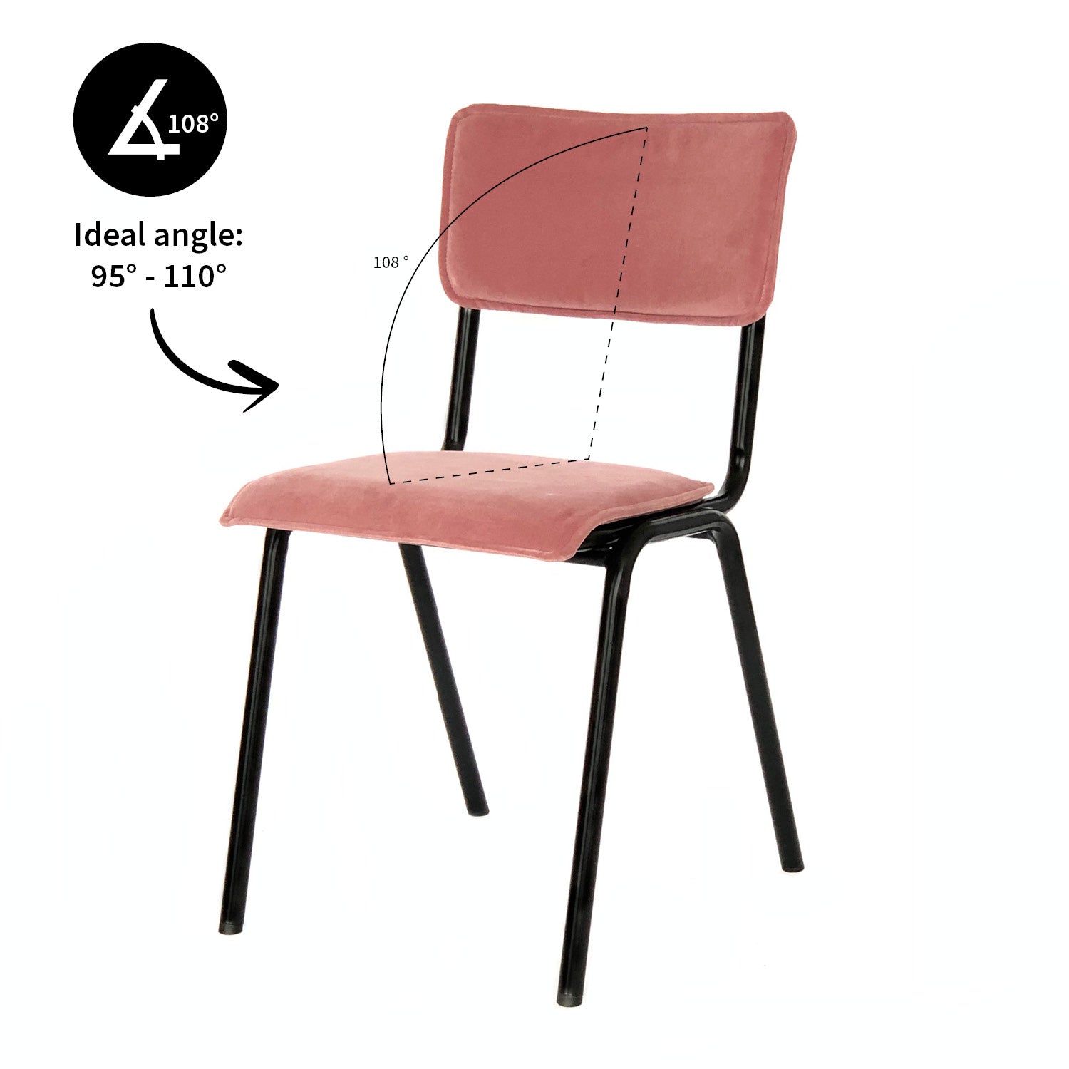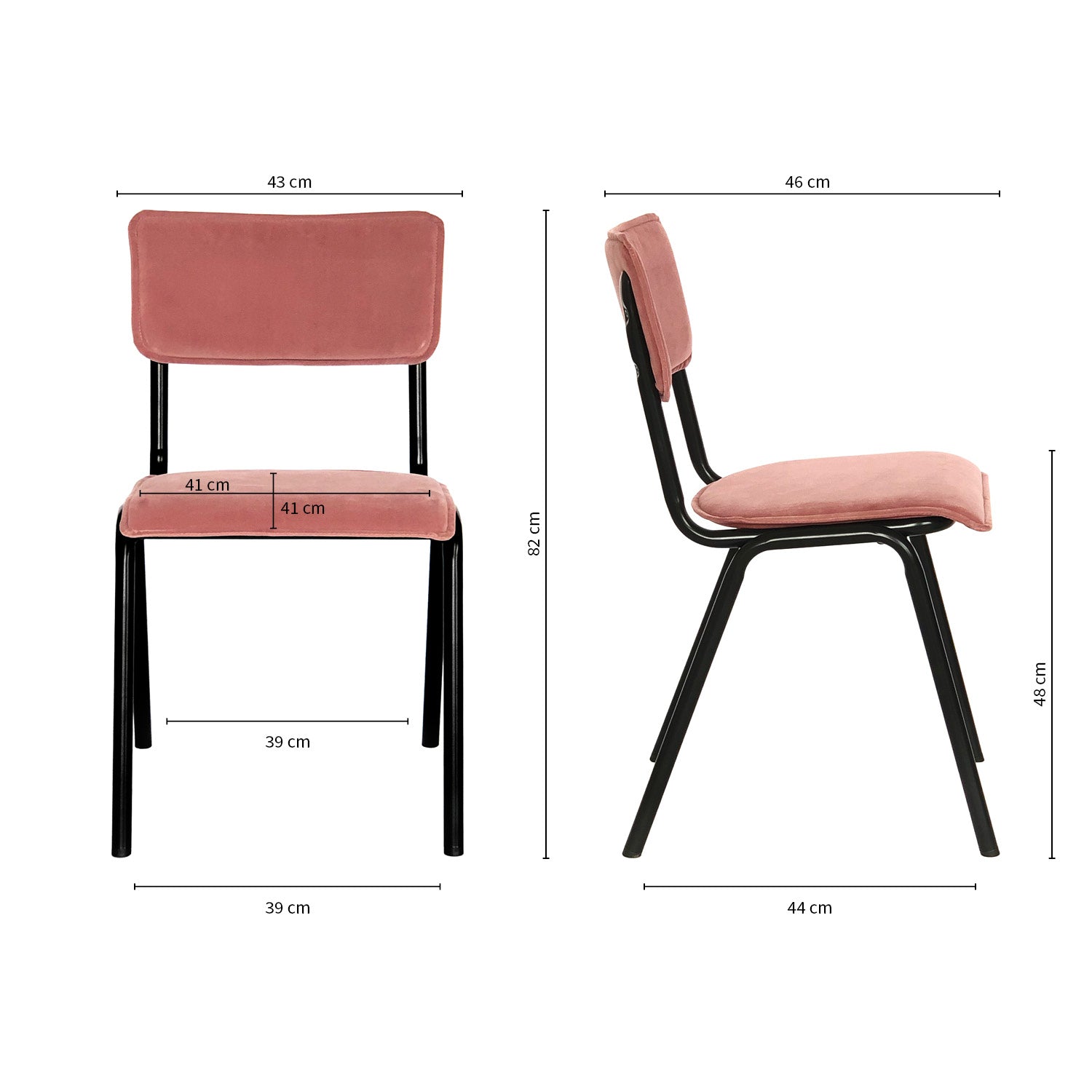 De hoogte van de zitting, gemeten vanaf de vloer. De ideale zithoogte bevindt zich tussen de 40 en 46 cm. Je zit het lekkerst met een ruimte van ongeveer 20 cm, tussen de stoelzitting en de onderkant van het tafelblad.