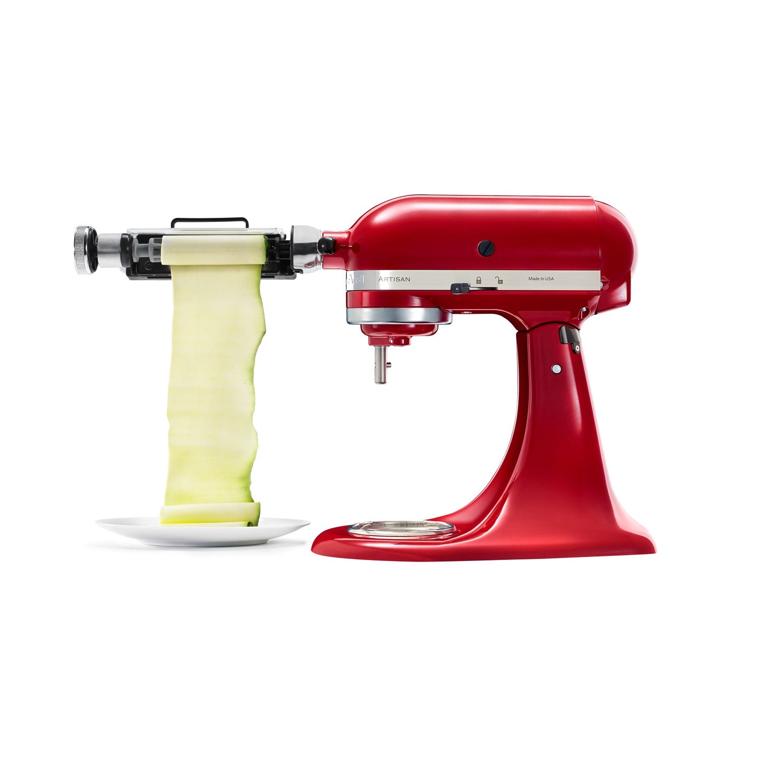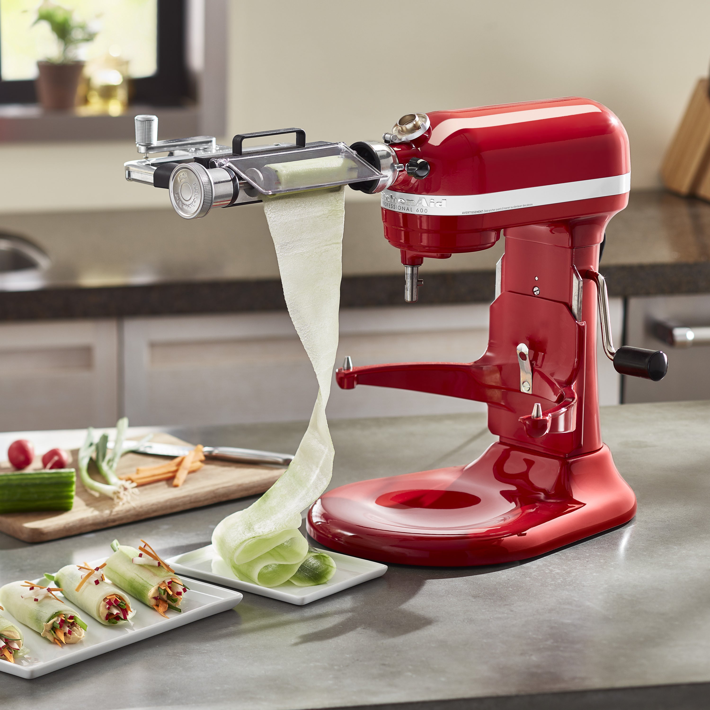Groenten en fruit Deze mooie accessoire voor de KitchenAid keukenmixers stimuleert je om gezonder te koken en meer groenten en fruit aan je gerechten toe te voegen. De Japanse groentesnijder is geschikt voor de zachtere type groenten zoals courgette en komkommer, maar ook voor stevigere ingrediënten zoals appel en zoete aardappel.