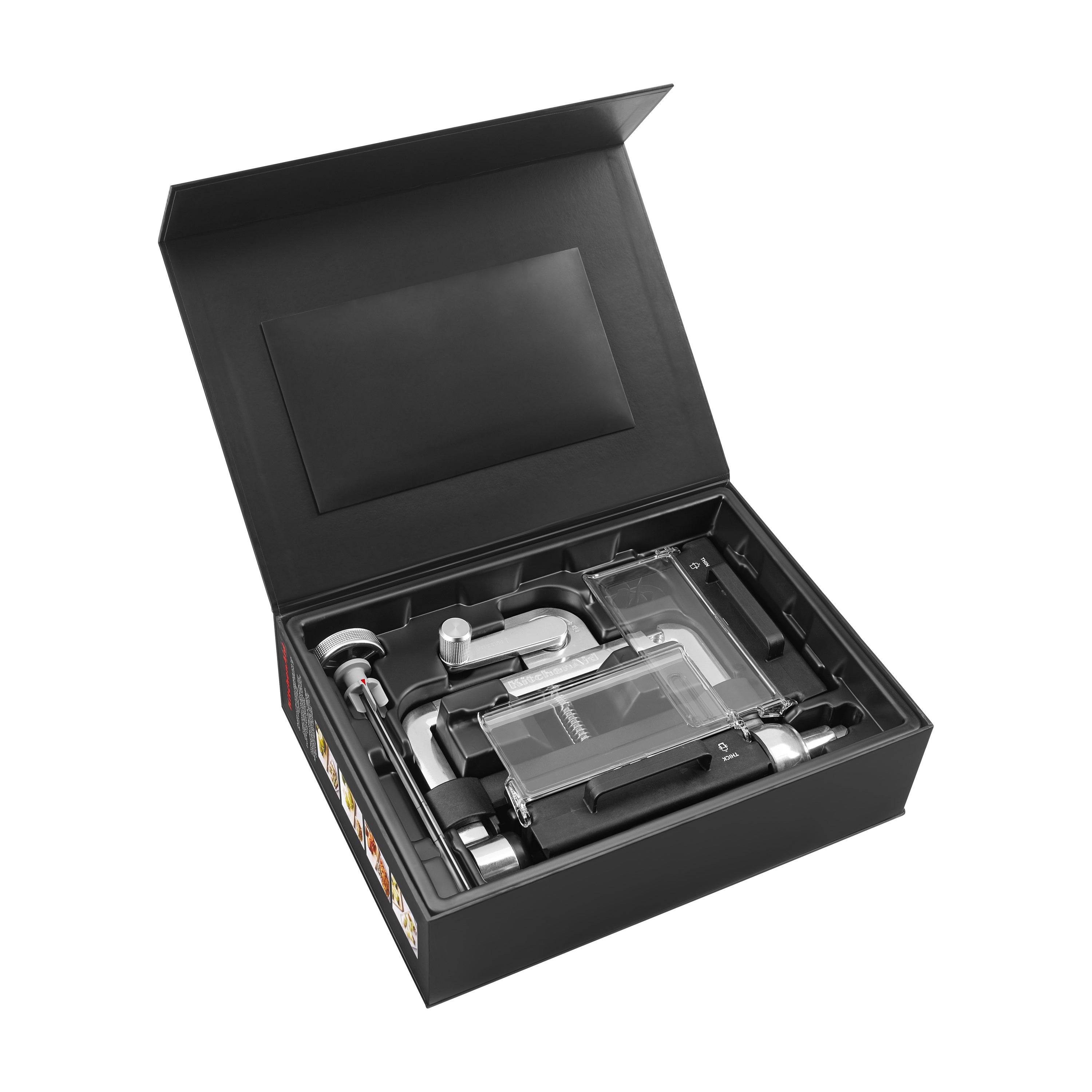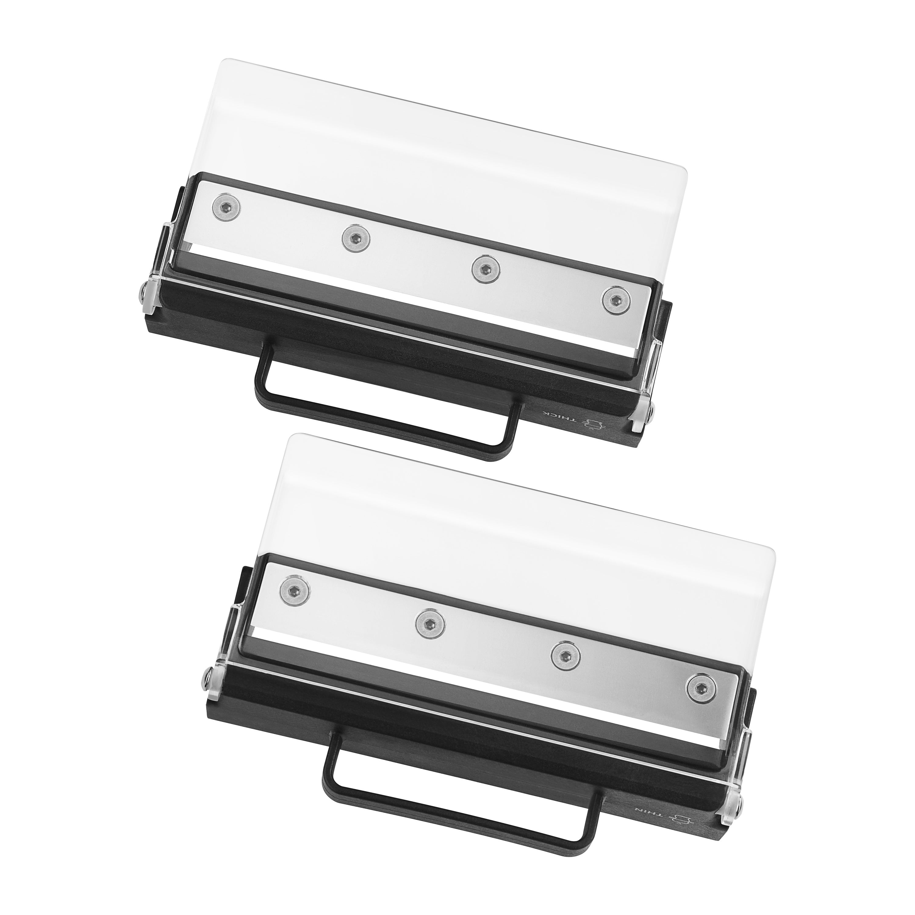 Twee messen De Japanse Groentesnijder komt met twee bijgeleverde messen. Eén is geschikt voor het snijden van dikke vellen en één voor het snijden van dunne vellen. Zo kun je de dikte afstemmen op het recept, het type groente of fruit of gewoonweg op wat je het lekkerst vindt.