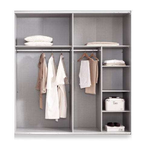 Kledingkast Aalst is een essentieel item voor een georganiseerd huis. Deze kast biedt voldoende ruimte voor het opbergen van kleding en beddengoed. Door extra planken toe te voegen, kun je er nog meer in kwijt. De kast heeft een moderne en luxueuze uitstraling met een taupe kleur en zwarte handgrepen. Het past perfect in elk modern en sfeervol interieur. Indeling: Het interieur van de kast is lichtgrijs en is verdeeld in twee gelijke vakken. Er worden twee planken en twee roedes meegeleverd. Belangrijke informatie: Kledingkast Aalst heeft een breedte van 225 cm, een diepte van 65 cm en een hoogte van 210 cm. De kast wordt in staande positie opgebouwd, wat handig is als je beperkte ruimte hebt. Houd er rekening mee dat er een tussenruimte van 4 cm nodig is voor de montage, dus de minimale hoogte van het plafond moet 214 cm zijn.| Afmetingen | |