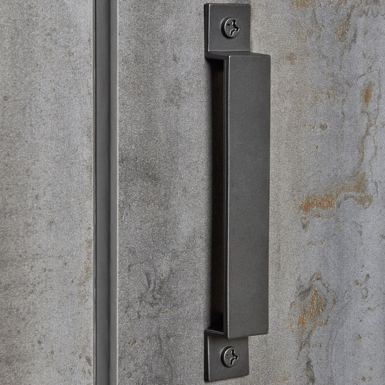 Kledingkast Gameren is een prachtige draaideurkast met een unieke en stoere uitstraling. De royale kast heeft een donkergrijze stalen look met robuust beslag en zwarte grepen. Naast het mooie uiterlijk heeft Gameren ook handige lades en een praktische spiegel. De spiegel is niet alleen om jezelf te bewonderen, maar zorgt ook voor een ruimtelijk effect in de kamer. Deze kledingkast is perfect voor een eigentijds interieur. Indeling: