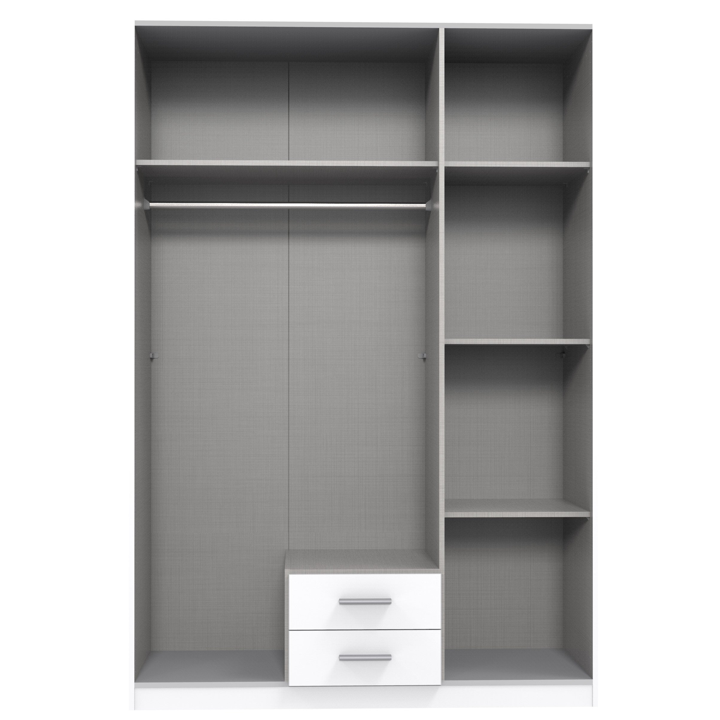 De Gameren kledingkast heeft aan de linkerkant een dubbeldeurs vak met 1 legplank en 1 roede. Aan de rechterkant bevindt zich een enkeldeurs gedeelte met 3 legplanken. In het midden van de kast zit de deur met spiegel en daaronder bevinden zich 2 lades. Goed om te weten: