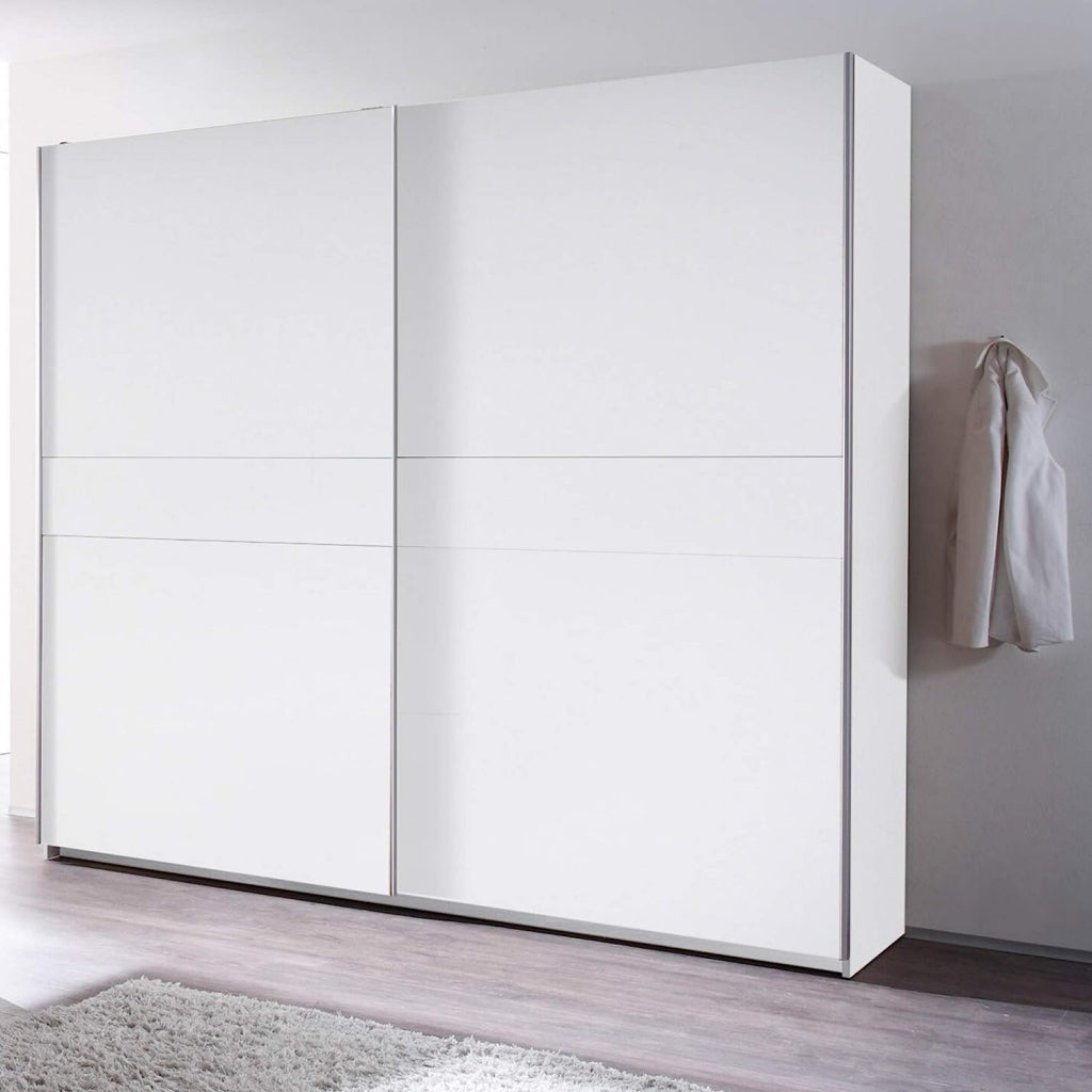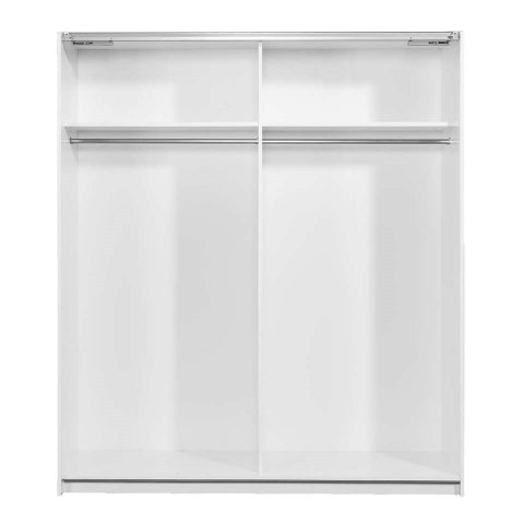 Kledingkast Victor: De Kledingkast Victor is een luxe schuifdeurkast in een eenvoudige witte uitvoering. Hierdoor past deze kast perfect bij elke woonstijl. De kast heeft 2 schuifdeuren met een luxe handgreep van aluminium. Als je een soft close systeem op jouw kledingkast wilt, kun je een set deurdempers bestellen. Indeling: De binnenkant van de kast is verdeeld door een tussenwand, waardoor er 2 gelijke ruimtes ontstaan. In elk gedeelte bevindt zich een roede met daarboven een legplank. Als je meer ruimte nodig hebt voor het opbergen van kleding, kun je een extra set legplanken van 105 cm breed bestellen en zelf bepalen hoe je de kast wilt indelen. Belangrijke informatie: De kast heeft een breedte van 215 cm, een diepte van 58 cm en een hoogte van 210 cm. Bij de levering van de kast zijn 2 roedes van 105 cm lang en 2 legplanken van 105x42 cm inbegrepen. De kast moet nog gemonteerd worden.