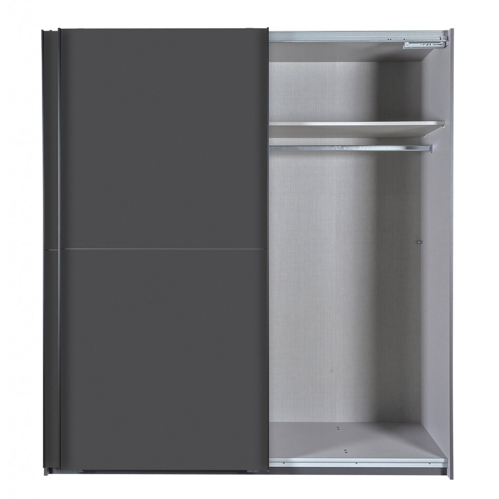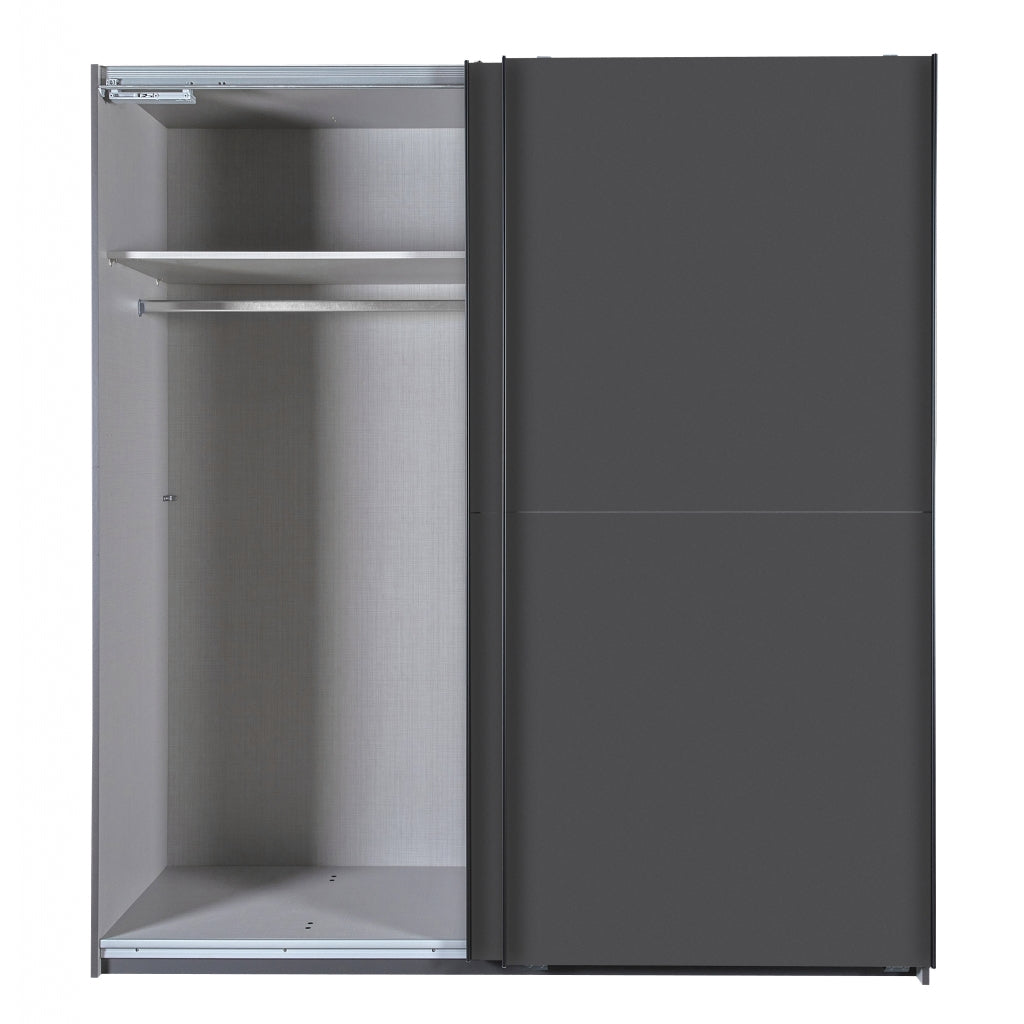 Vught is een trendy kledingkast met een eigentijdse uitstraling. De kast en de metalen greeplijsten zijn volledig in de kleur grafiet, wat zorgt voor een bijna zwarte tint. Indeling: