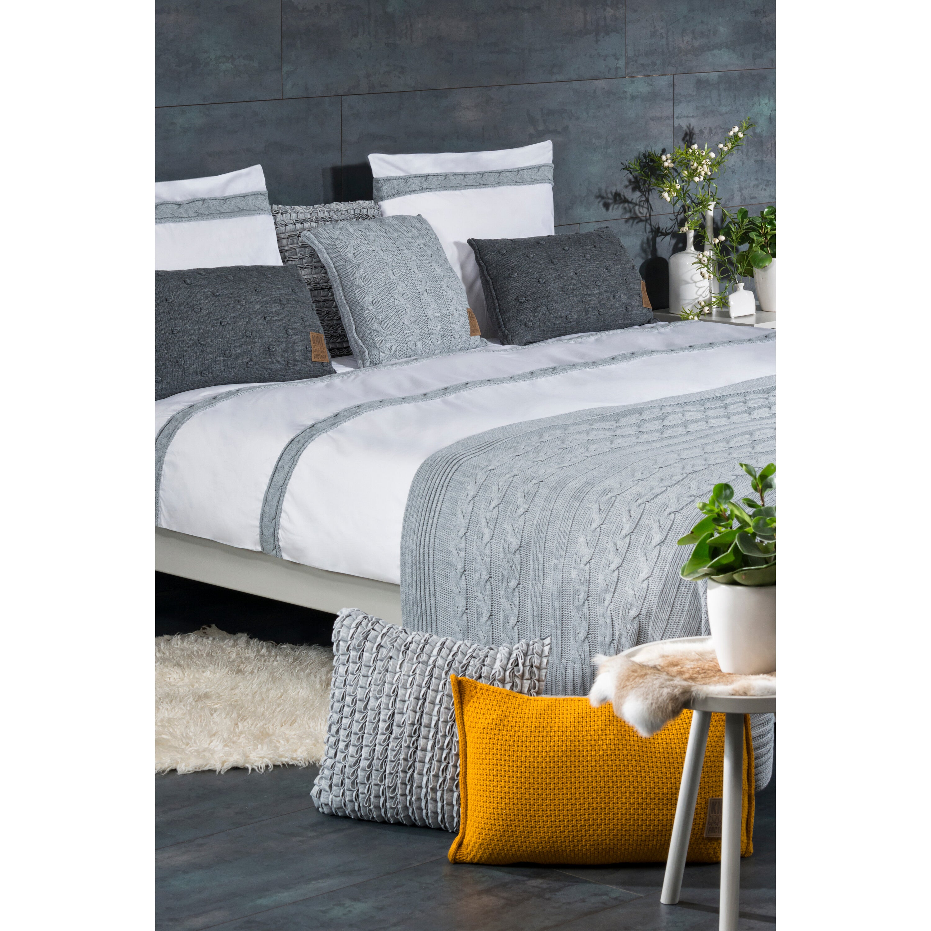 - et gestreepte breimotief aan de achterzijde geeft dit sierkussen een mooie afwerking.
