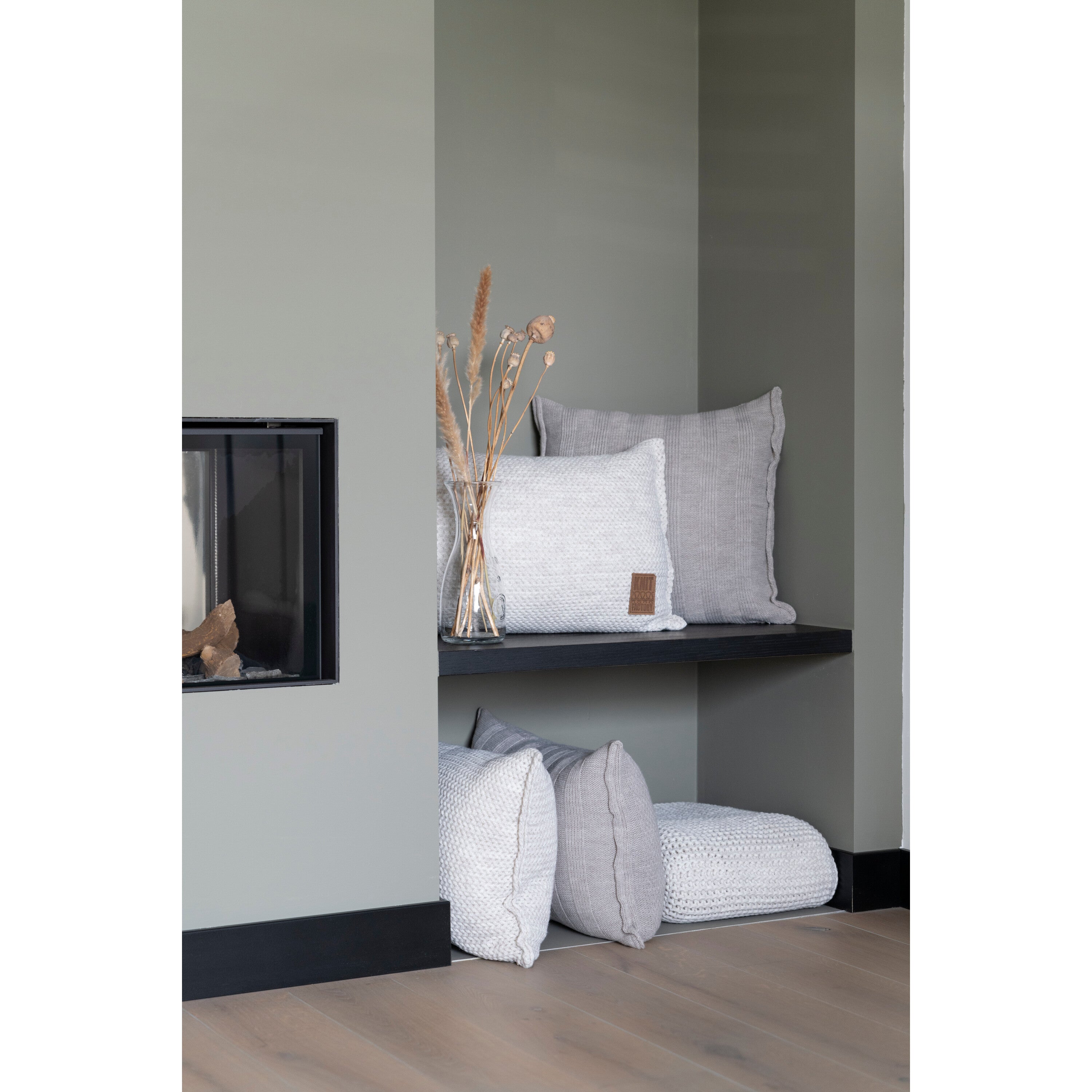 - De Knit Factory Jesse heeft een afmeting van 50x50 cm of 60x40 cm en wordt geleverd met uitneembare vulling.