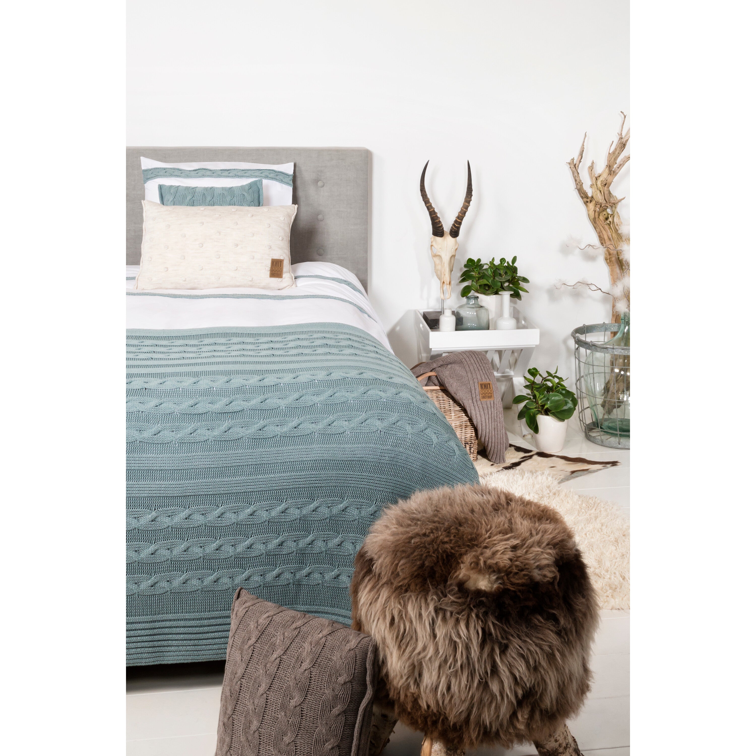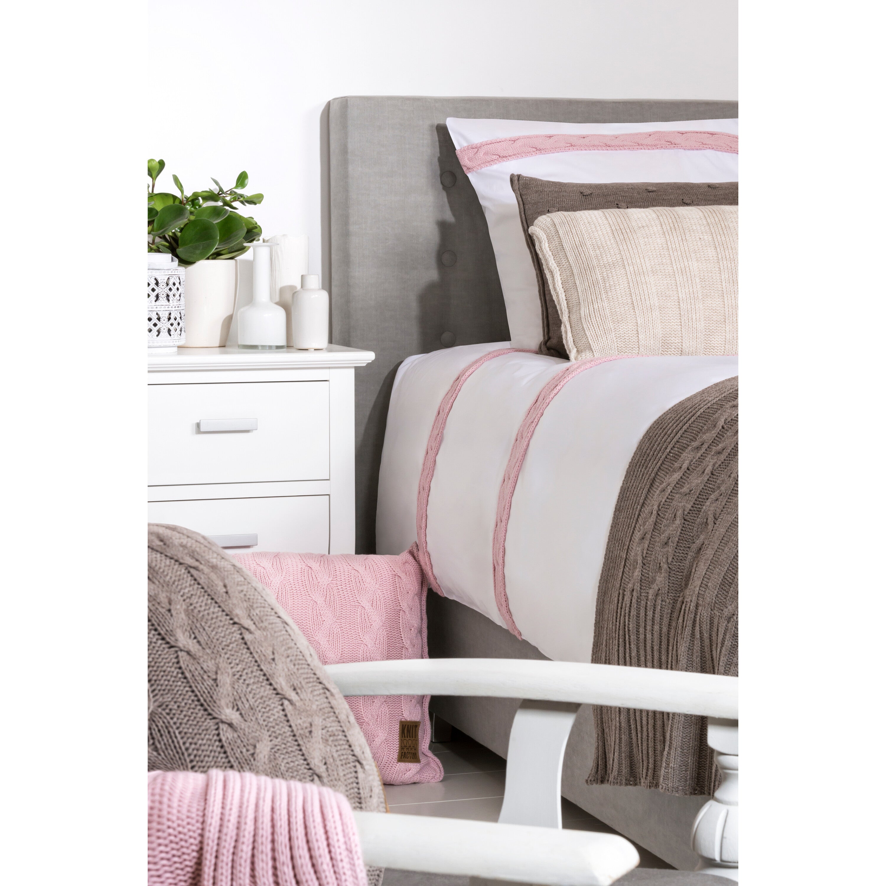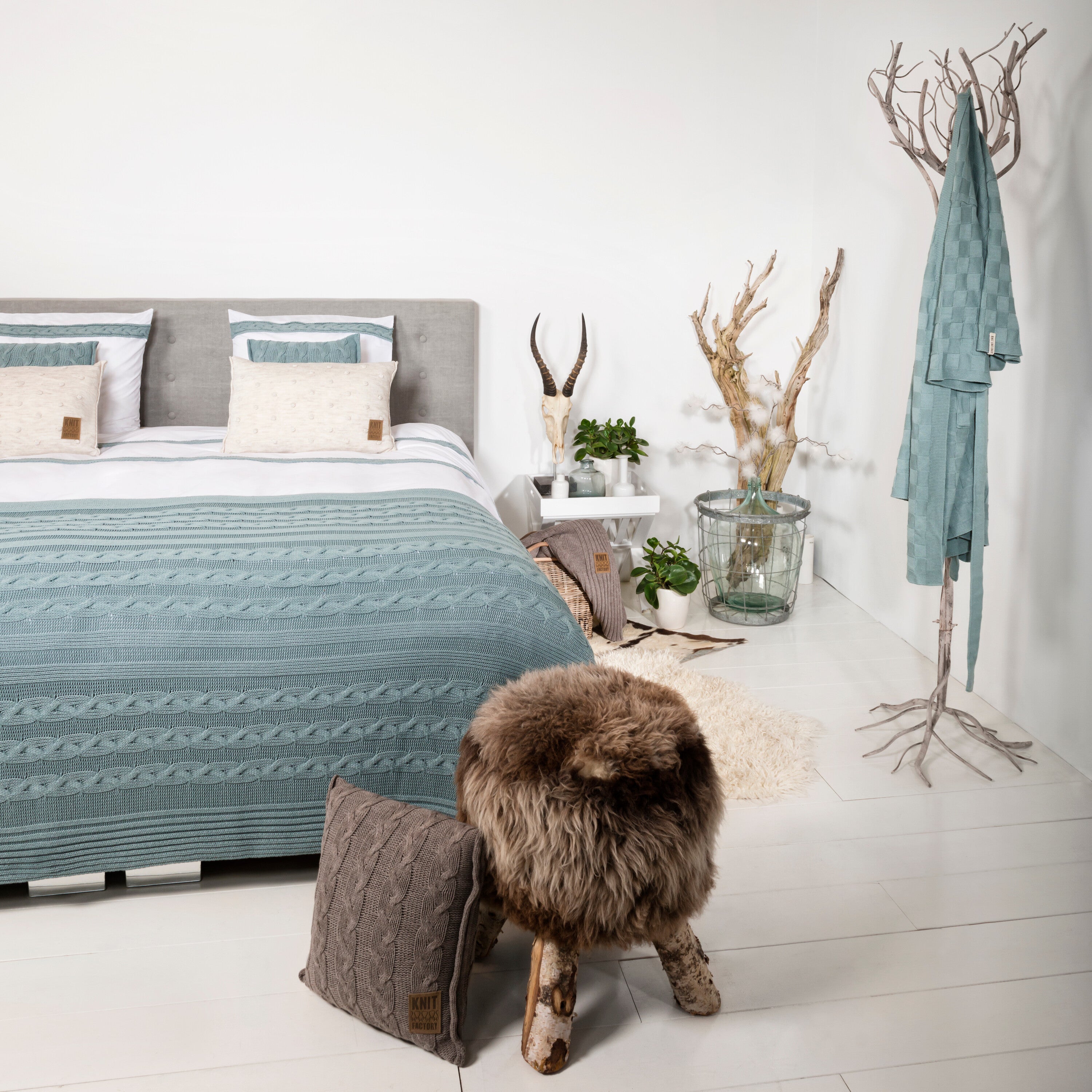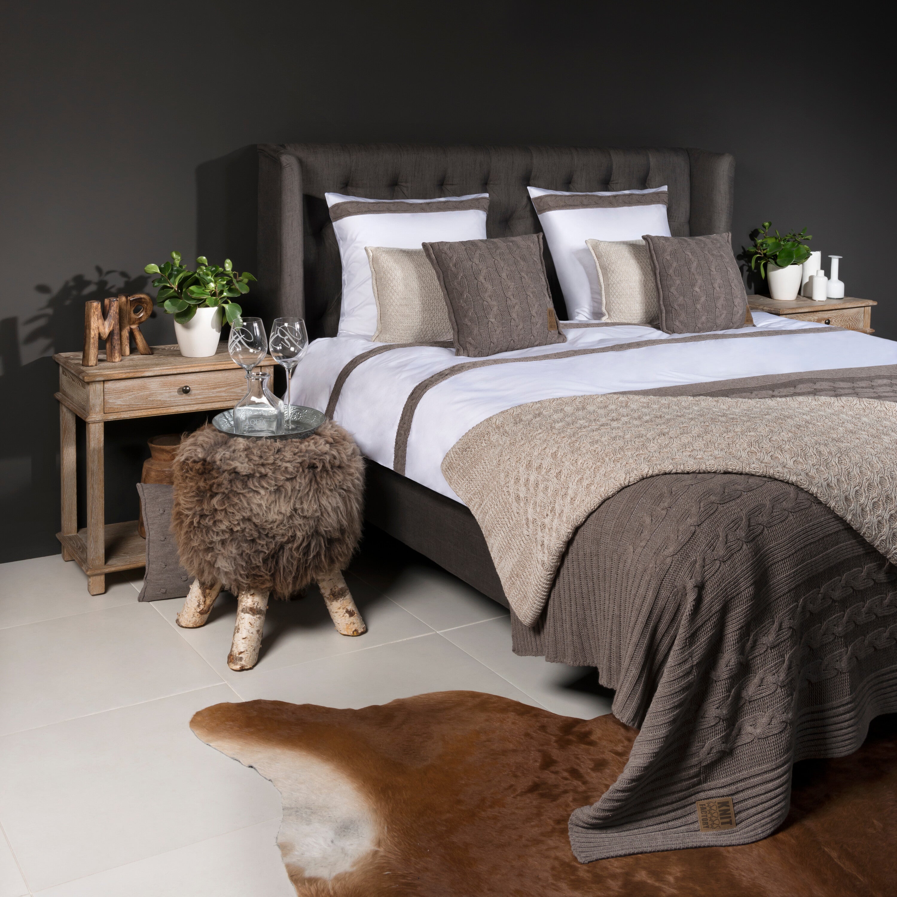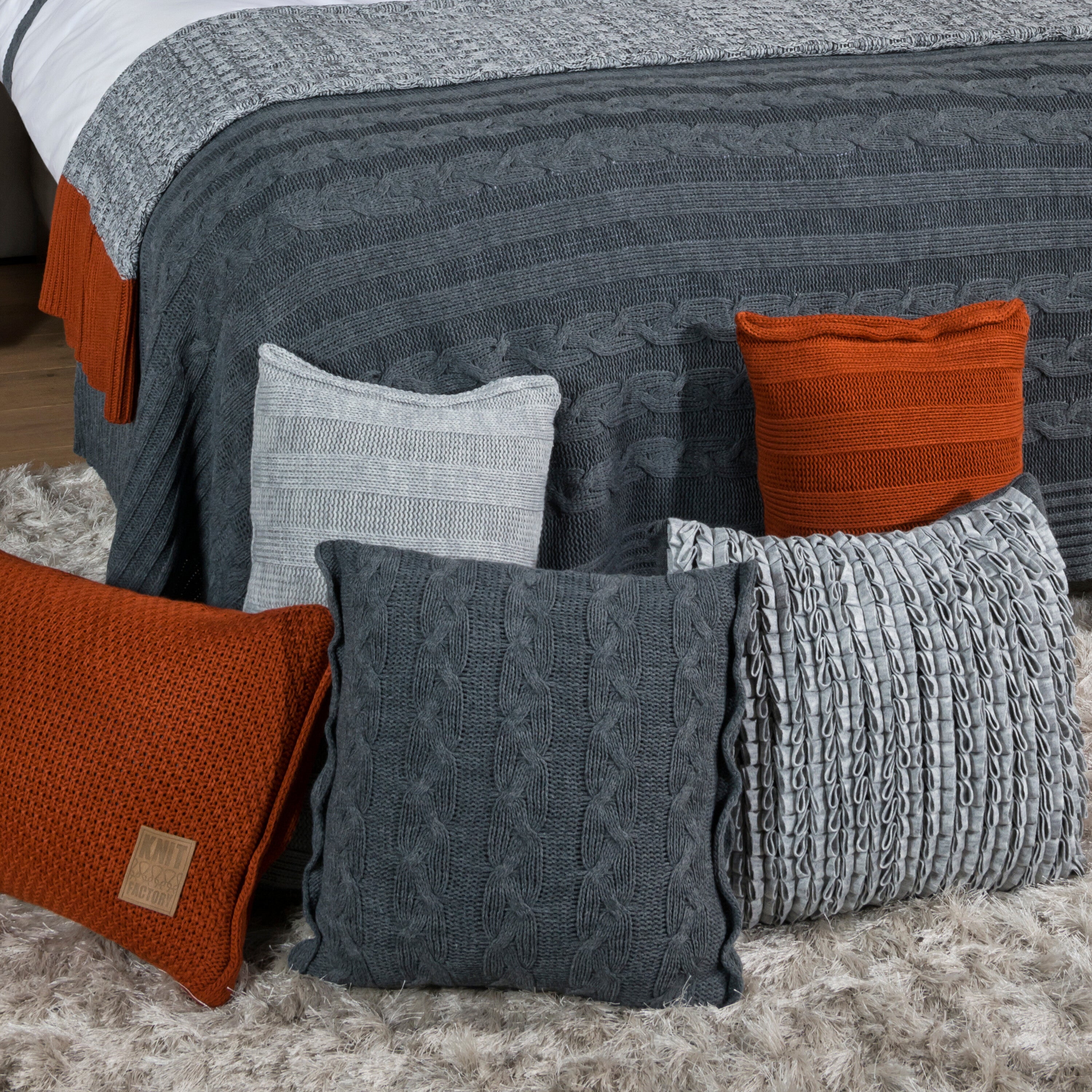 - Combineer de zachte, gebreide sierkussens met de bijpassende gebreide Sasha Plaid en ons luxueuze bedtextiel voor een sfeervol geheel.