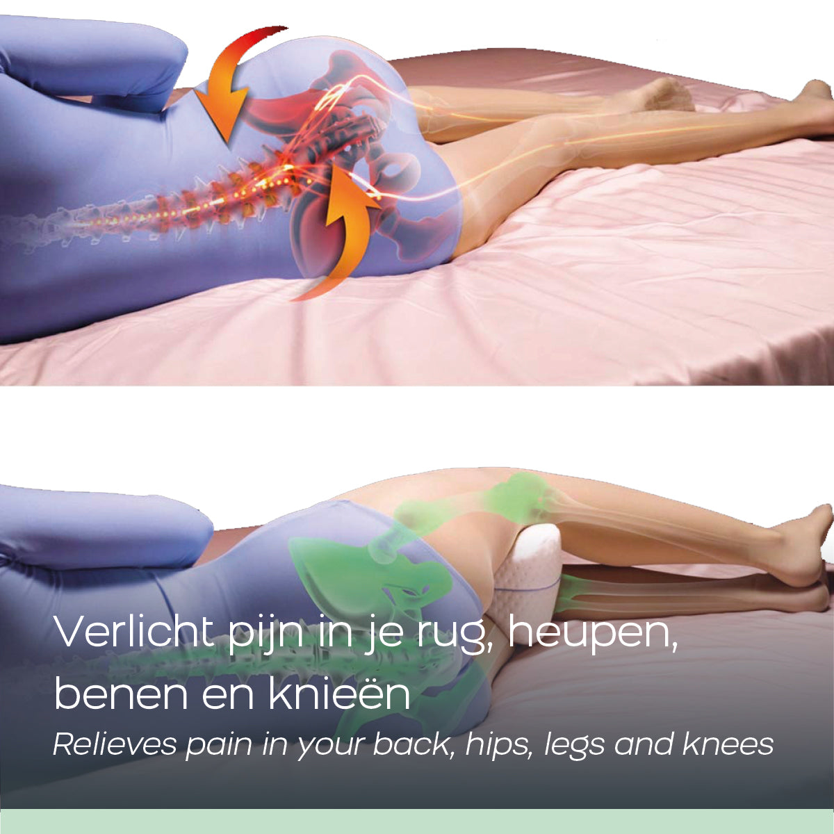 Het Konbanwa Leg Pillow is een beenkussen dat comfortabel tussen je knieën past en je lichaam ‘s nachts de nodige ondersteuning geeft. Het kussen helpt je om een betere slaappositie aan te nemen waardoor je een ontspannen houding aanneemt tijdens het slapen. Met als resultaat een optimale drukverlaging en een rechte uitlijning van de wervelkolom, heupen en bekken. Het perfecte kussen voor zijslapers