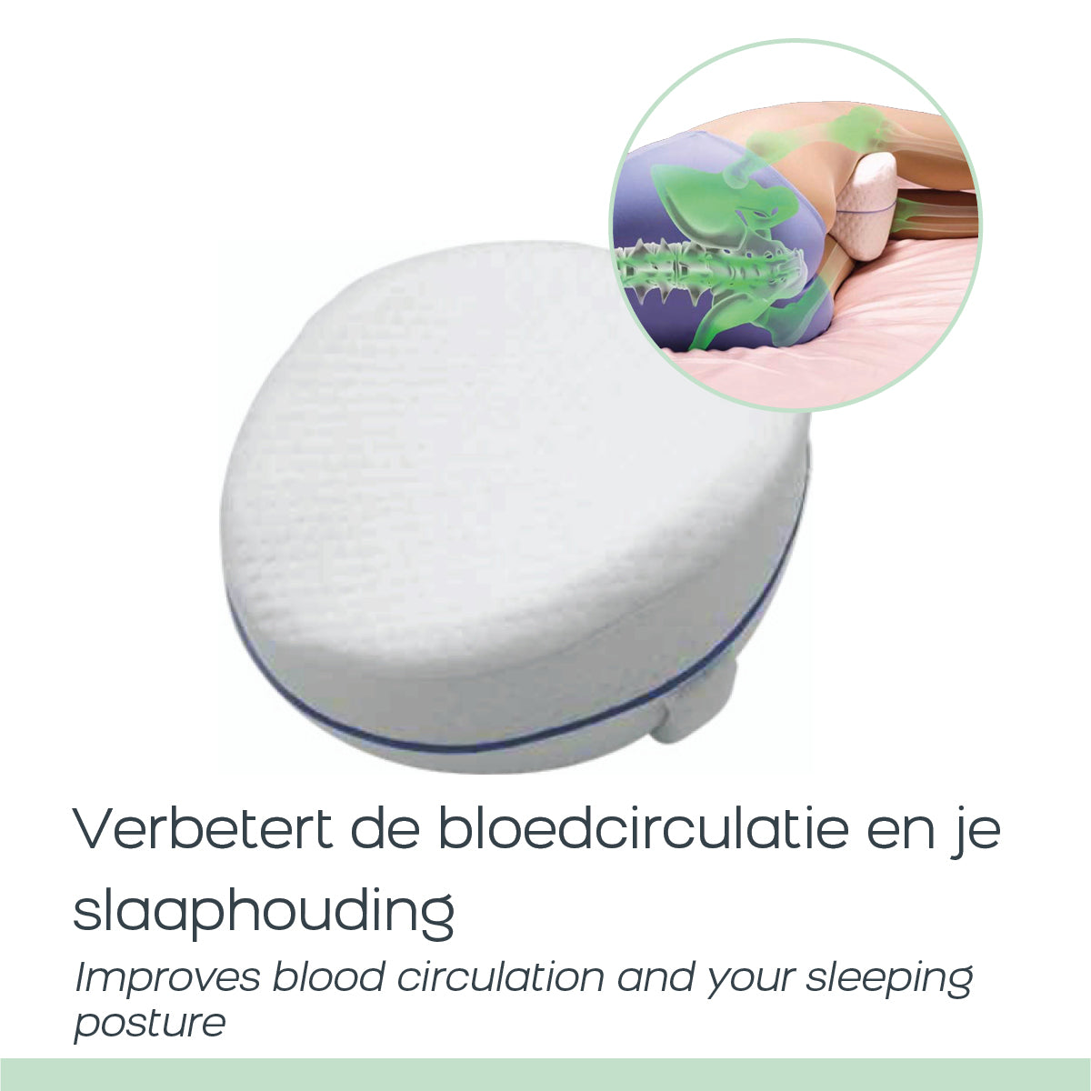 Het orthopedisch ergonomisch kussen heeft een ovaalvormig ontwerp en past zich naar jouw lichaam aan. Daarnaast past het slaapkussen zich ook aan naar jouw slaaphouding. Het is een fijn beensteun kussen voor zijslapers en het kan ook goed gebruikt worden als zwangerschapskussen. Bovendien, doordat je met dit beenkussen een ontspannen slaaphouding aanneemt, kan het kussen bijdragen aan het bevorderen van je bloedcirculatie. Met als resultaat een optimale drukverlaging en een rechte uitlijning van de wervelkolom, heupen en bekken. Dit voorkomt been-, bekken- en rugpijn. Beenkussen van hoogwaardige materialen