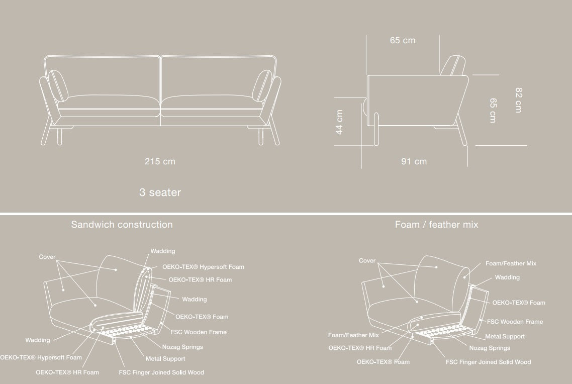 Kragelund Hasle 3-zits Bank Gebroken Wit Bouclé | Eiken