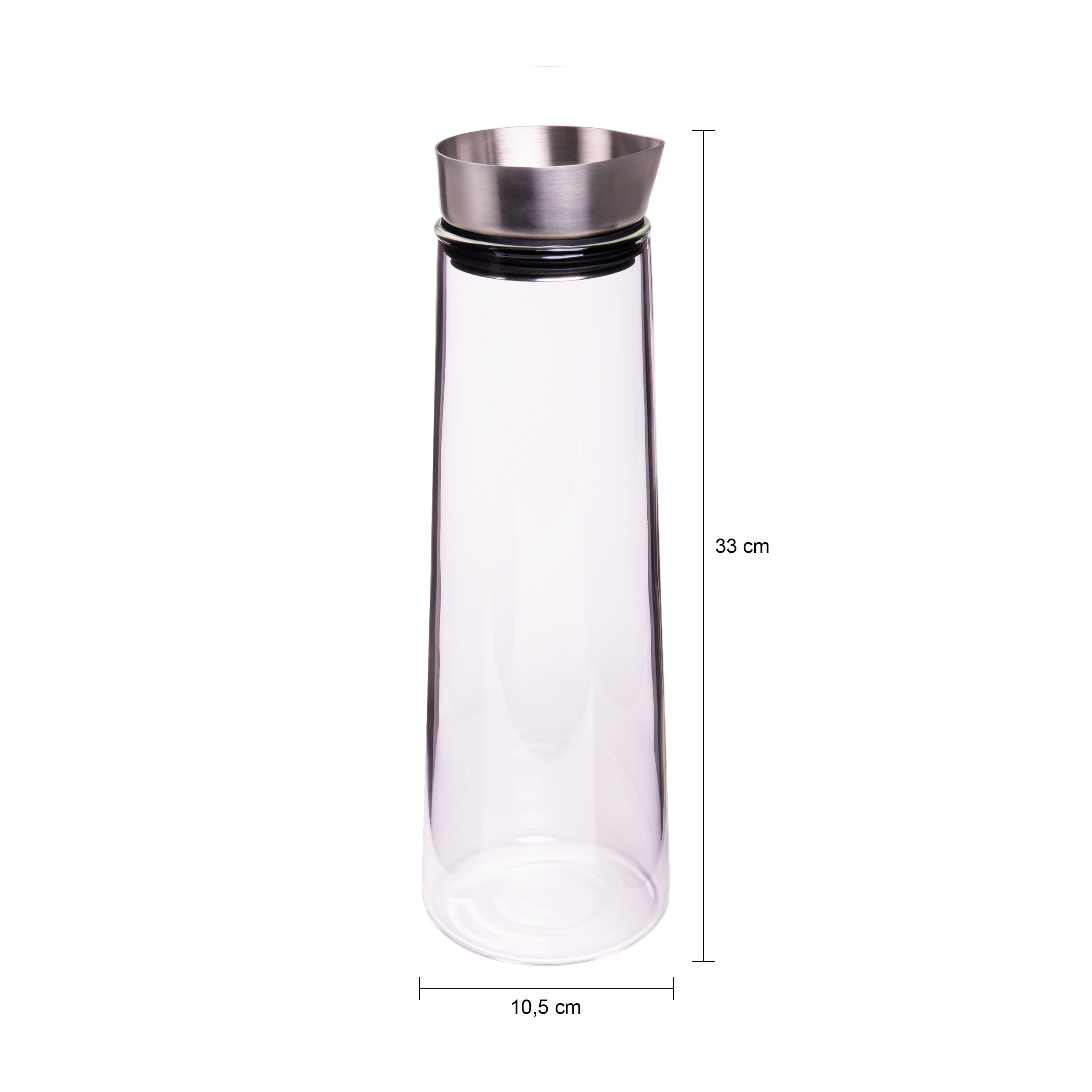 - Afmetingen: 10,5 x 10,5 x 33 cm en past eigenlijk in elke koelkast. Materiaal: RVS en glas. Met een inhoud van 1,5 Liter.