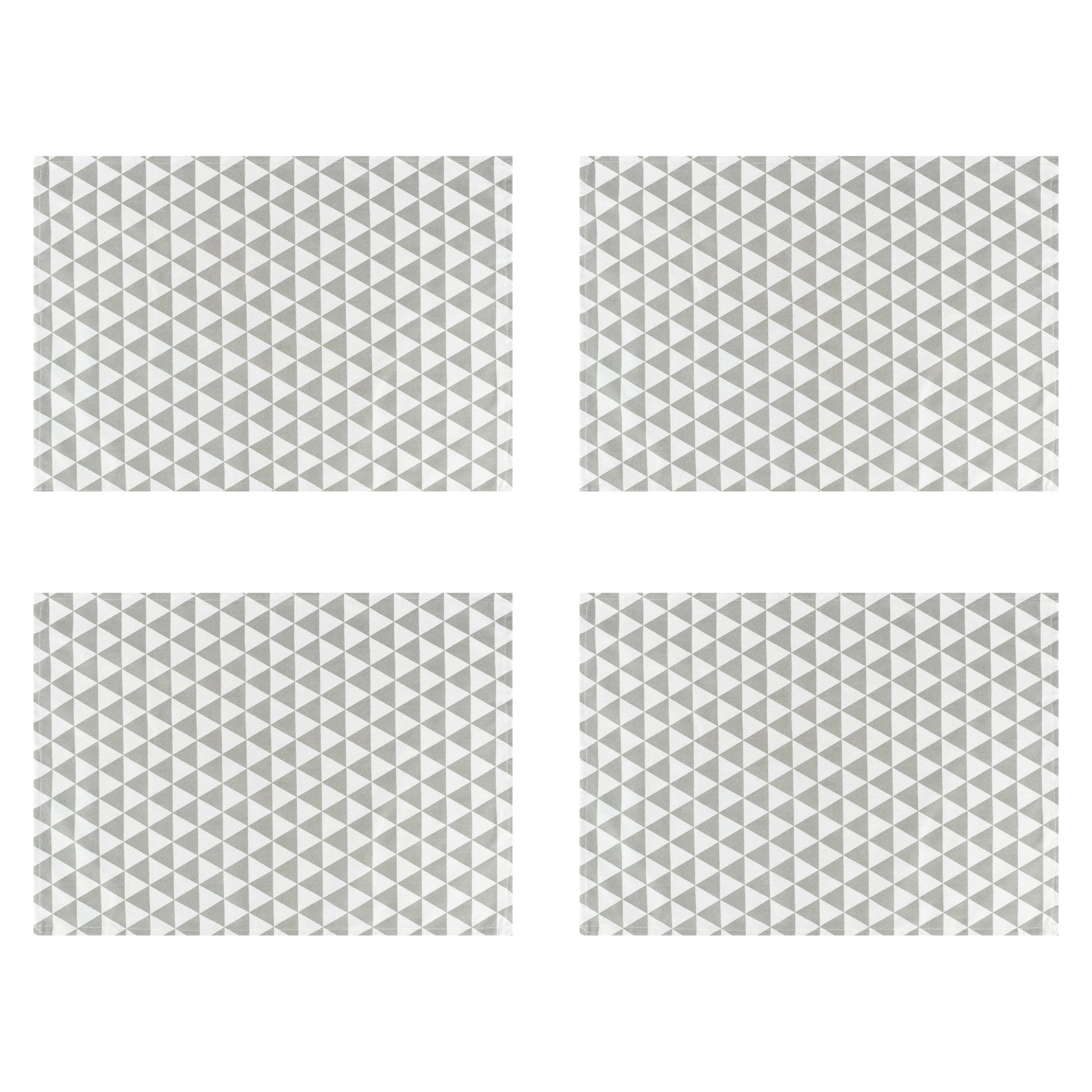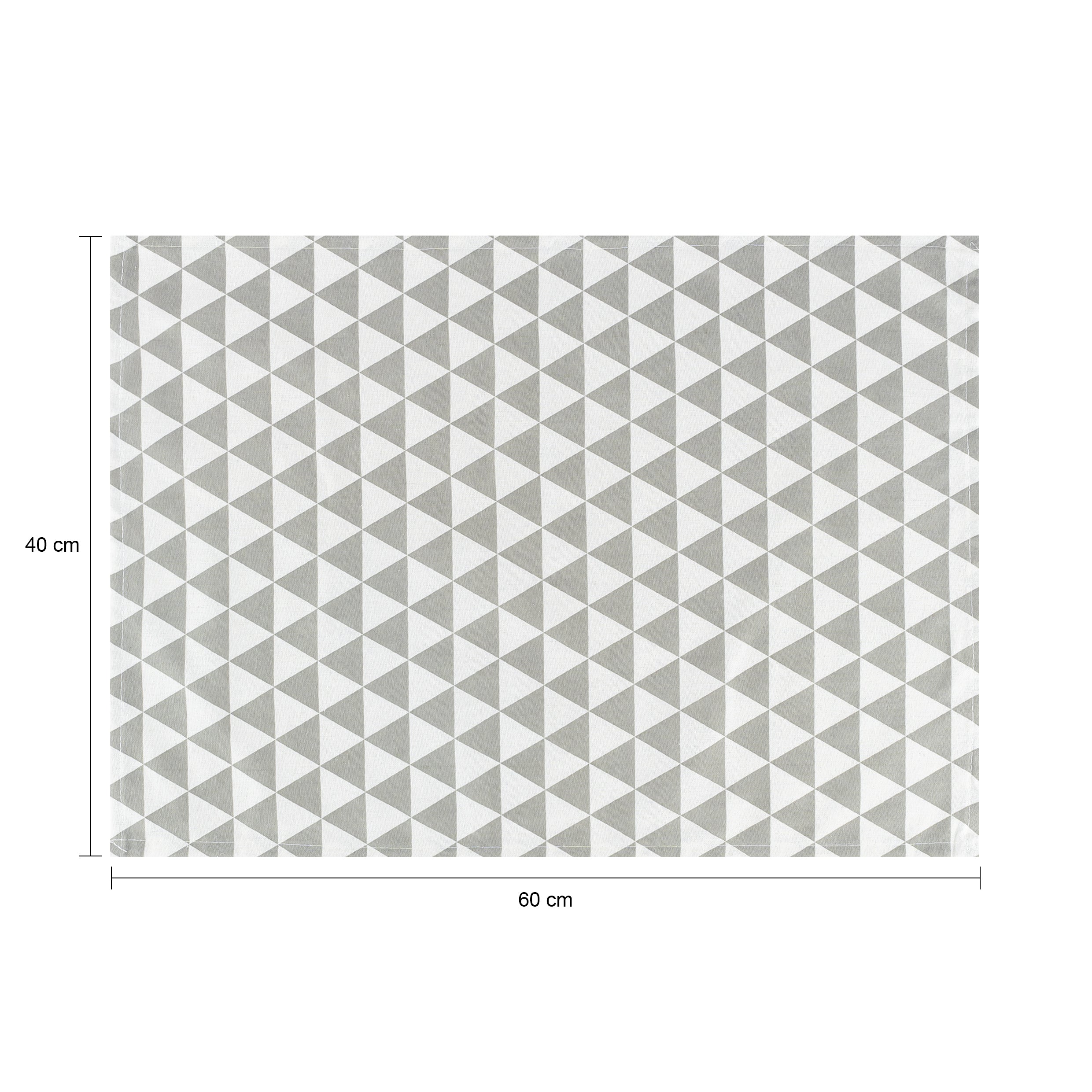 - De theedoek heeft een patroon met driehoeken in de kleuren grijs en wit.