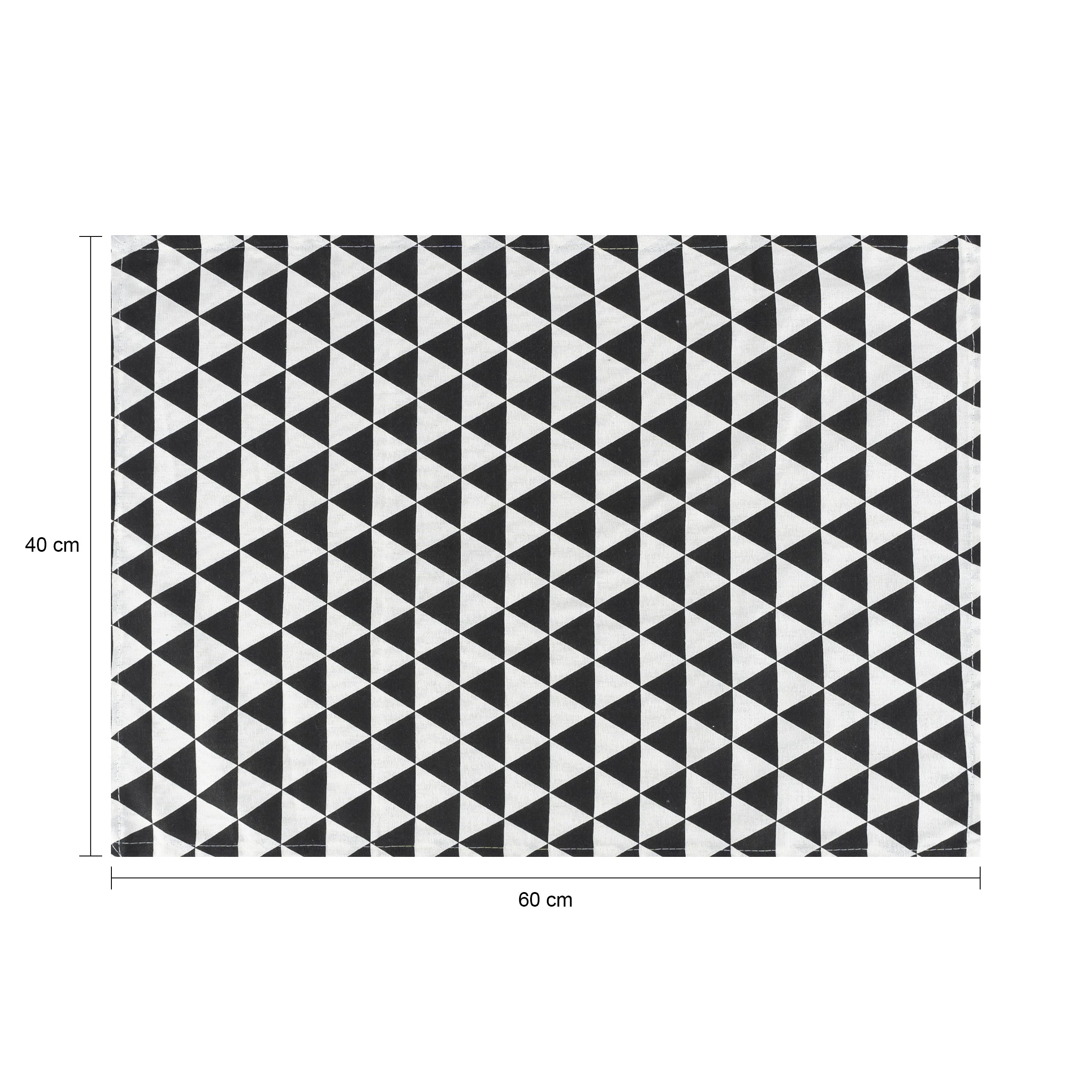 - De theedoek heeft een patroon met driehoeken in de kleuren zwart en wit.