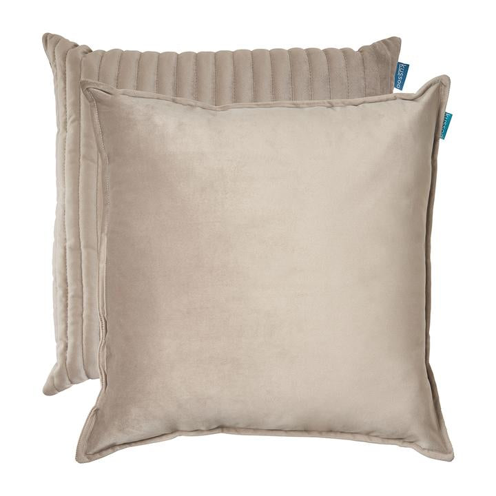 Kussoo Kussen Fluweel Uni & Stripe champagne 50x50 cm set van 2