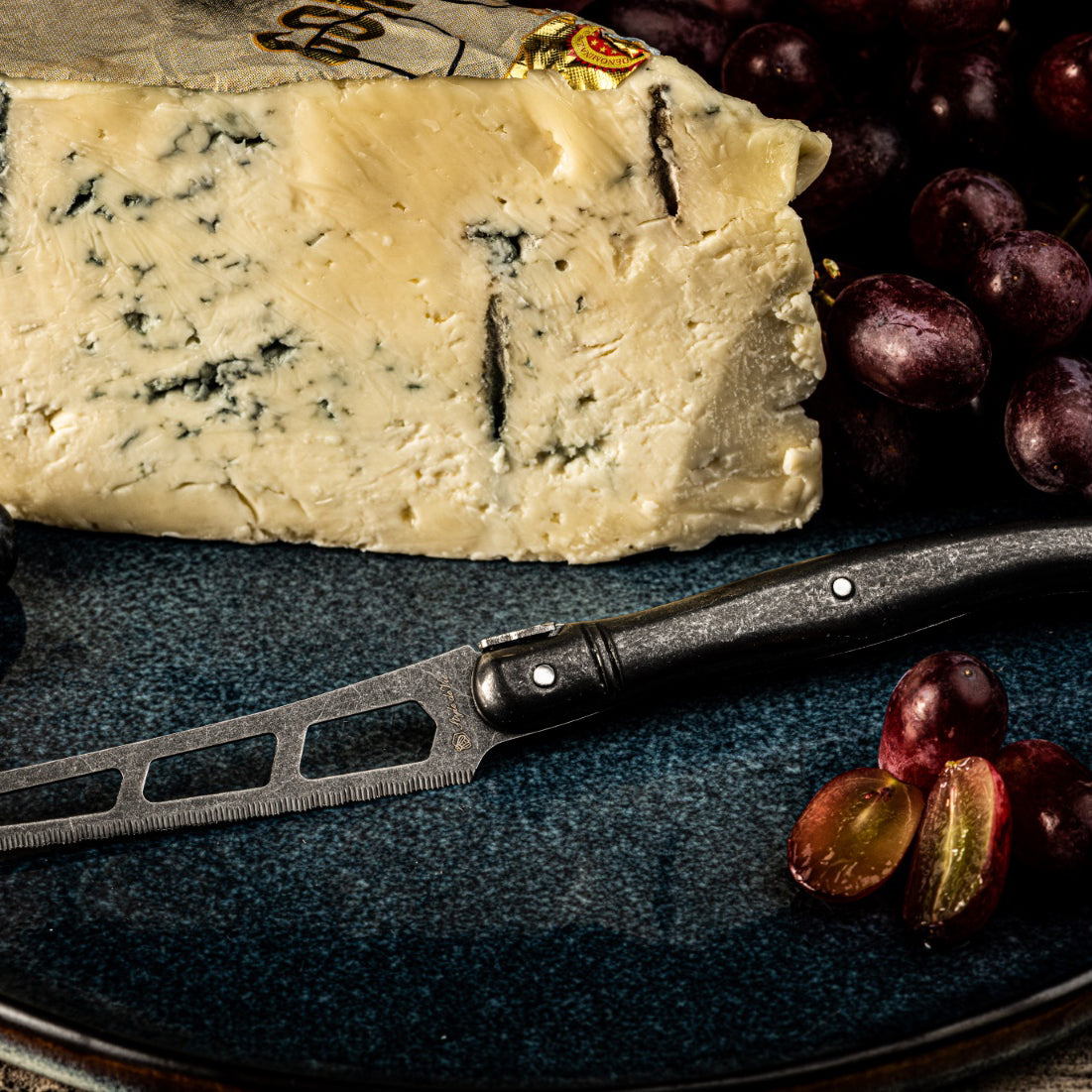 Laguiole Style de Vie Kaasmessenset Presenteer je kaasplankje in stijl met de juiste messen! Dit kaasmes van Laguiole Style de Vie is ideaal voor zachte kazen. De openingen in het lemmet zorgen ervoor dat de kaas niet aan het mes blijft plakken en dat de kaas zijn vorm behoud. Het mes is gemaakt van hoogwaardig roestvrij staal, heeft een kunststof handgreep voor een goede grip en is vaatwasmachinebestendig tot 65°C.