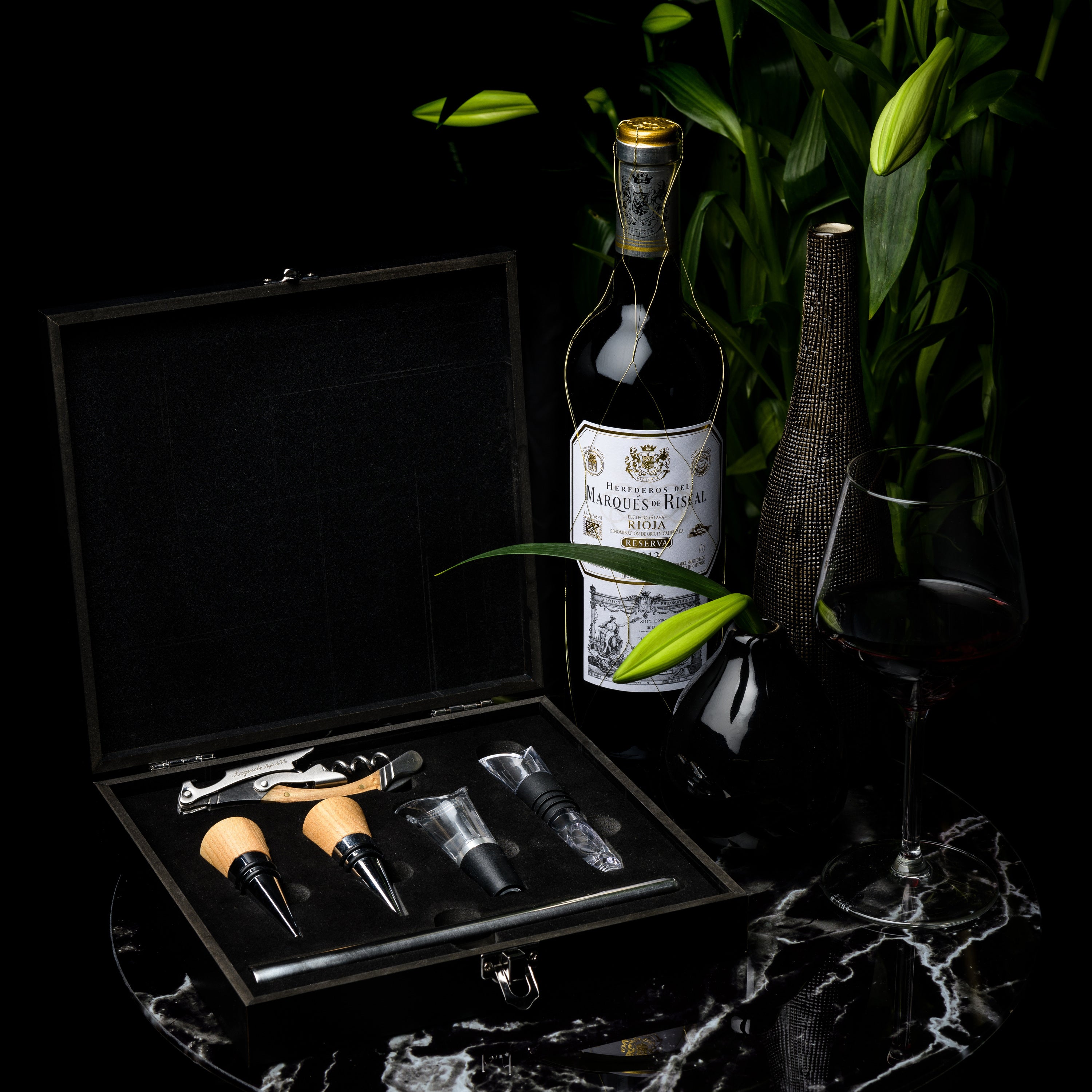 - Stijlvolle eikenhouten kurkentrekker met accessoires