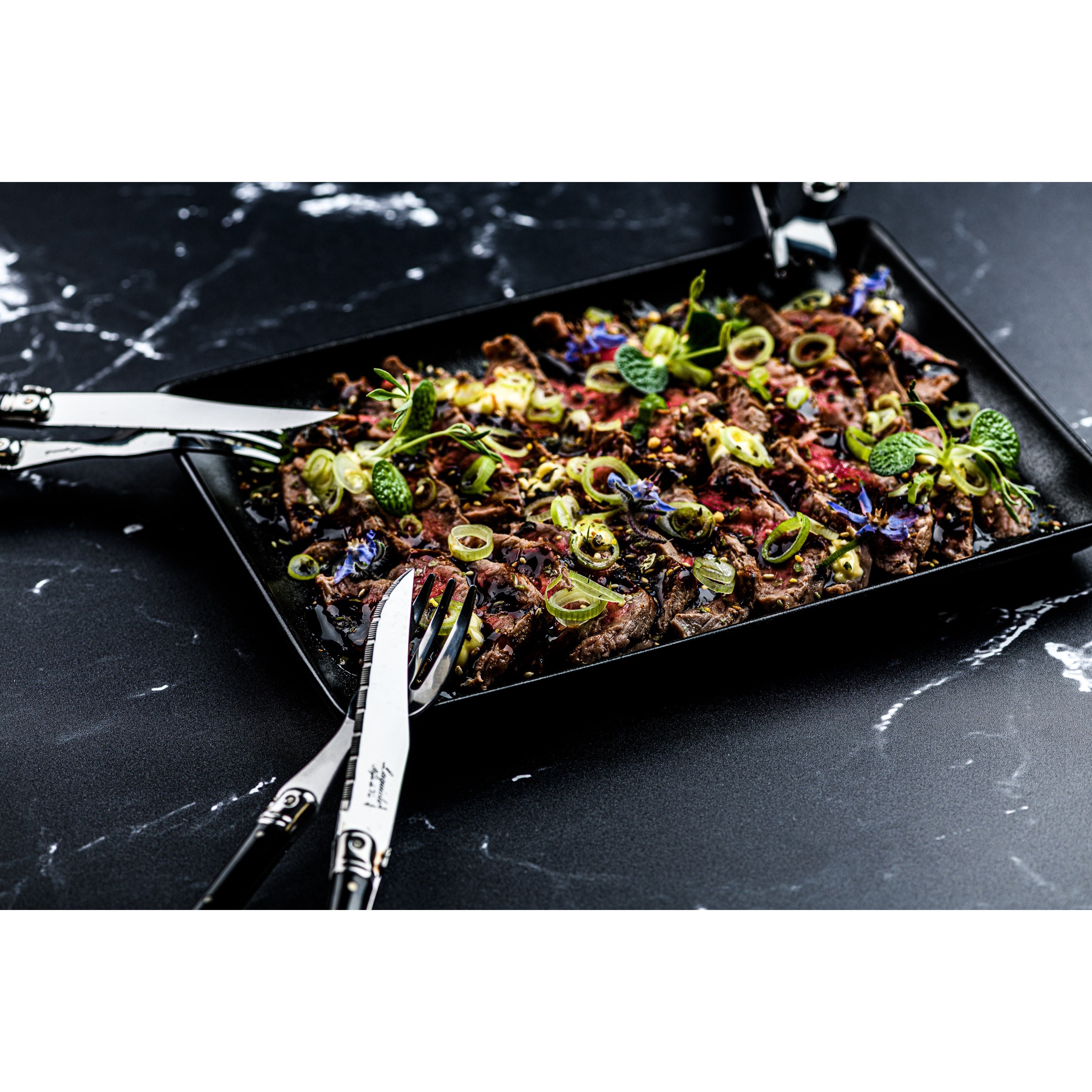 Een pickcnick in het park, een avondje tapas, een gezellige high tea of een lekker stukje gebak. De mogelijkheden met de Laguiole Style de Vie Premium Line 12-delige mini bestekset zijn eindeloos. De bestekset bestaat uit 6 kleine vorken en 6 kleine steakmessen. Vanwege het formaat kan het bestek ook voor kinderen gebruikt worden. Het bestek is gemaakt van hoogwaardig roestvrij staal en heeft een zwart kunststof handvat. De set wordt geleverd in een handige houten bestekbak. Ideaal om te verplaatsen of veilig op te bergen!