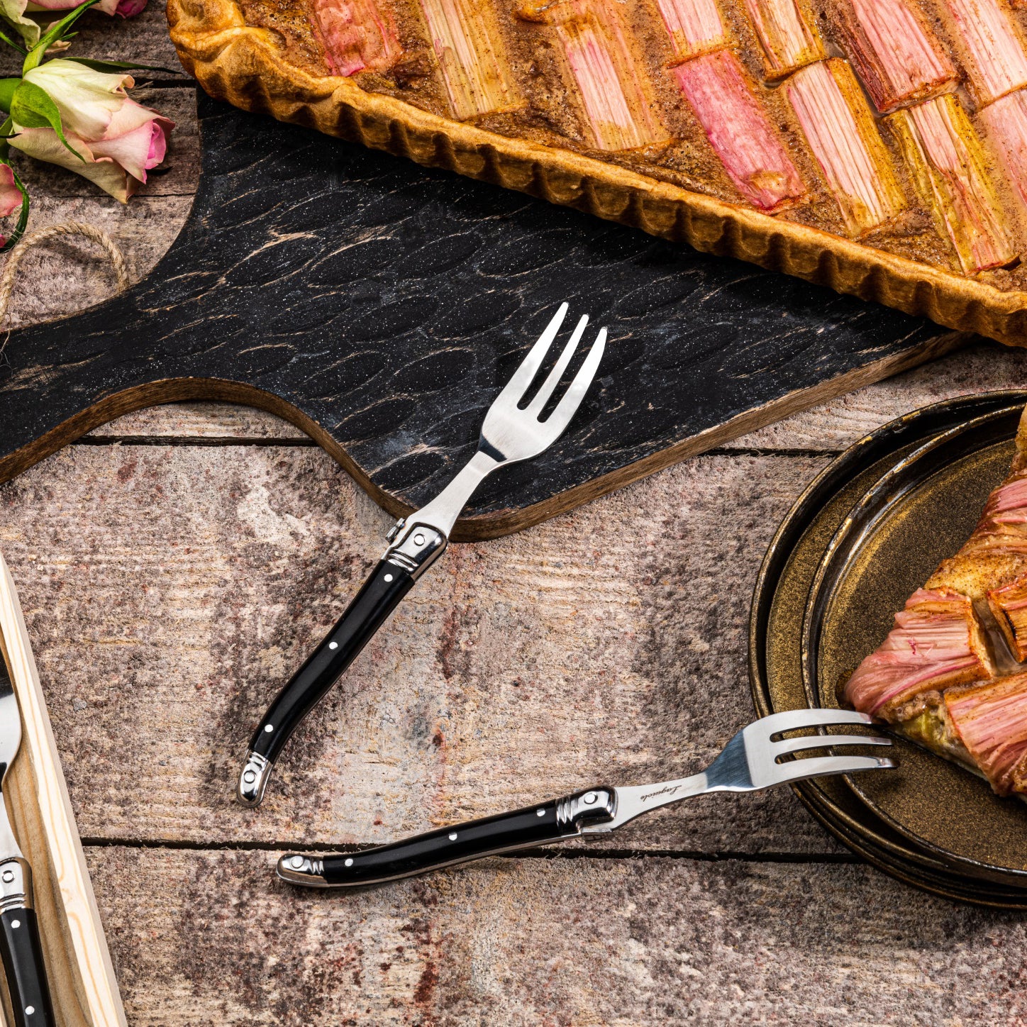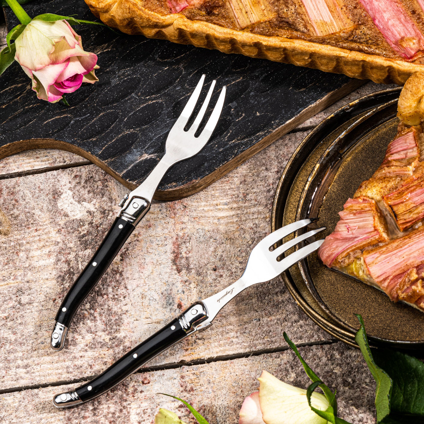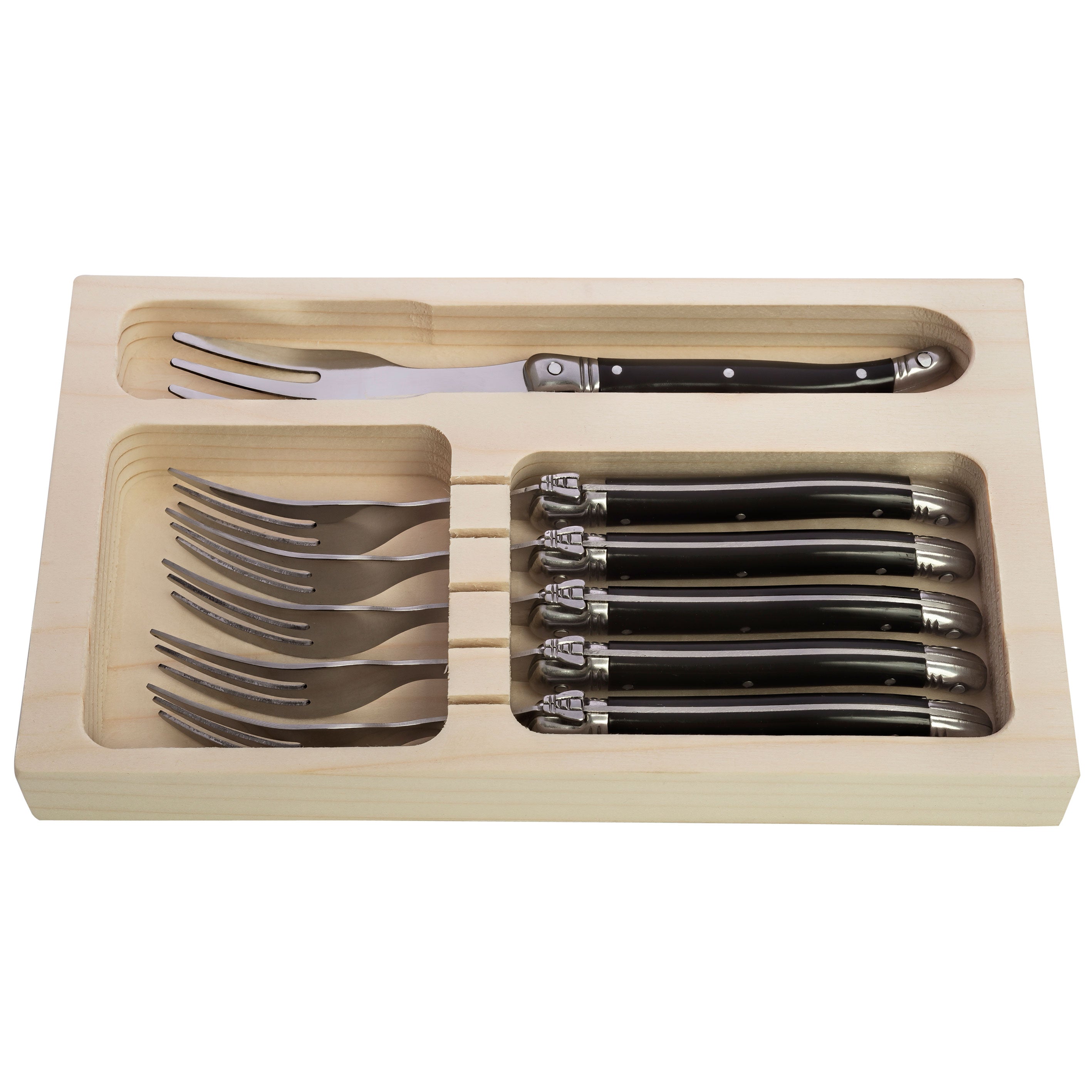 Een mooi cadeau De vorken van Laguiole Style de Vie zijn gemaakt van hoogwaardige materialen die voor een luxe, elegante uitstraling zorgen. De vorken hebben een klassieke vormgeving met het opvallende logo van Laguiole Style de Vie op het heft. De vorkenset wordt geleverd in een mooi kistje waardoor de set gelijk een prachtig cadeau is.