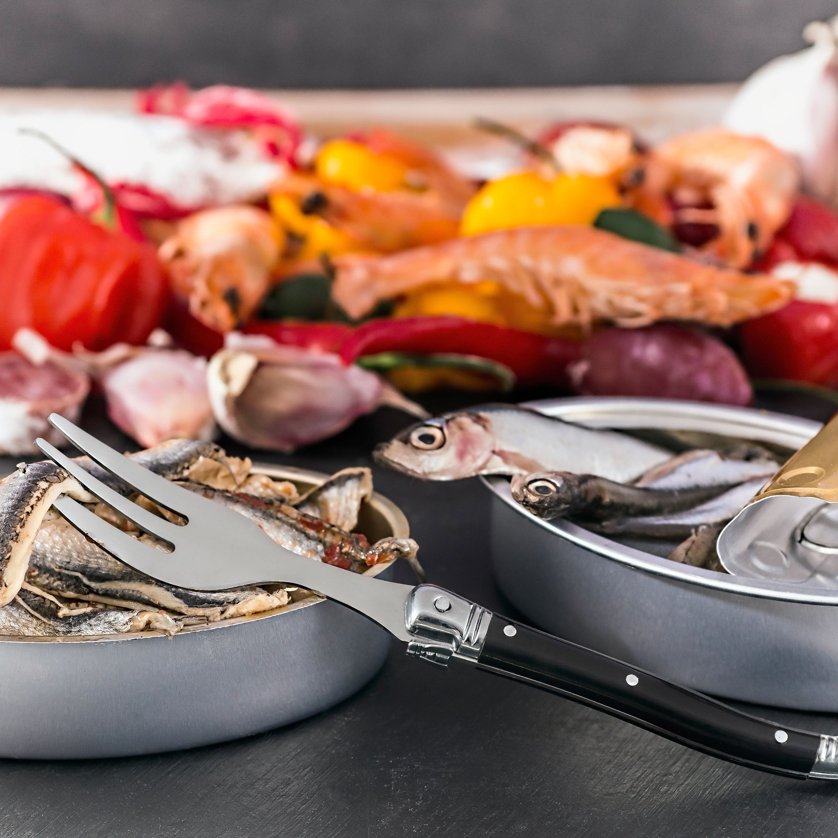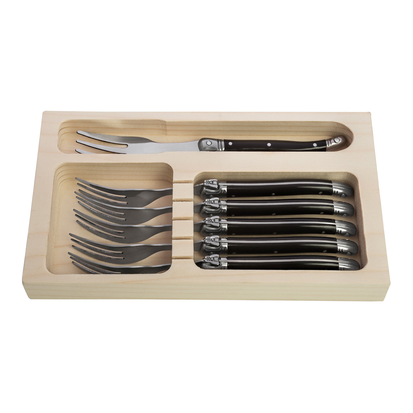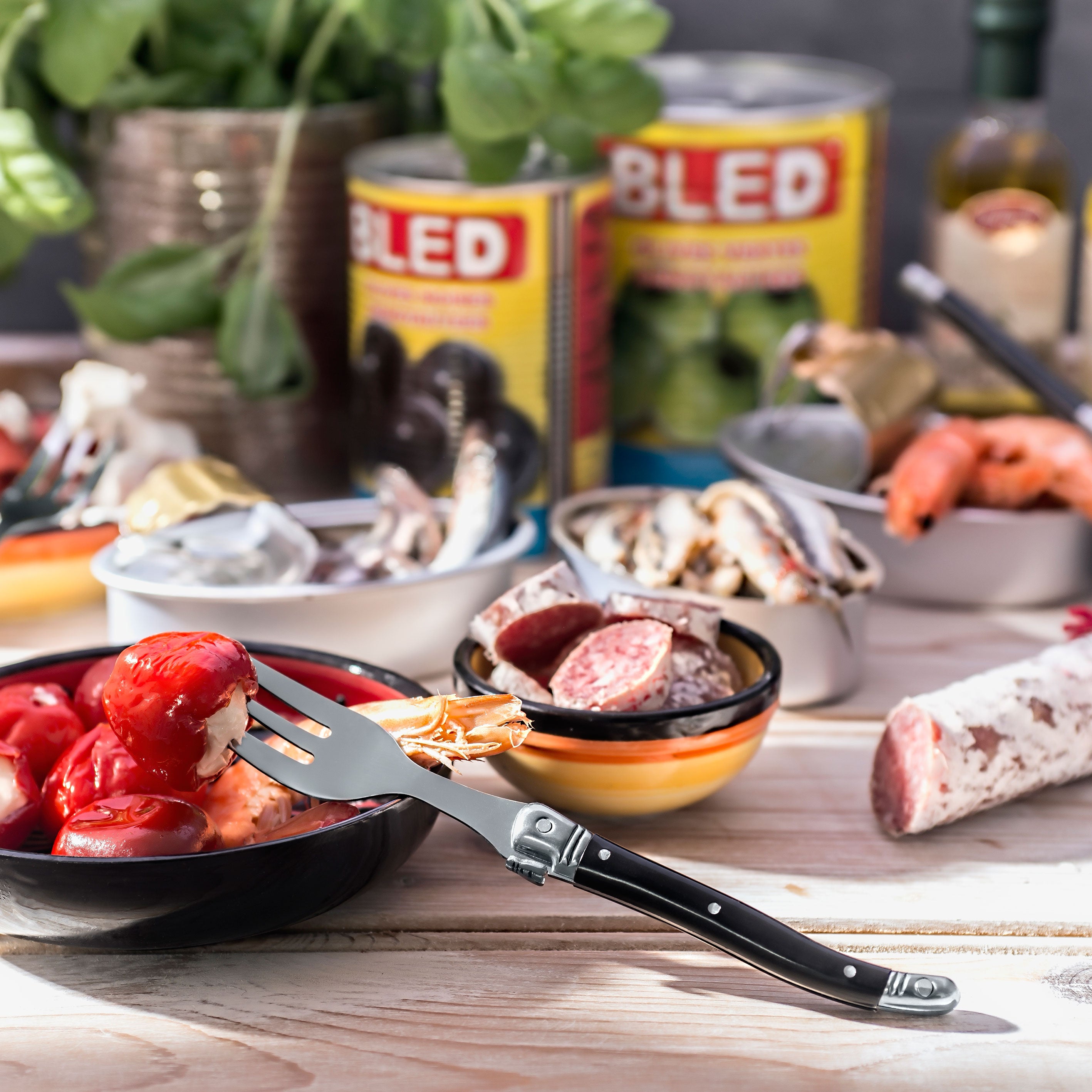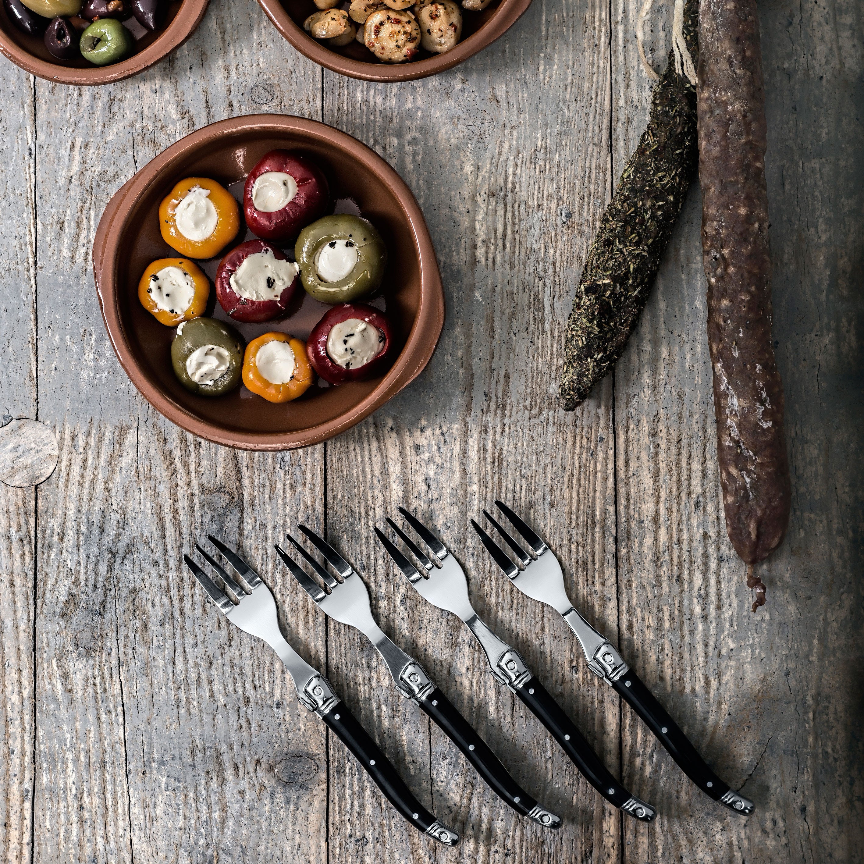 Een mooi cadeau De vorken van Laguiole Style de Vie zijn gemaakt van hoogwaardige materialen die voor een luxe, elegante uitstraling zorgen. De vorken hebben een klassieke vormgeving met het opvallende logo van Laguiole Style de Vie op het heft. De vorkenset wordt geleverd in een mooi kistje waardoor de set gelijk een prachtig cadeau is.