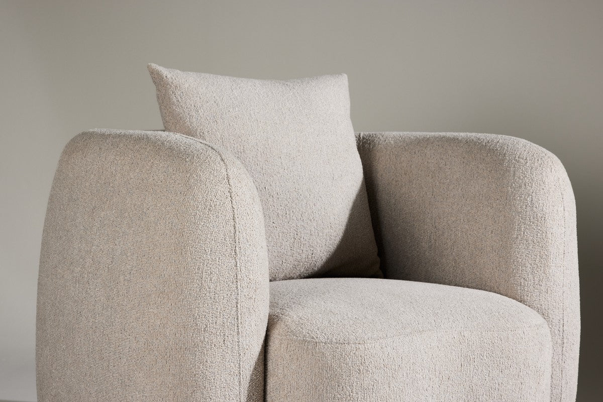 Lana is die ene stoel waar je meteen in ploft en voorlopig niet meer uit komt. De ronde vormen en zachte stof zorgen voor instant comfort, terwijl de stevige zit en brede armleuningen je alle ruimte geven. Inclusief los kussen, want soms wil je gewoon nét wat extra zachtheid.