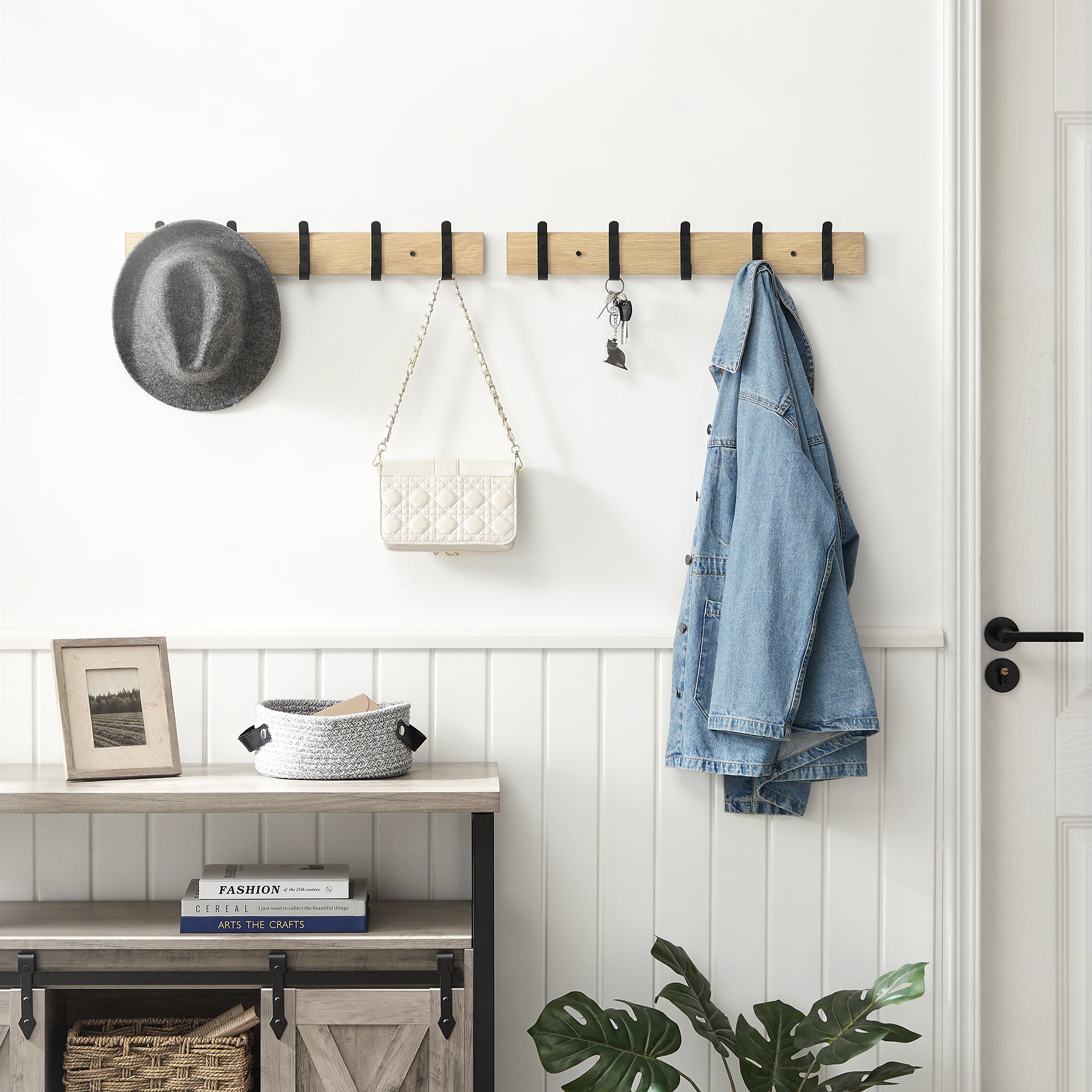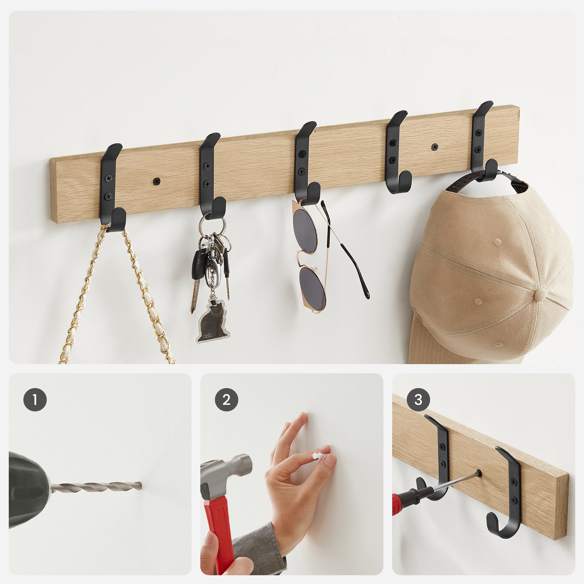 Langwerpige Kapstok met 5 Dubbele Haken, lichte Eik Kleur