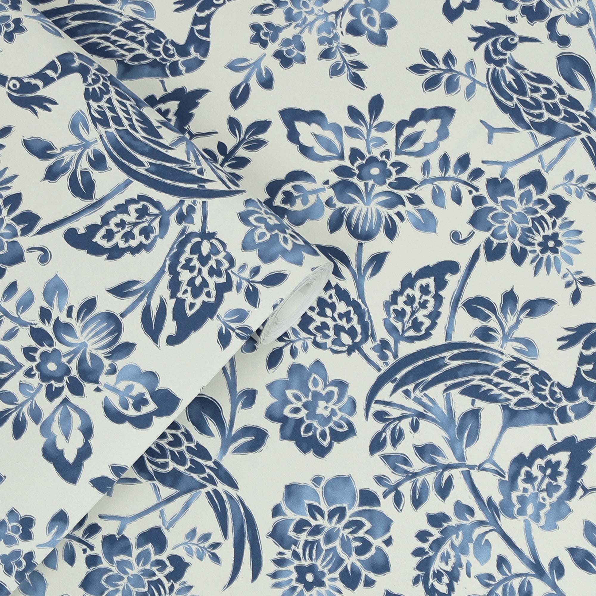 Laura Ashley Adain Palace Behang - Bloemen - 10mx52cm - Blauw