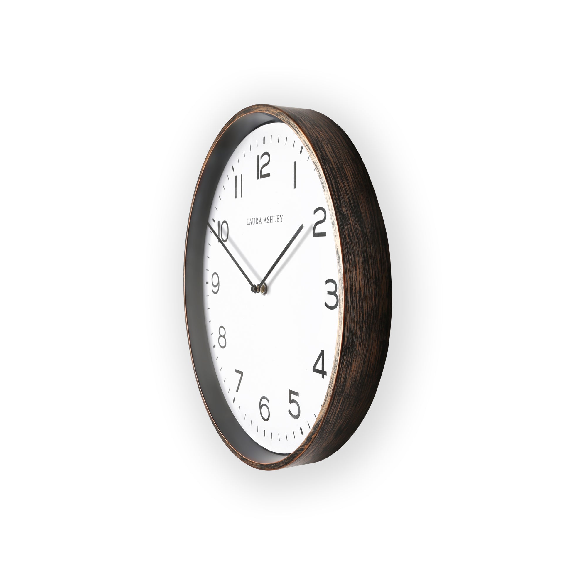 Goldcliff Brons - Stijlvolle wandklok met vintage uitstraling van Laura Ashley De Goldcliff Brons wandklok is een echte eyecatcher die warmte en karakter toevoegt aan je interieur. Met zijn prachtige verouderde bronzen afwerking straalt deze klok een tijdloze charme uit. De strakke wijzerplaat en verfijnde wijzers worden beschermd door een vlakke glazen lens, wat zorgt voor een elegante en hoogwaardige uitstraling. Perfect voor elk interieur Met een compacte afmeting van Ø35,5 cm is deze wandklok ideaal voor elke ruimte, van de woonkamer tot de hal of het kantoor. Specificaties: