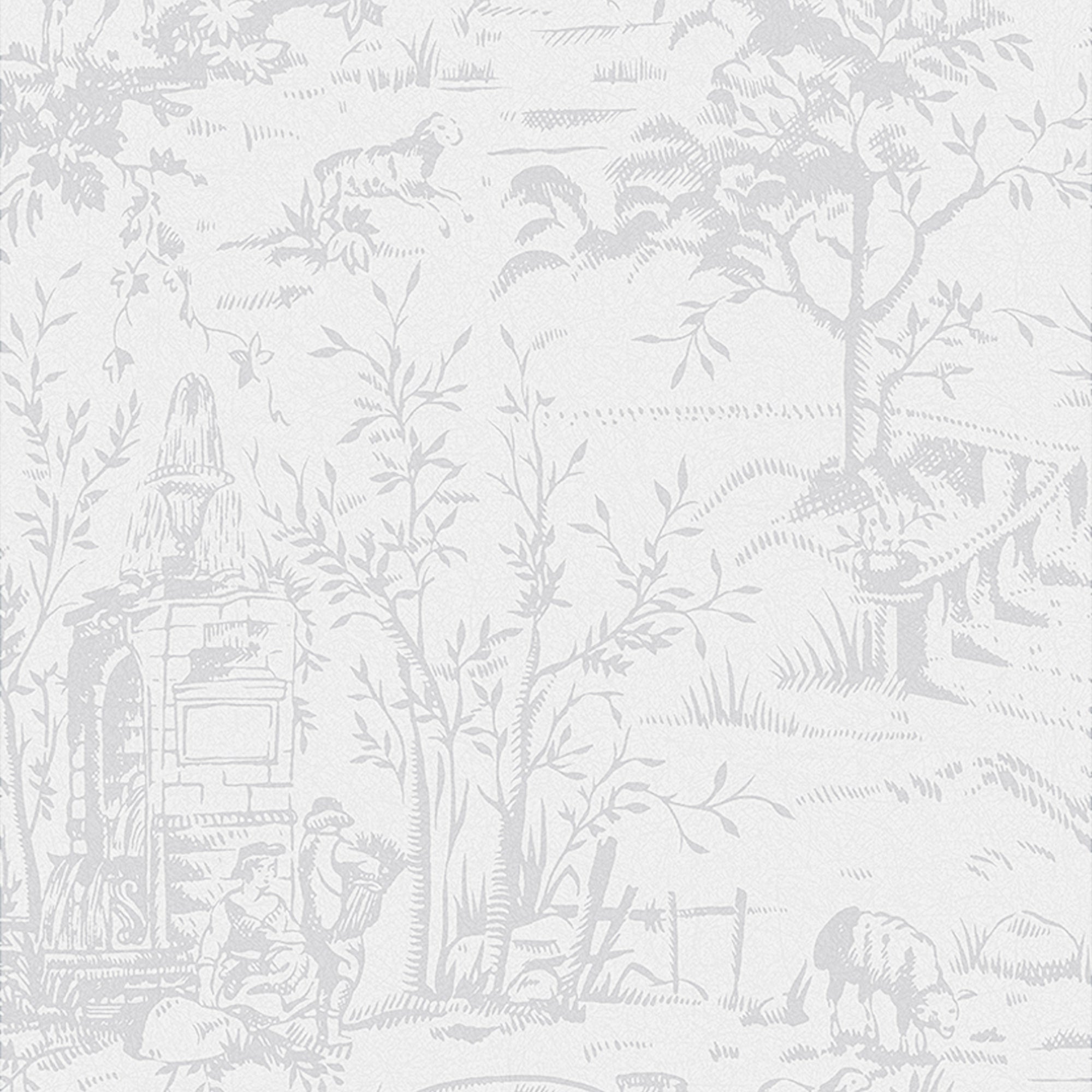 Laura Ashley Toile de Jouy Behang - Dieren - 10mx52cm - Grijs