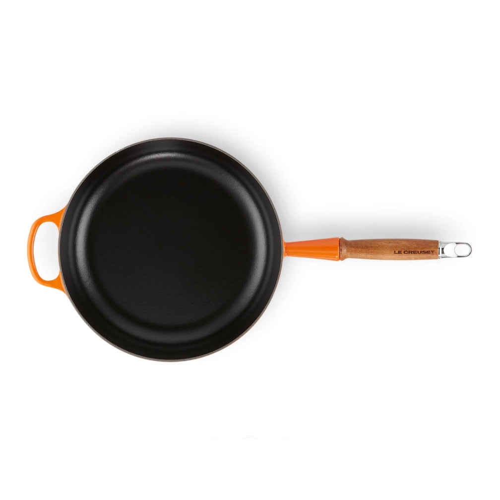 Houten handgreep Deze sauteerpan is voorzien van een stijlvol houten handgreep. Dat ziet er niet alleen mooi uit, maar zorgt er ook voor dat de greep koel blijft tijdens het bakken. De pan heeft ook een kleine tegengreep, zodat je deze zware pan met twee handen oppakt.
