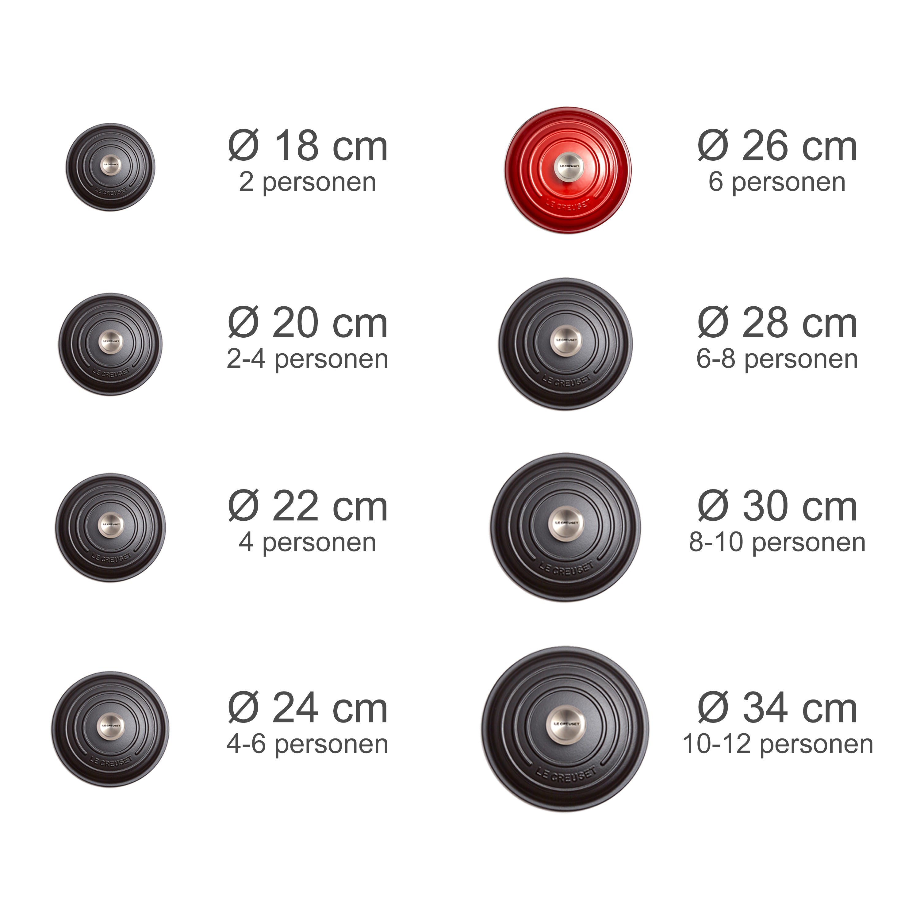 Duurzaam emaillen kookoppervlak De Le Creuset Signature pannen hebben een geavanceerde nieuwe binnenzijde die is gemaakt van hoogwaardig email. Het email is extra duurzaam waardoor het bestand is tegen vlekken en niet dof wordt. Door de verhoogde weerstand tegen stoten, schrapen en krassen zal de email coating niet snel slijten of barsten bij gebruik van zure etenswaren, stoom of kokend water. Door het ultragladde oppervlak is de pan daarnaast eenvoudig te reinigen.