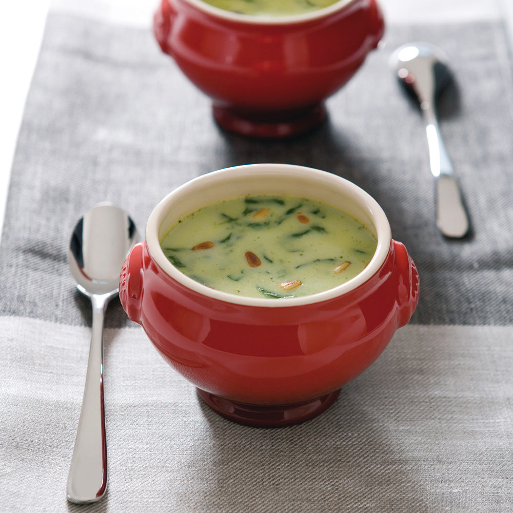 Le Creuset soepkom De soepkom van Le Creuset is gemaakt van aardewerk met een uitzonderlijke duurzaamheid. Het schilfert niet en is kras- en vlekbestendig. Het aardewerk is geëmailleerd waardoor het zeer glad is en makkelijk is af te wassen. Daarnaast absorbeert het geen geuren of smaken van voedsel waardoor hij zonder problemen voor kruidige gerechten gebruikt kan worden.